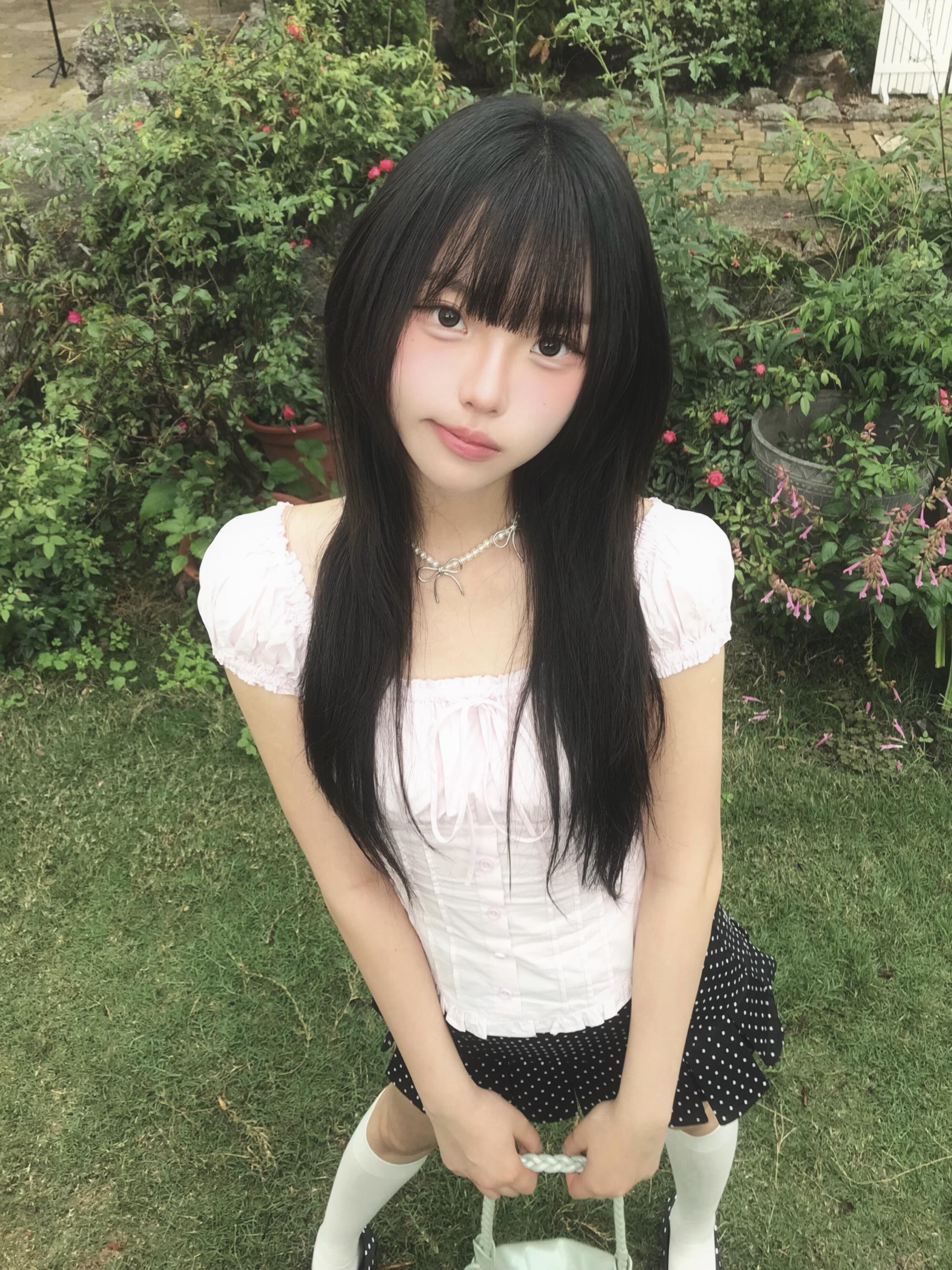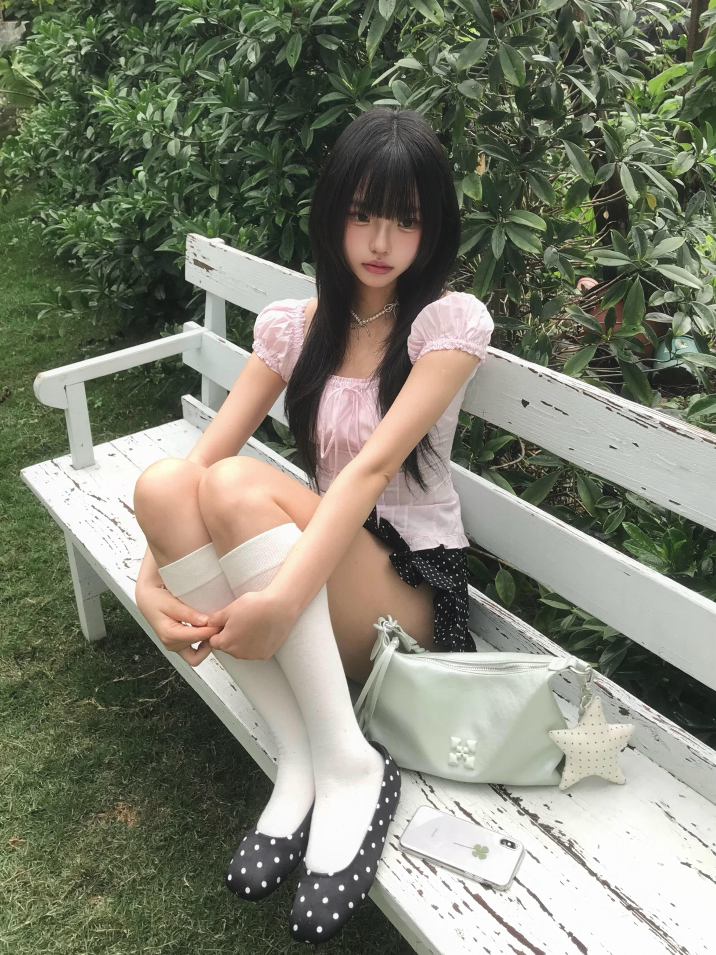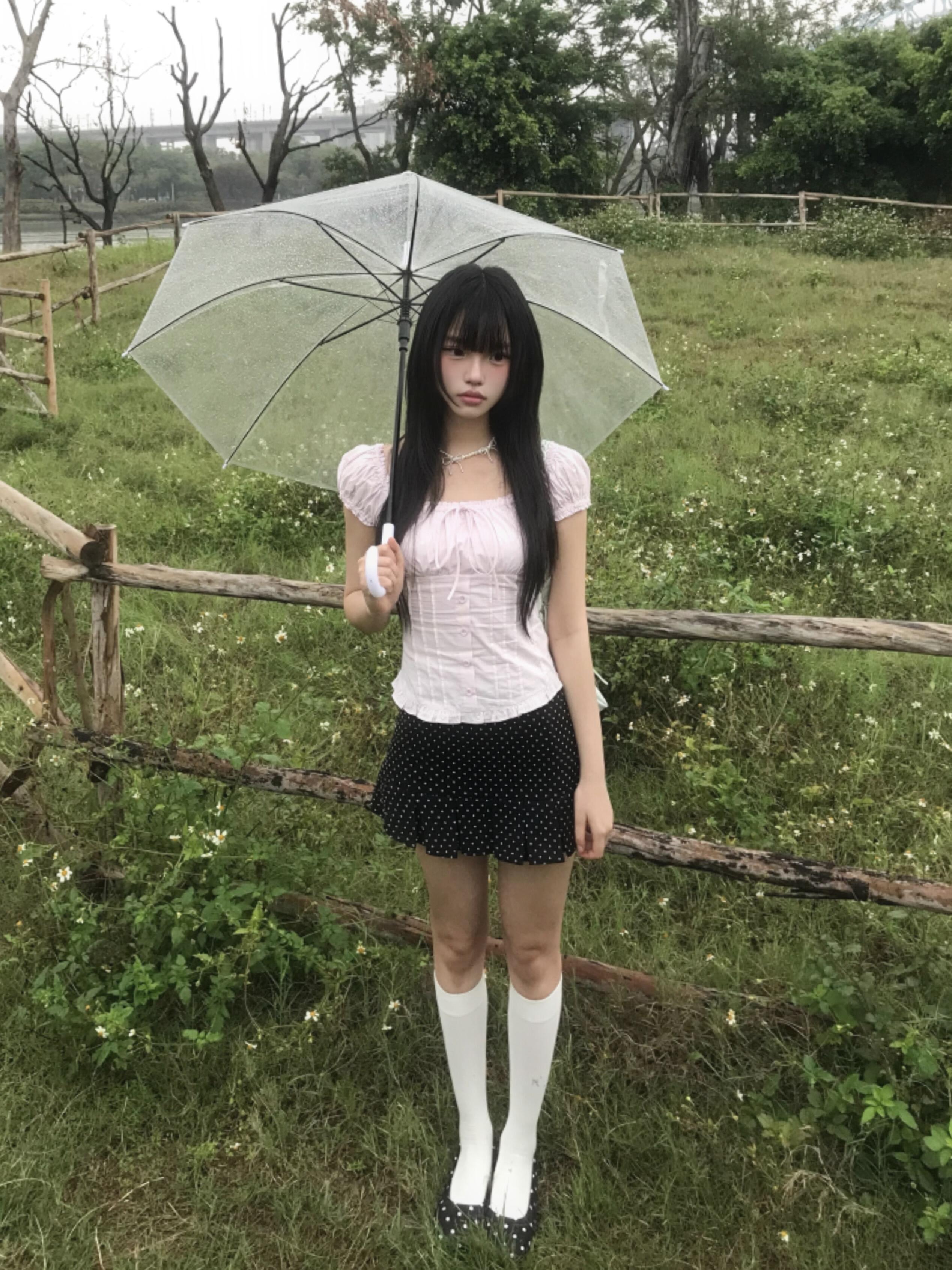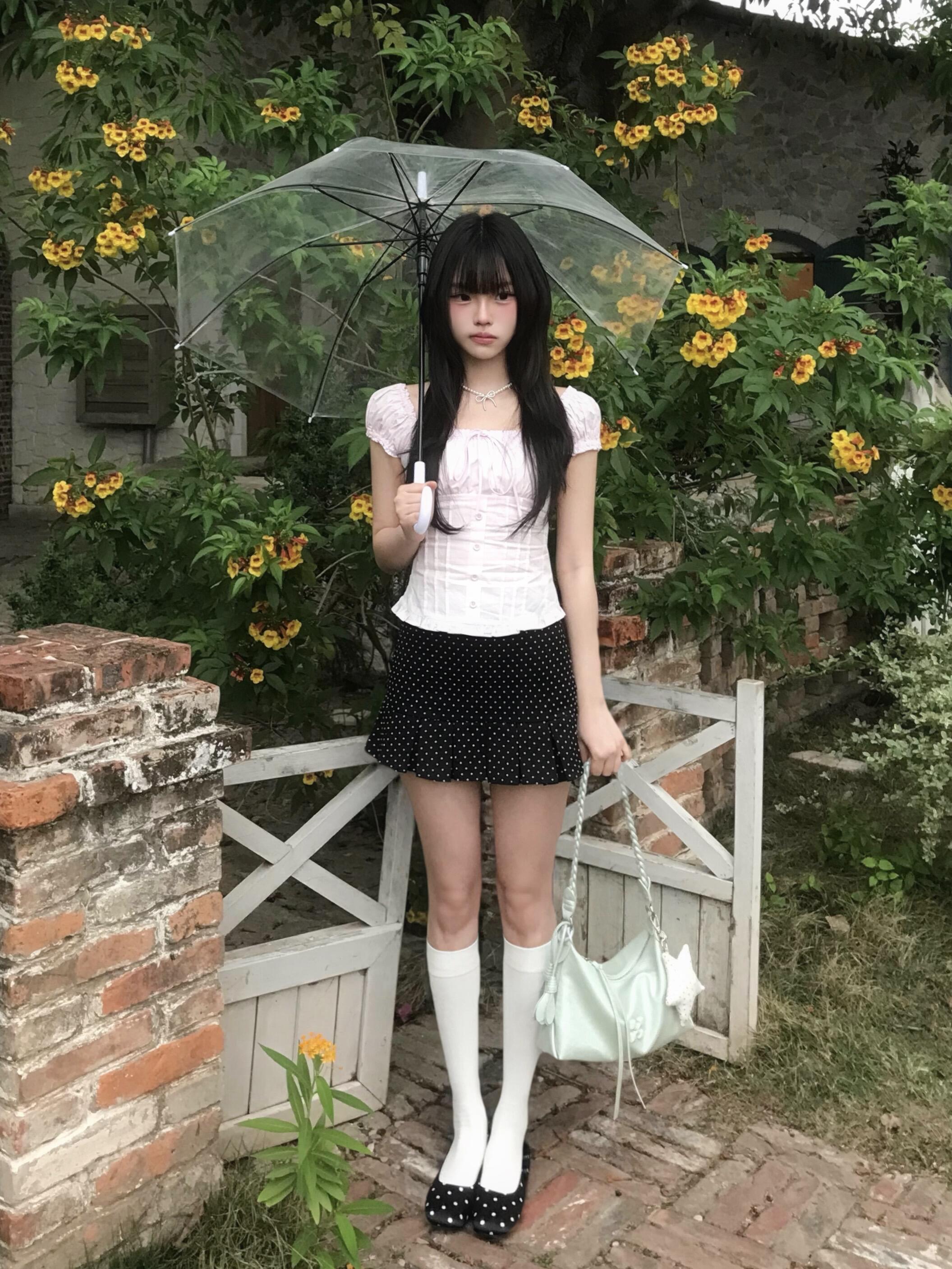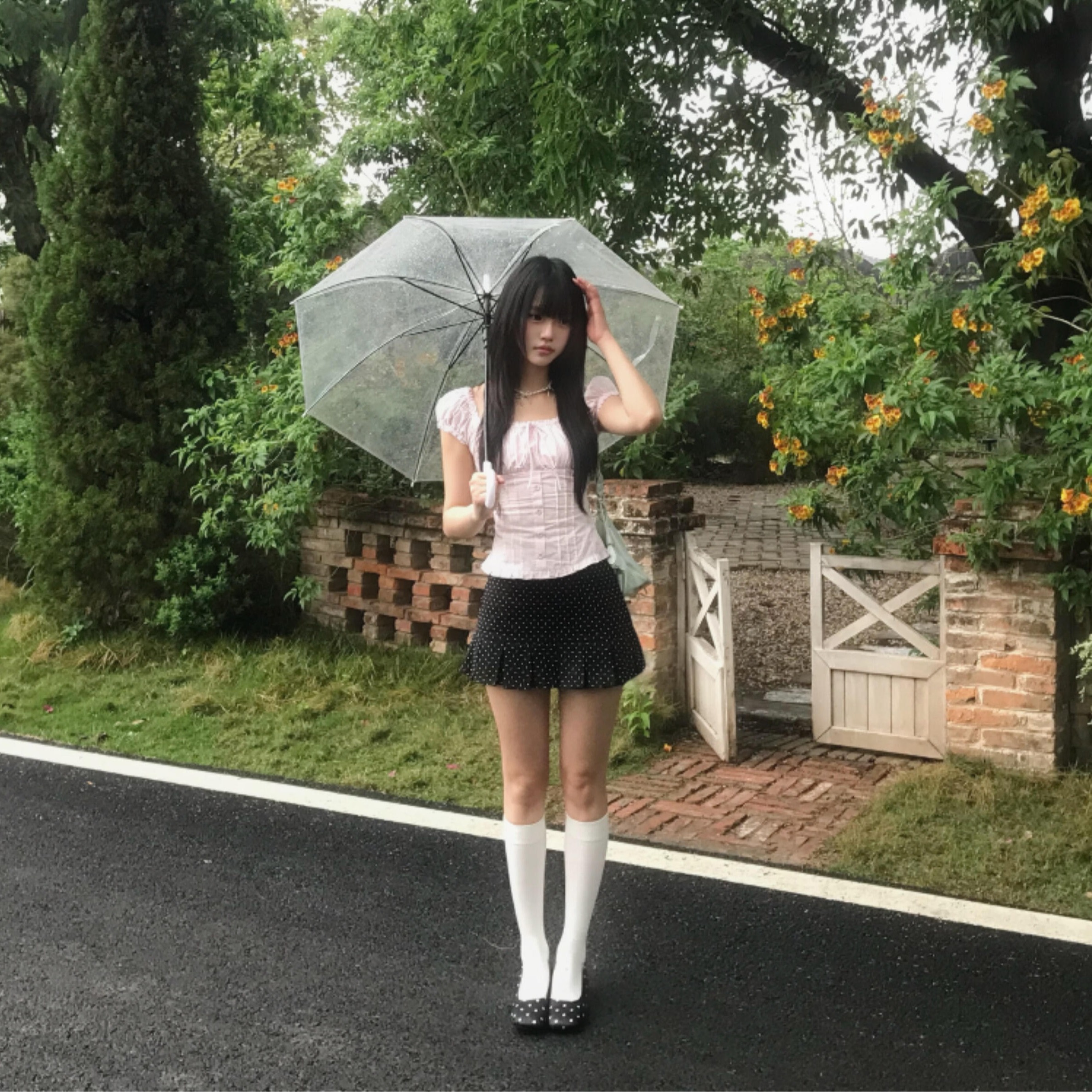 한 부서 디자인 센스 화이트 도트 무늬 드레스 여름 새로운 주름 디자인 센스 학원 스타일 소녀 치마