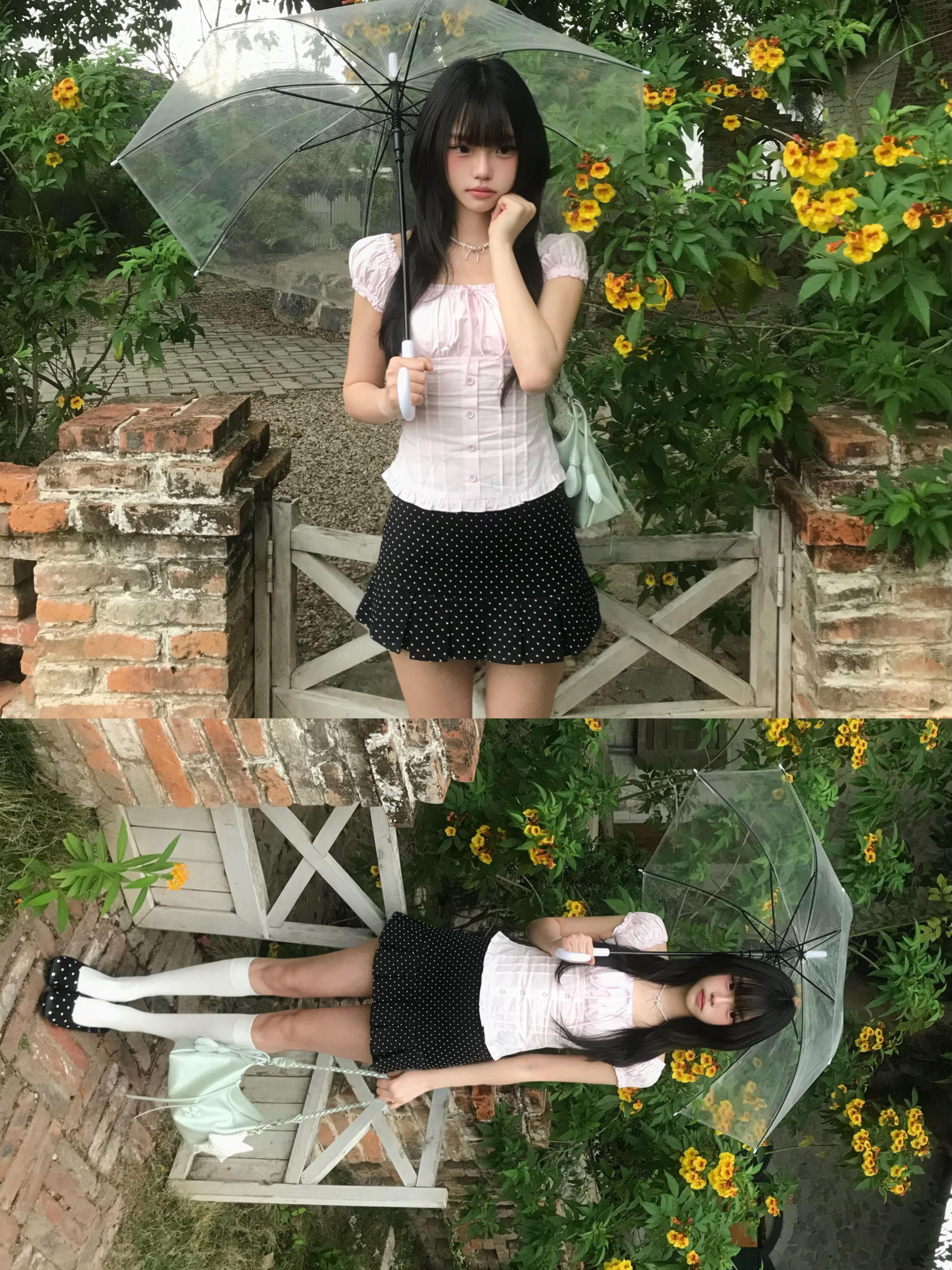 여름 초여름 아름다운 세트 여성 여름 2026 새로운 작은 키 니트 맨위 반 스커트 우산 치마 투피스 세트 치마