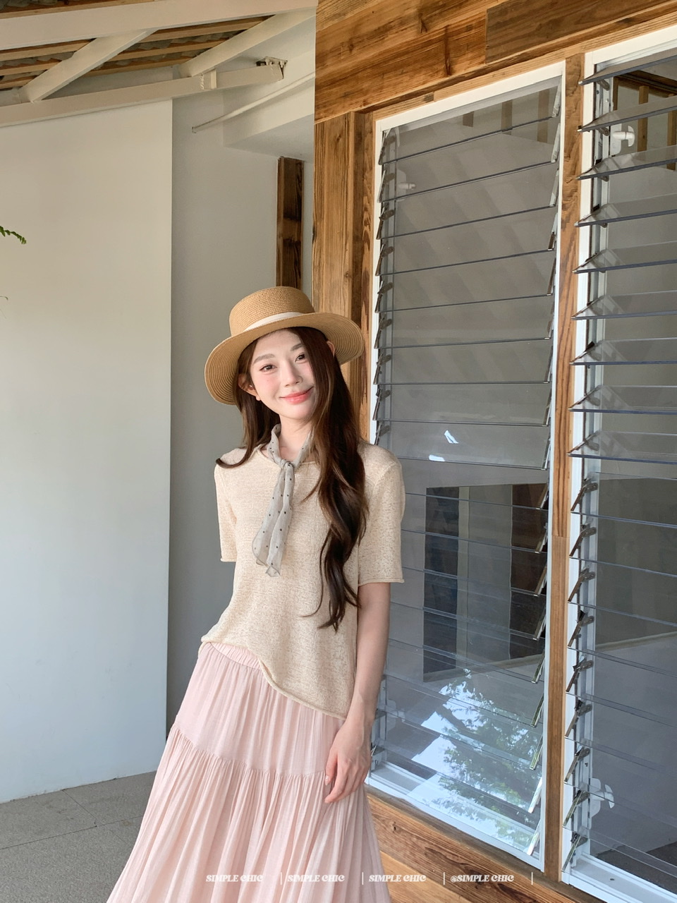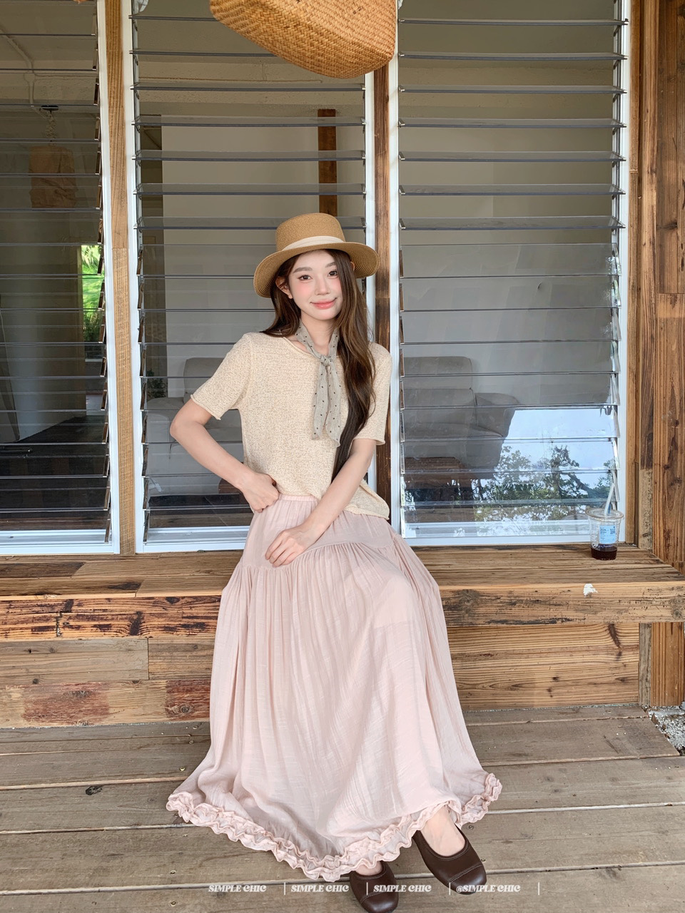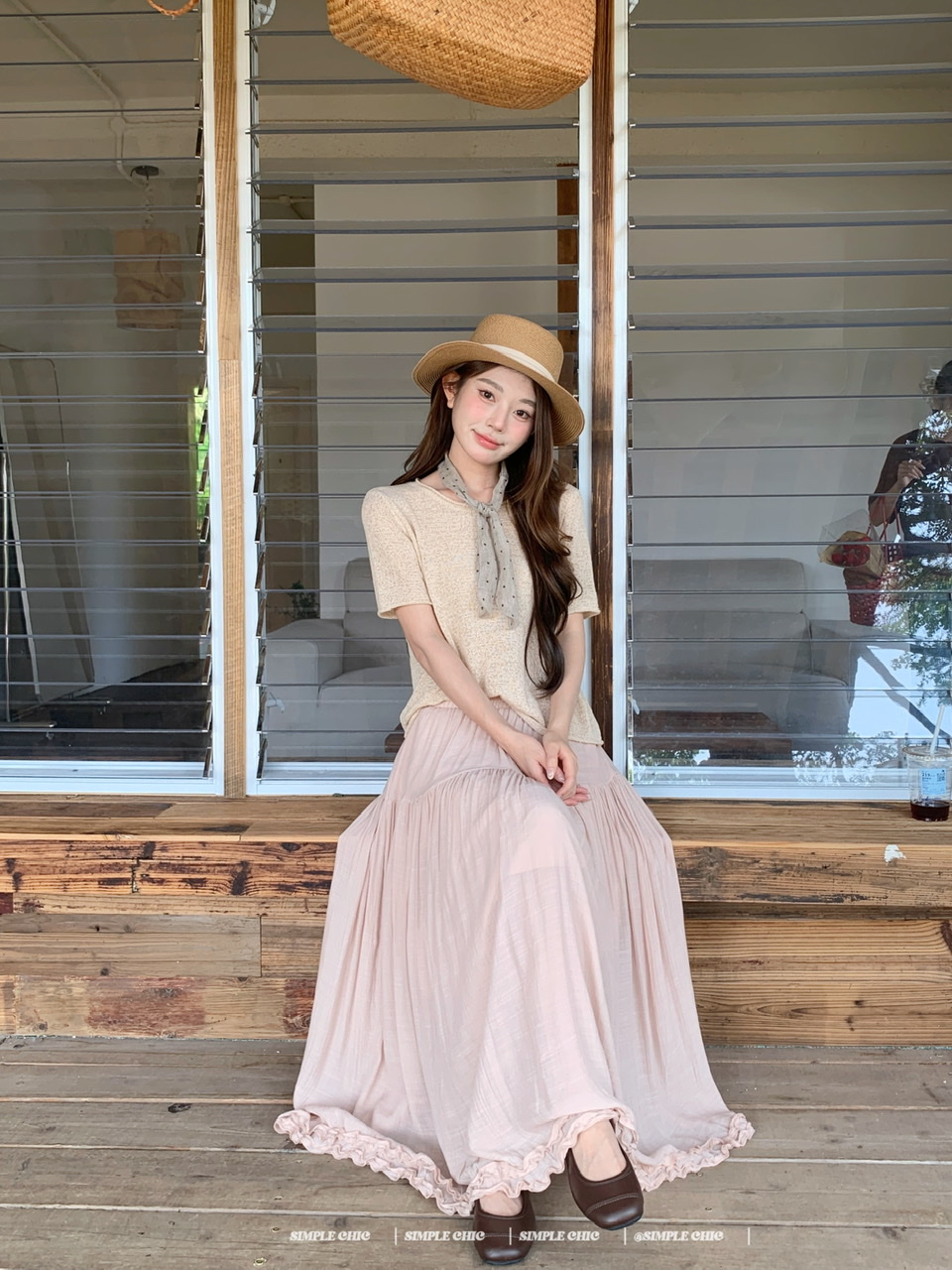 실사 녹색 니트 라운드 넥 루즈핏 맨위 루즈핏 레이스 미니멀리즘 느긋한 반신 스커트 롱 스커트