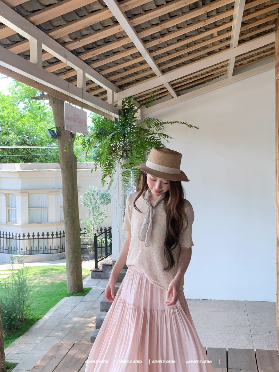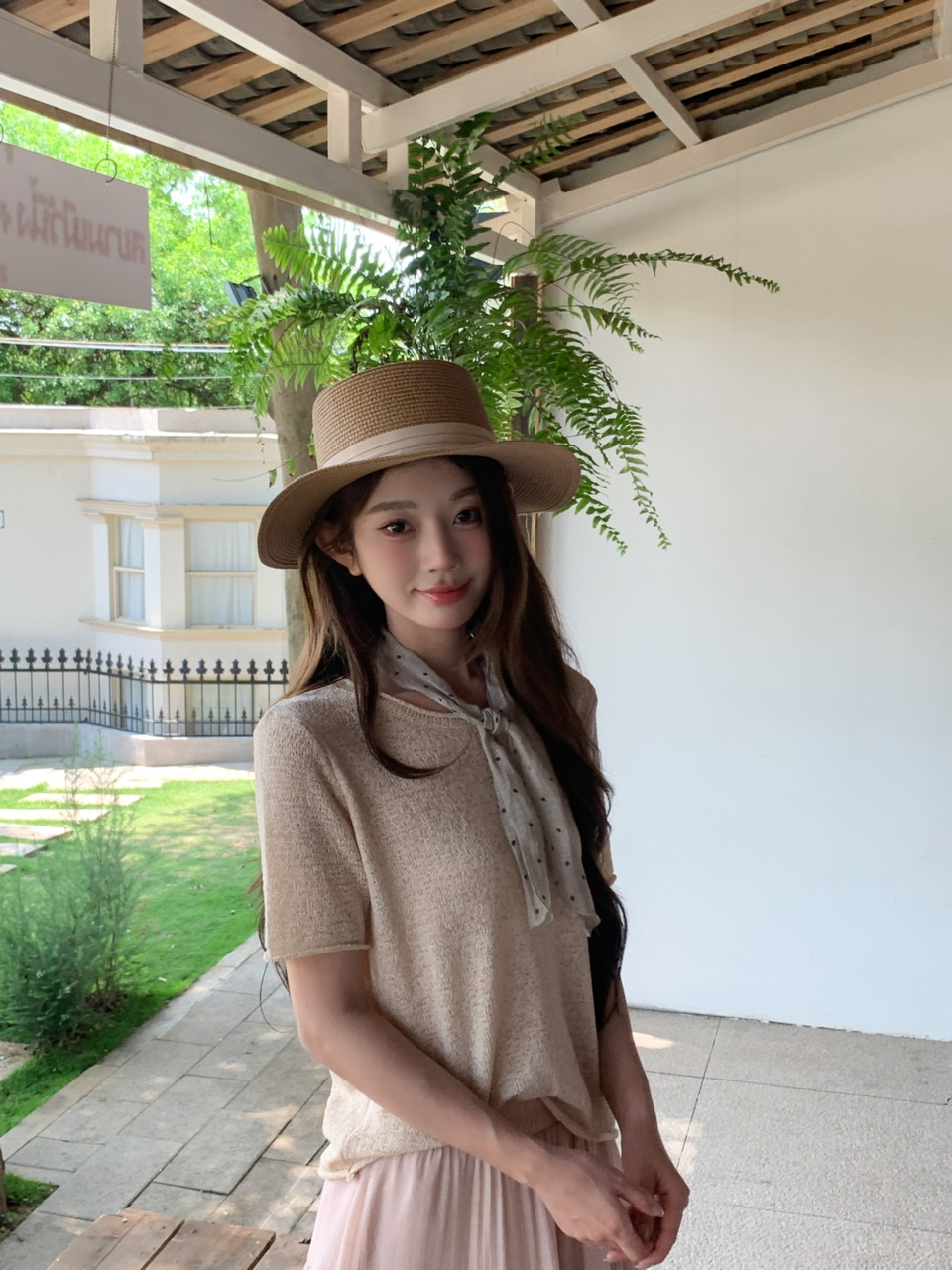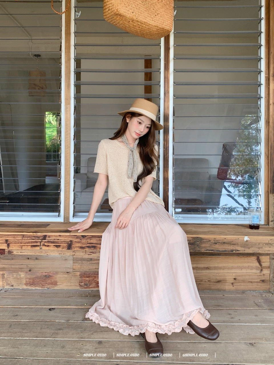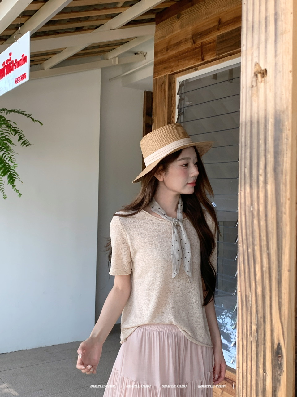 실사 녹색 니트 라운드 넥 루즈핏 맨위 루즈핏 레이스 미니멀리즘 느긋한 반신 스커트 롱 스커트