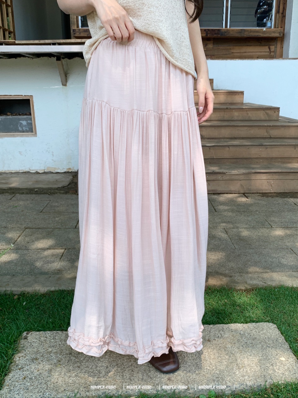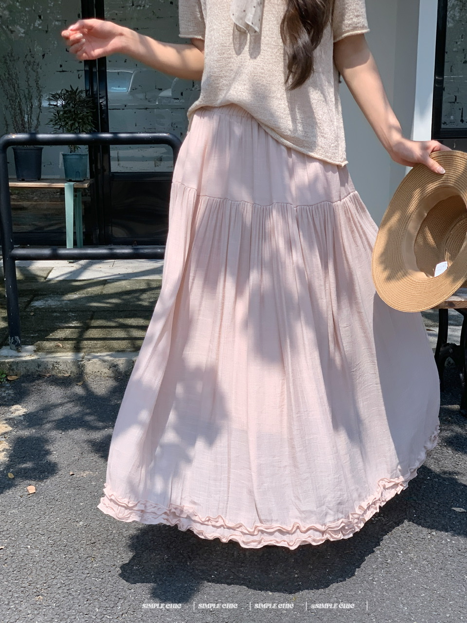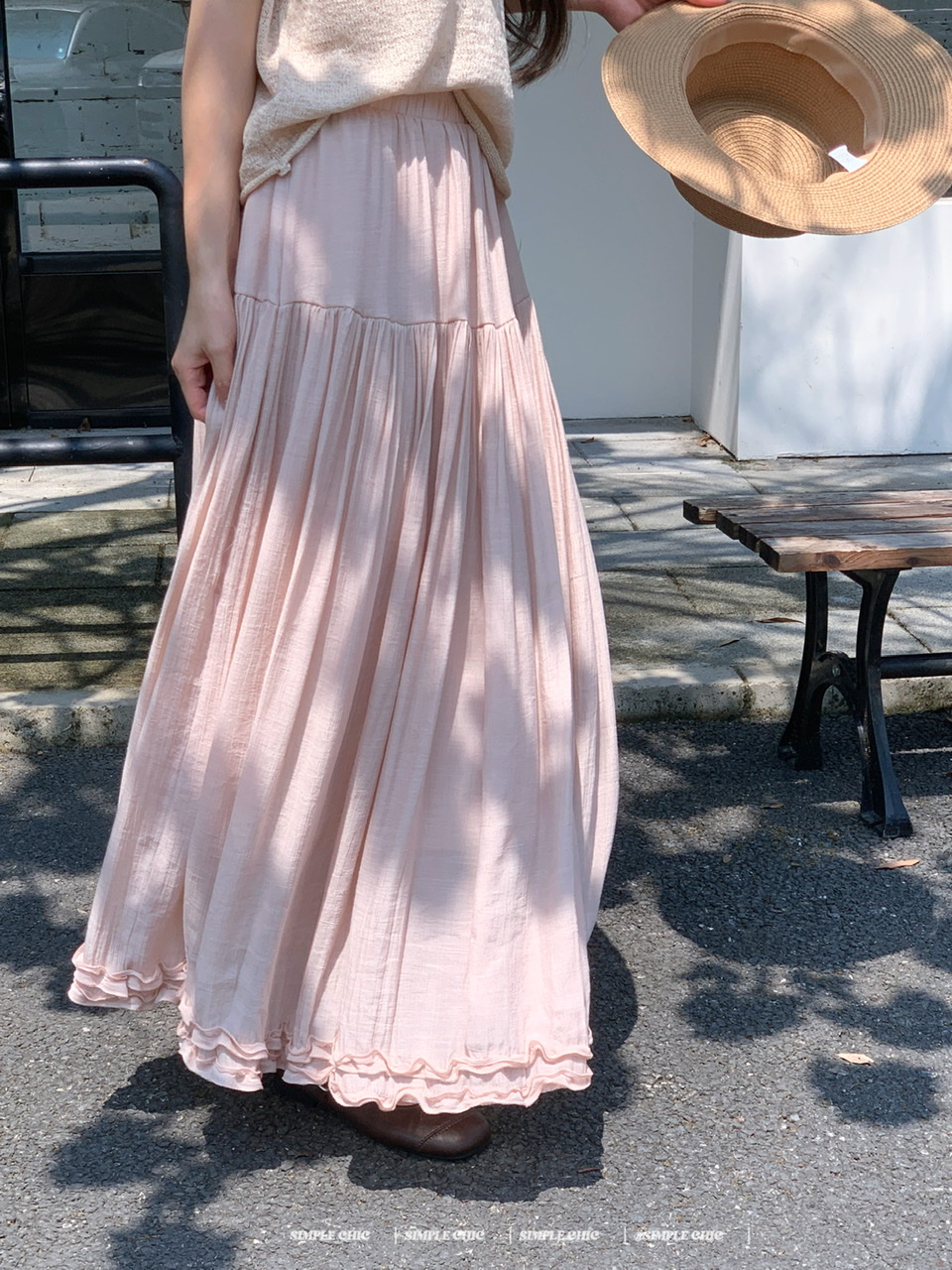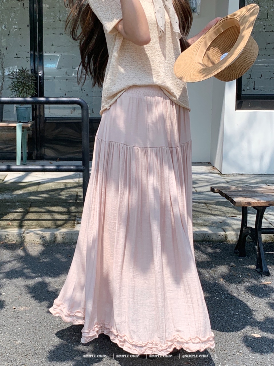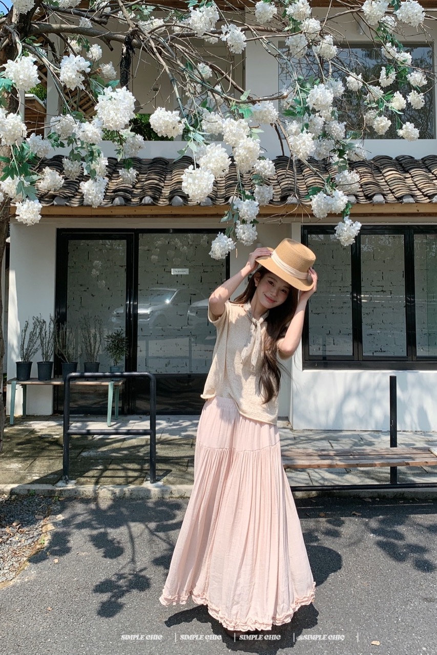 실사 보헤미안 휴가 바람 반신 스커트 여름 도루 센스 주름 한 마디 롱 스커트