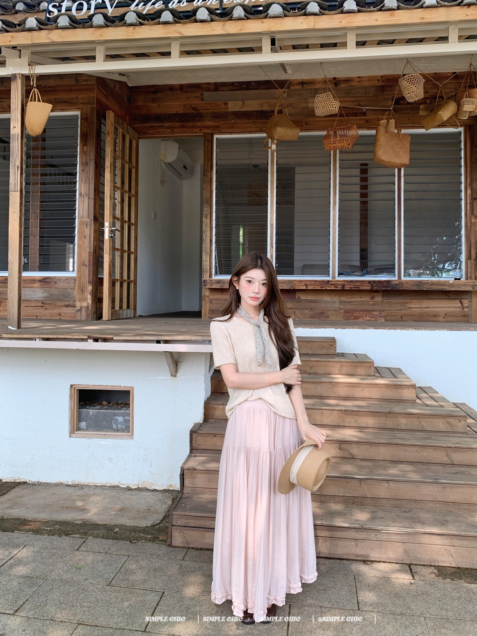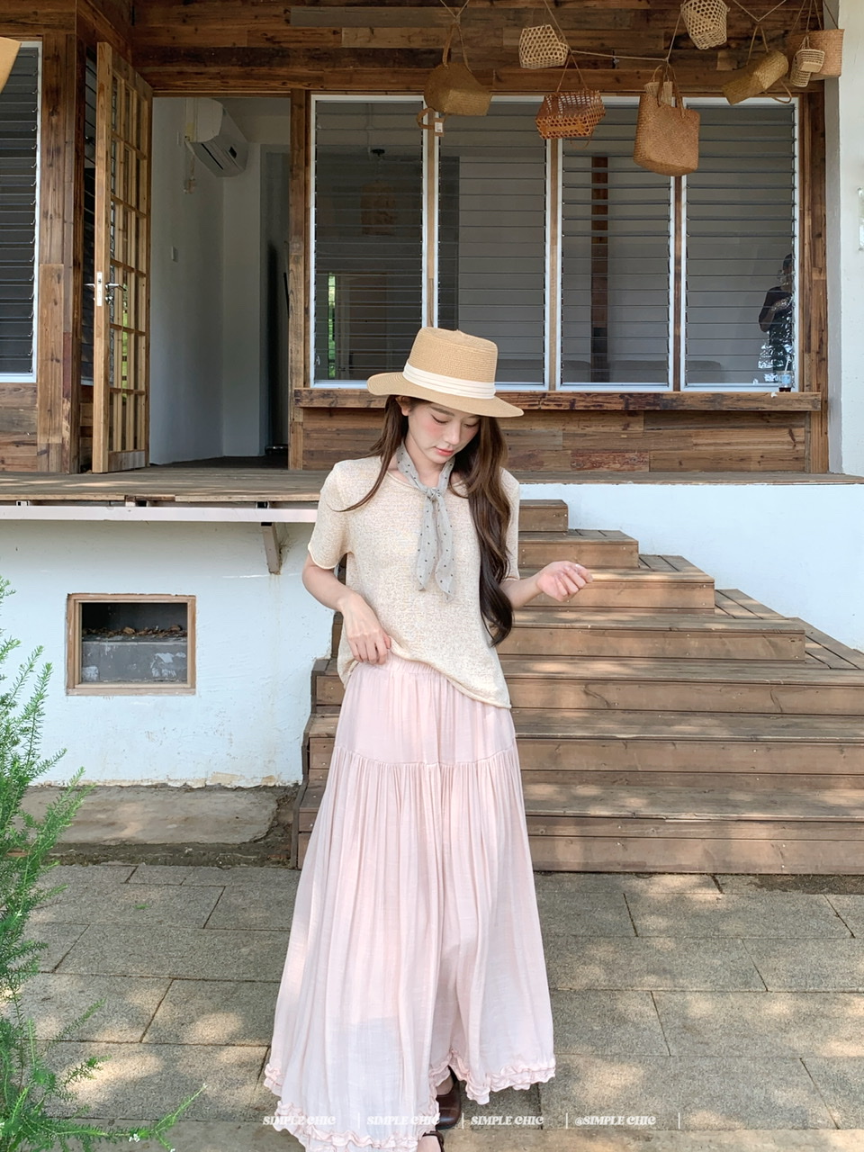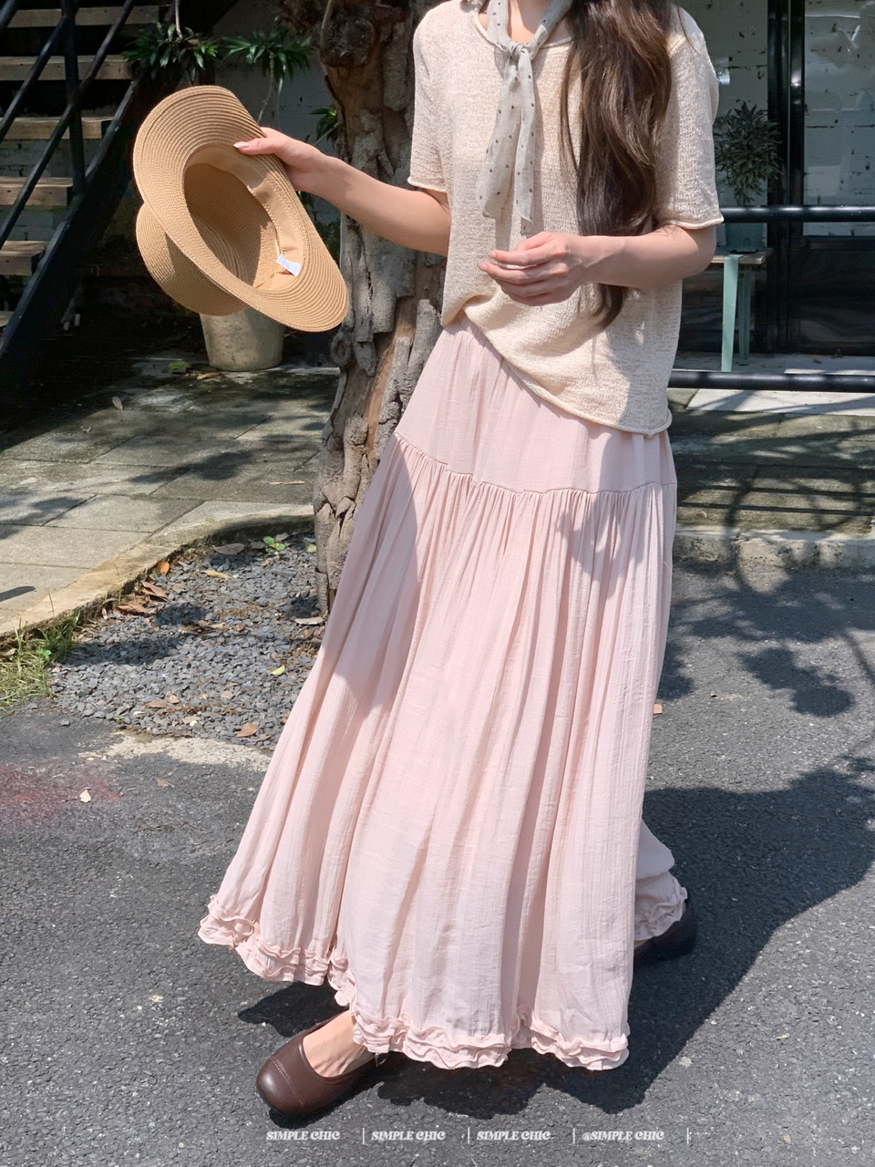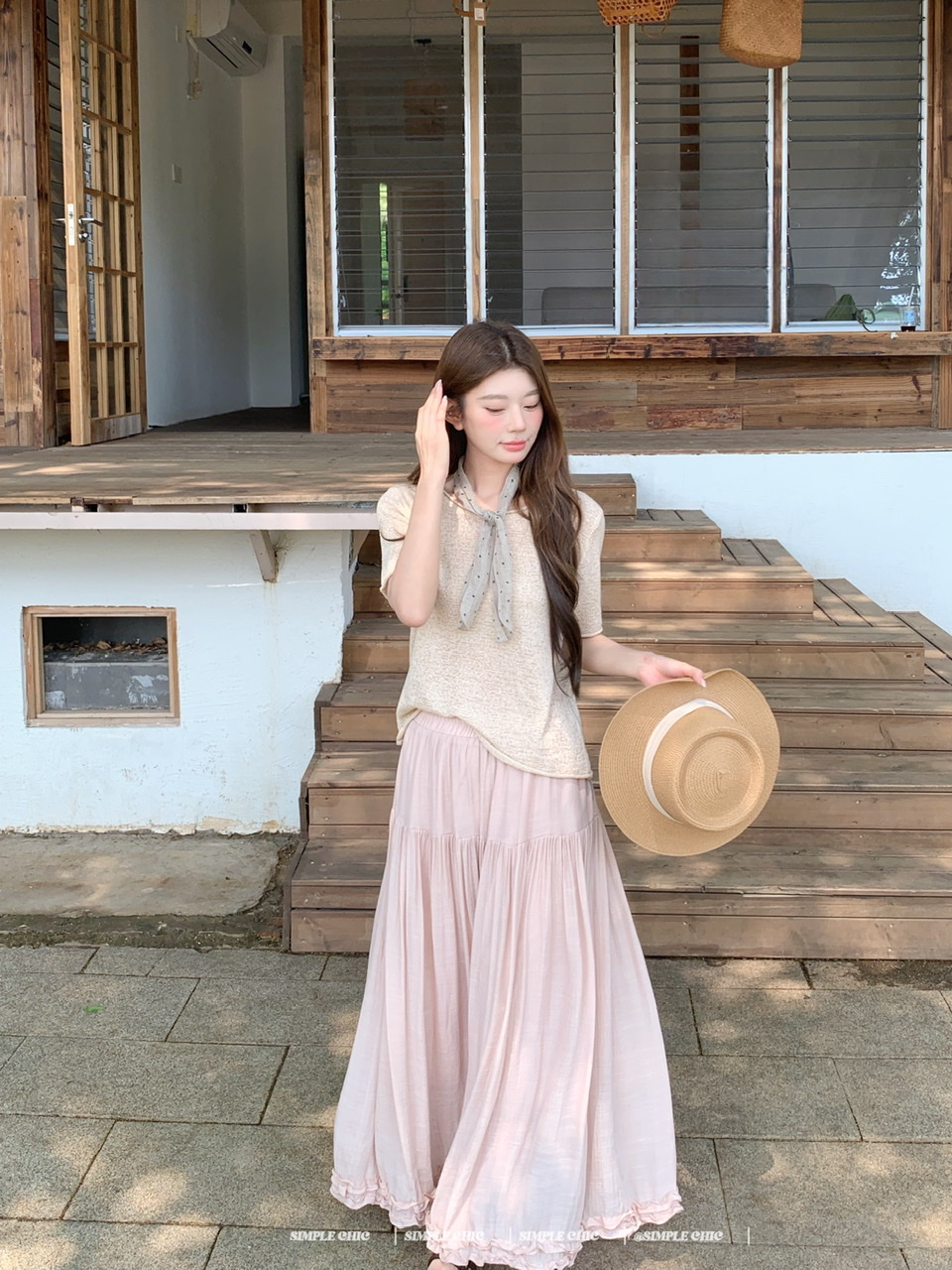 실사 보헤미안 휴가 바람 반신 스커트 여름 도루 센스 주름 한 마디 롱 스커트