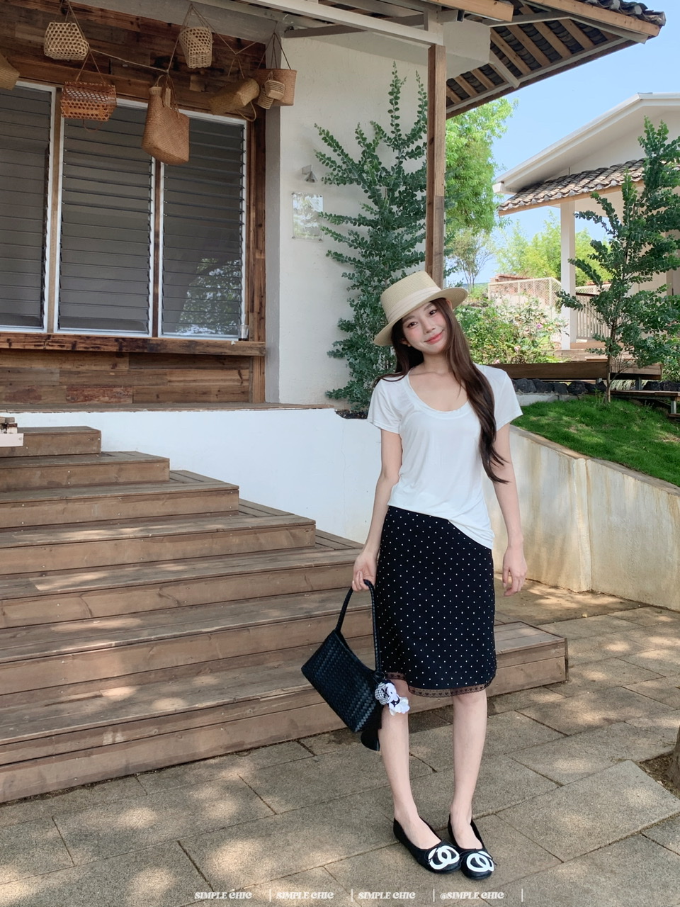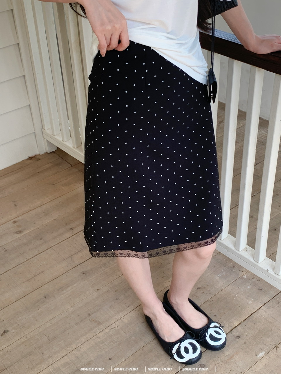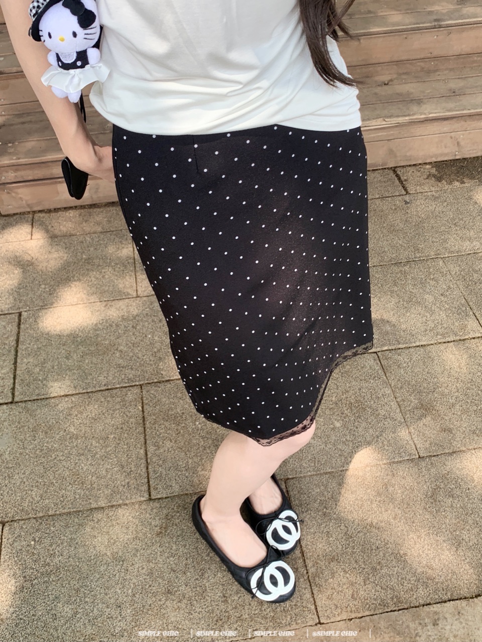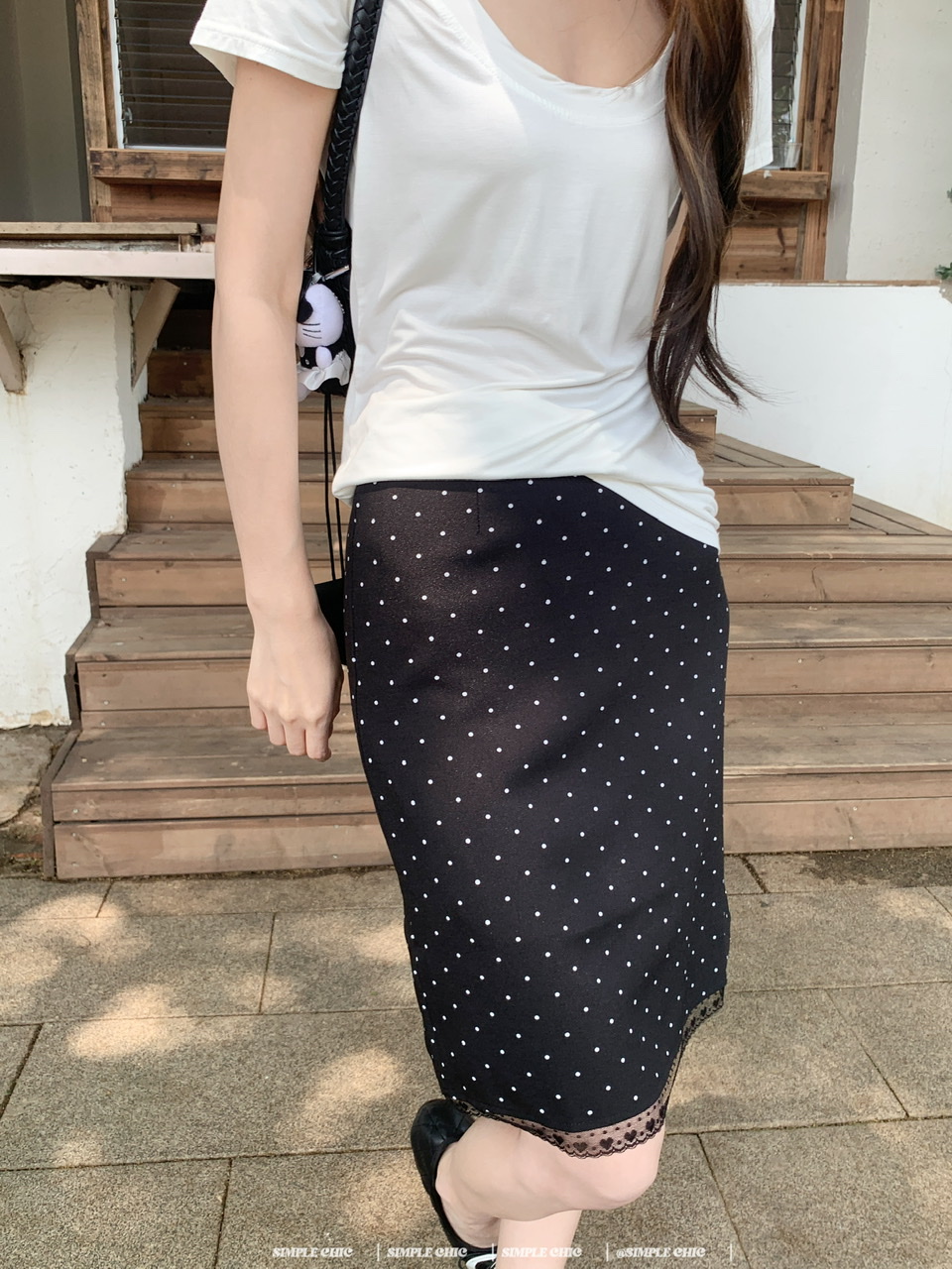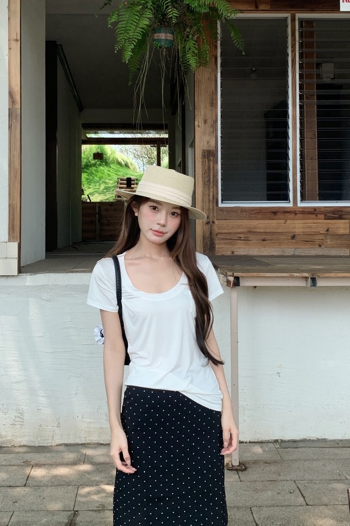실사 레트로 검정색 작은 키 도트 무늬 반신 스커트 몸매 가꾸기 중간 스커트