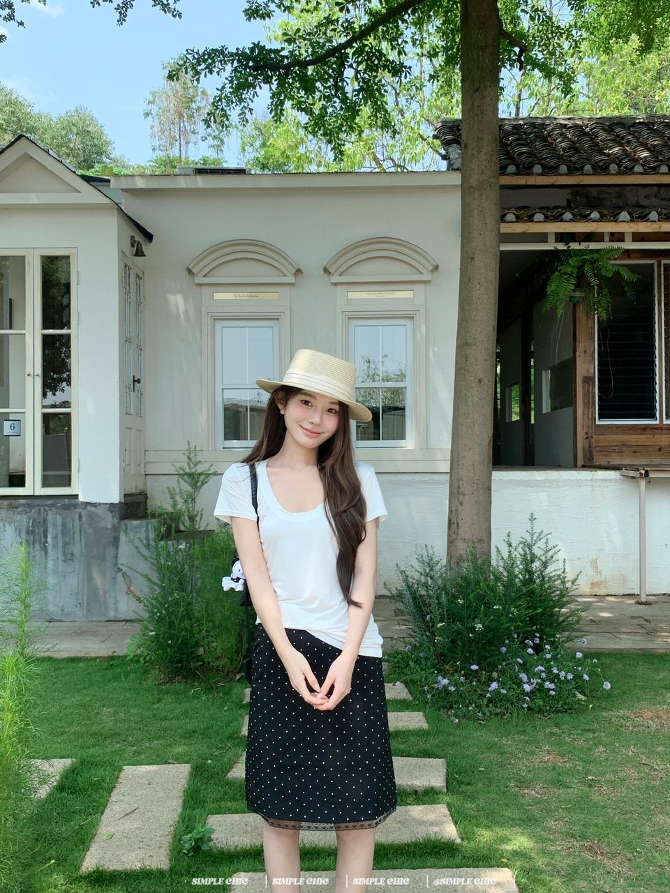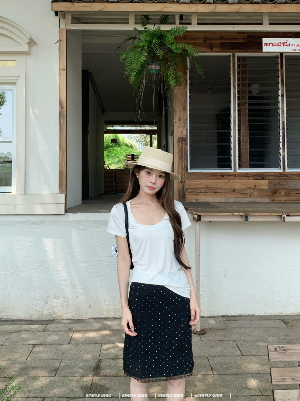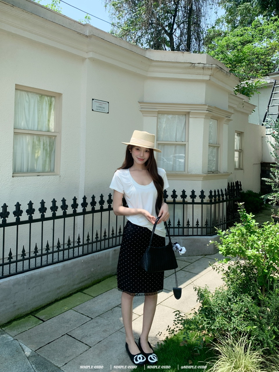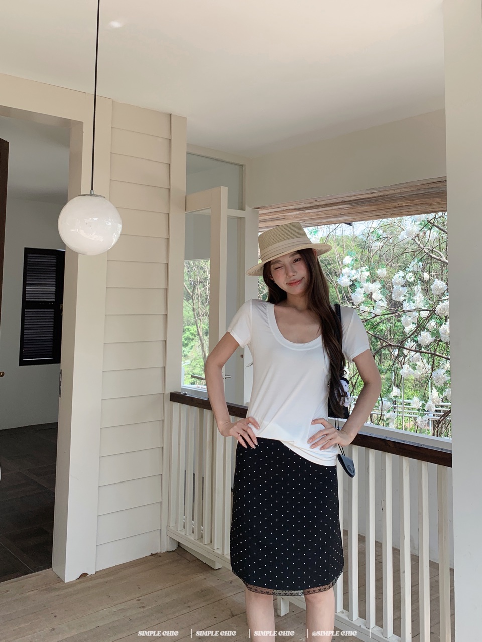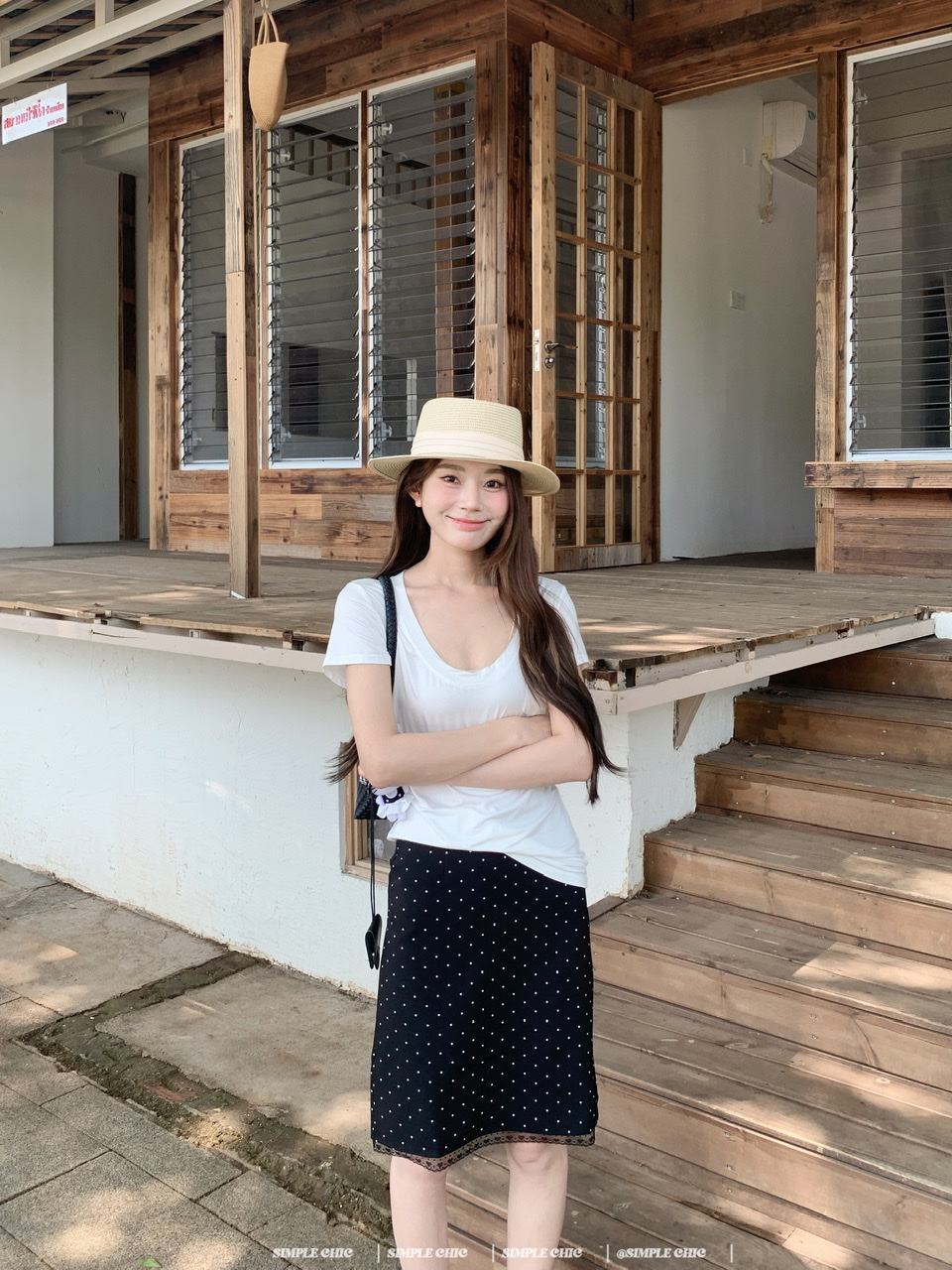 실사 레트로 검정색 작은 키 도트 무늬 반신 스커트 몸매 가꾸기 중간 스커트