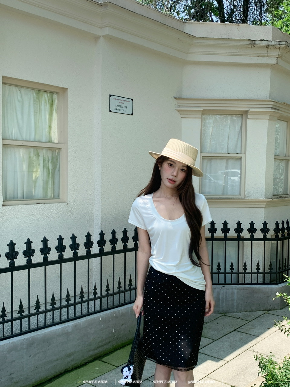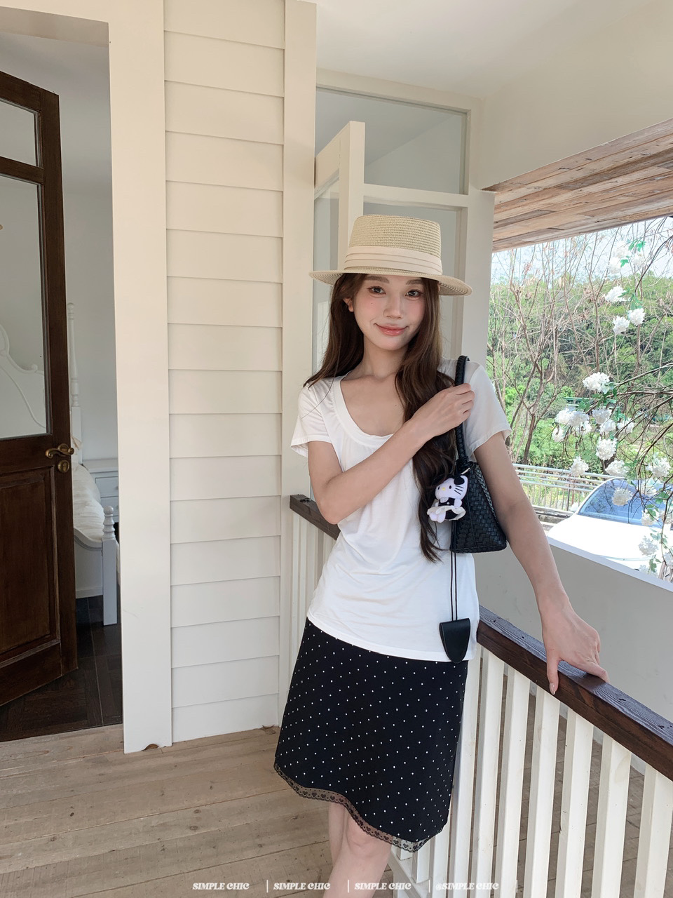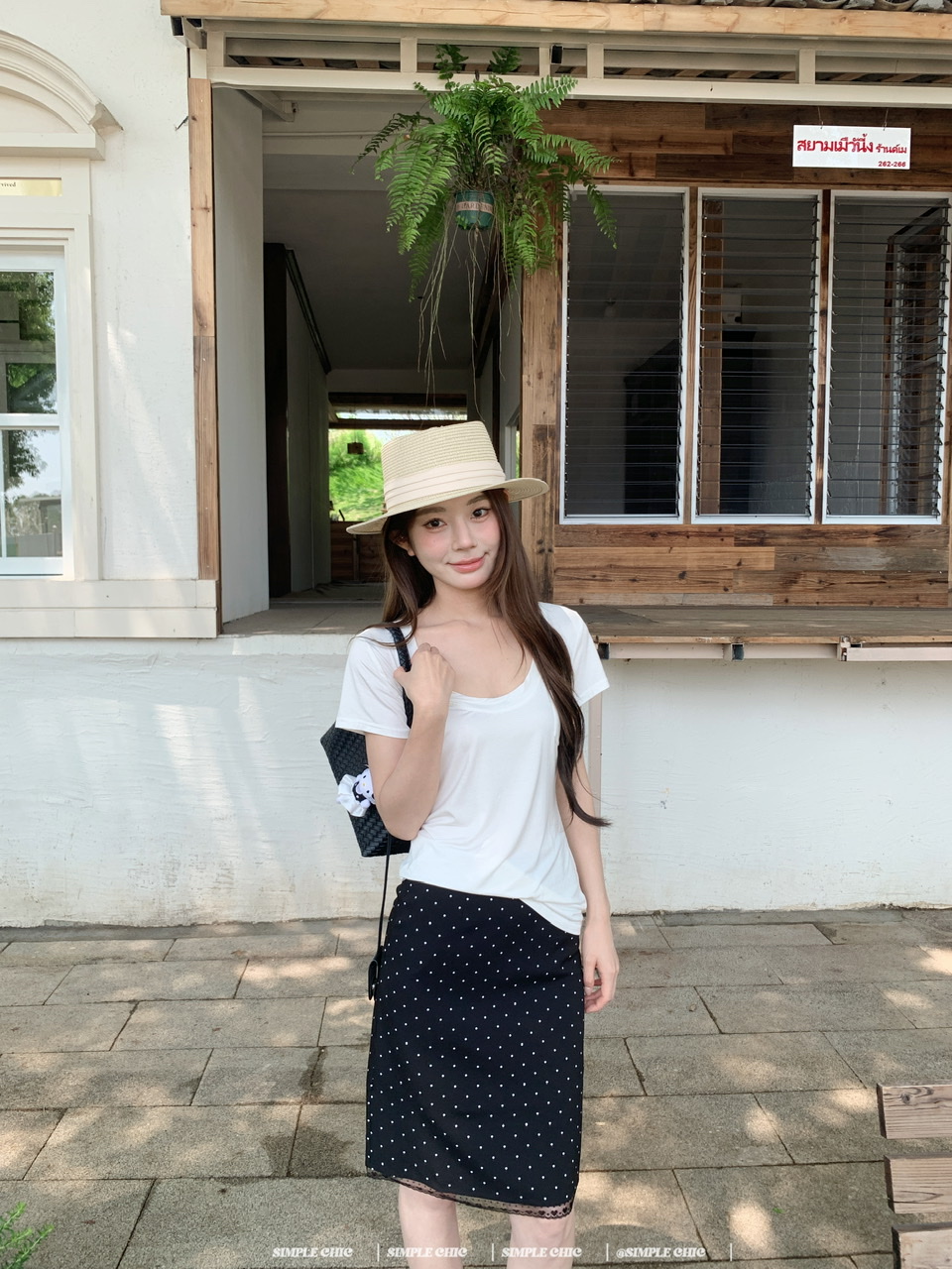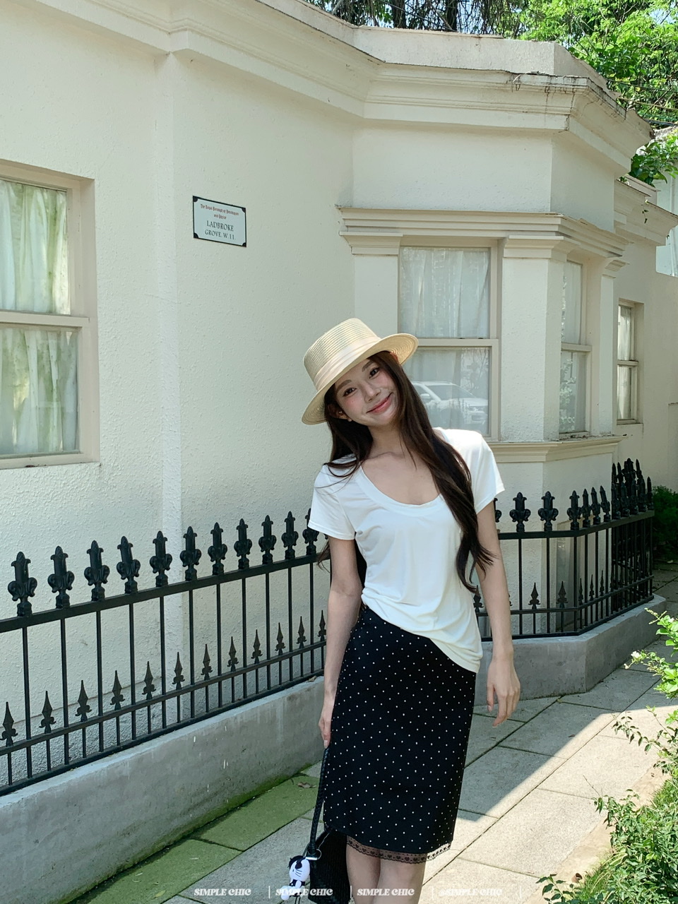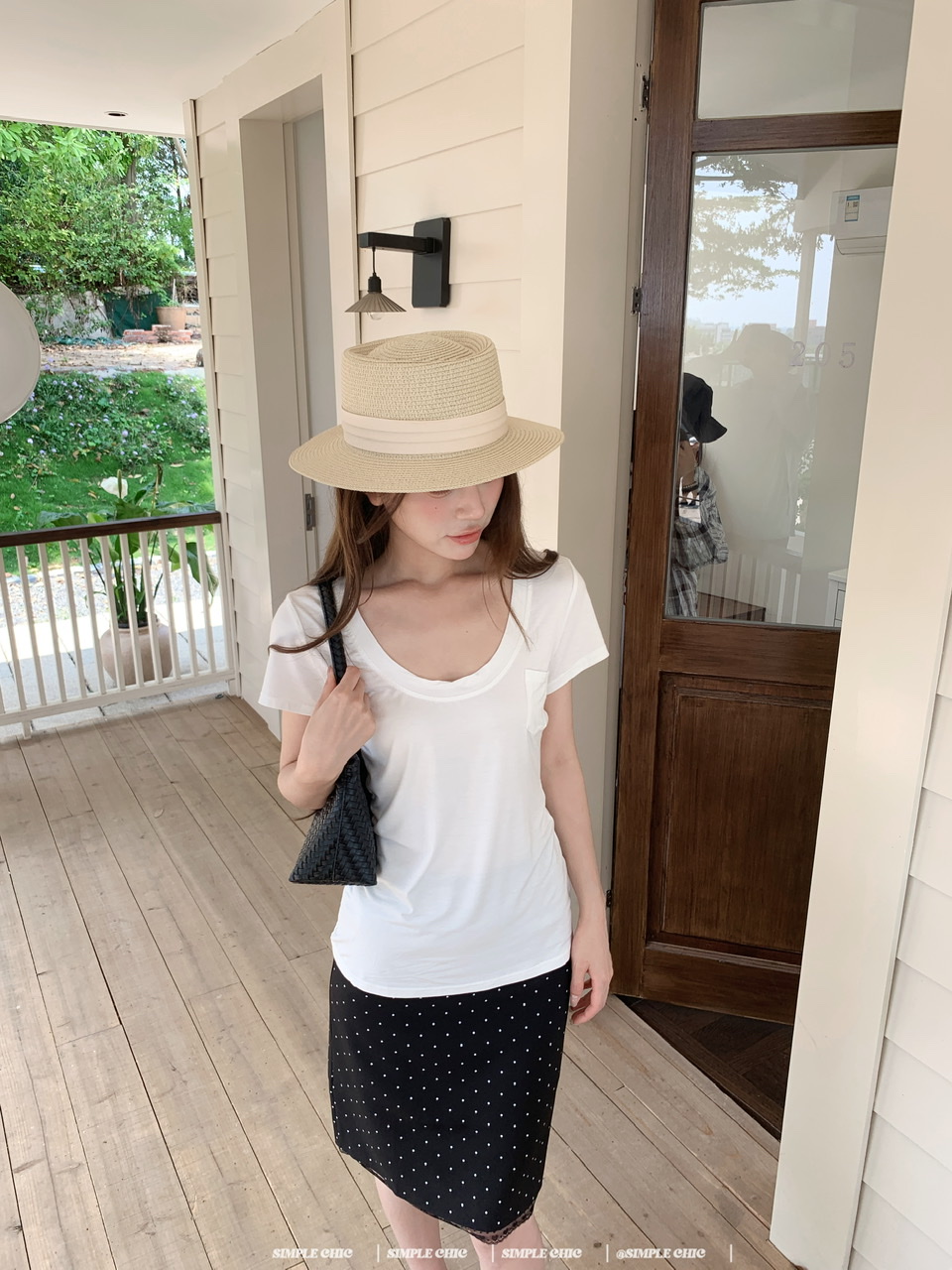 실사 레트로 검정색 작은 키 도트 무늬 반신 스커트 몸매 가꾸기 중간 스커트