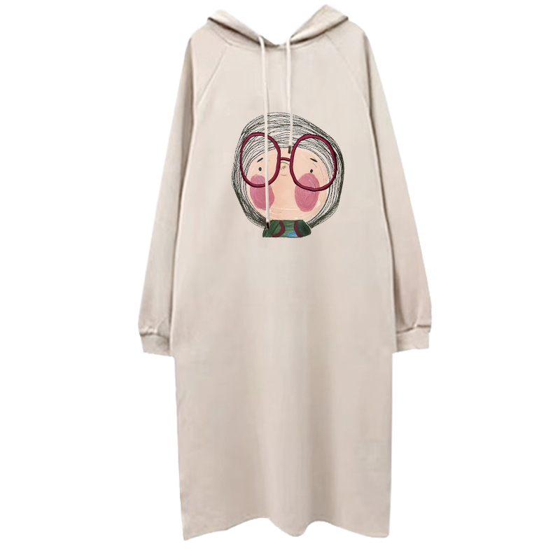 후드 후드티 드레스 출산 착용 봄 가을 드레스 루즈핏 캐주얼 외국 가스 연령 감소 중간 길이