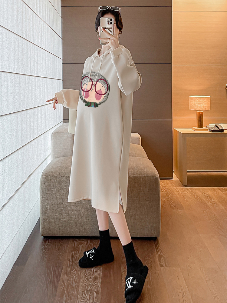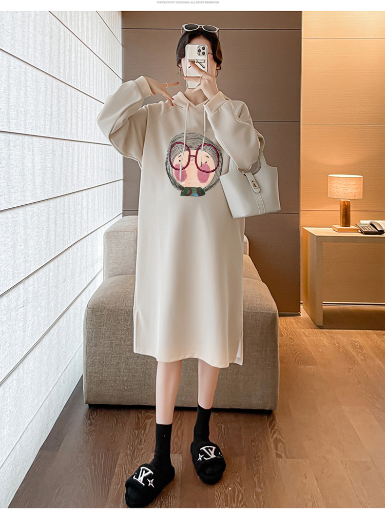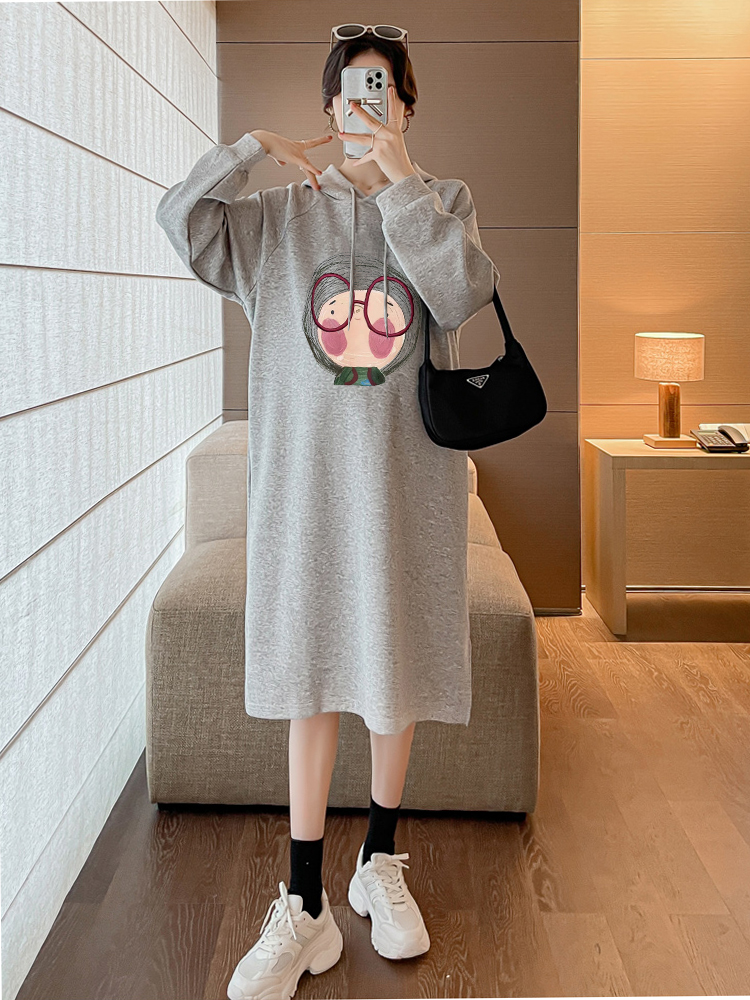 임산부 후드 후드티 드레스 출산 착용 봄 드레스 루즈핏 캐주얼 외국 가스 연령 감소
