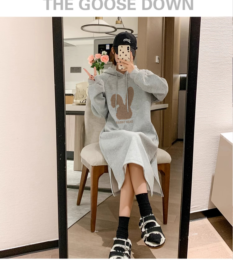 후드 후드티 드레스 출산 착용 봄 가을 드레스 루즈핏 캐주얼 외국 가스 연령 감소 중간 길이