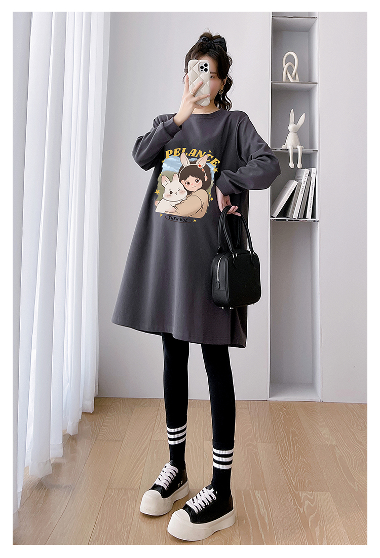 임산부 후드 후드티 드레스 출산 착용 봄 드레스 루즈핏 캐주얼 외국 가스 연령 감소