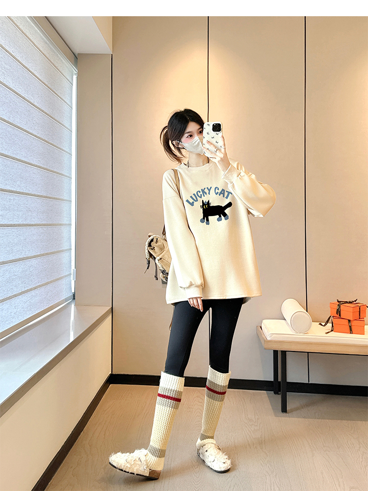 출산 착용 후드티 봄 가을 맨위 루즈핏 캐주얼 외국 가스 연령 감소 중간 길이 긴팔