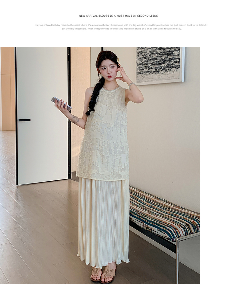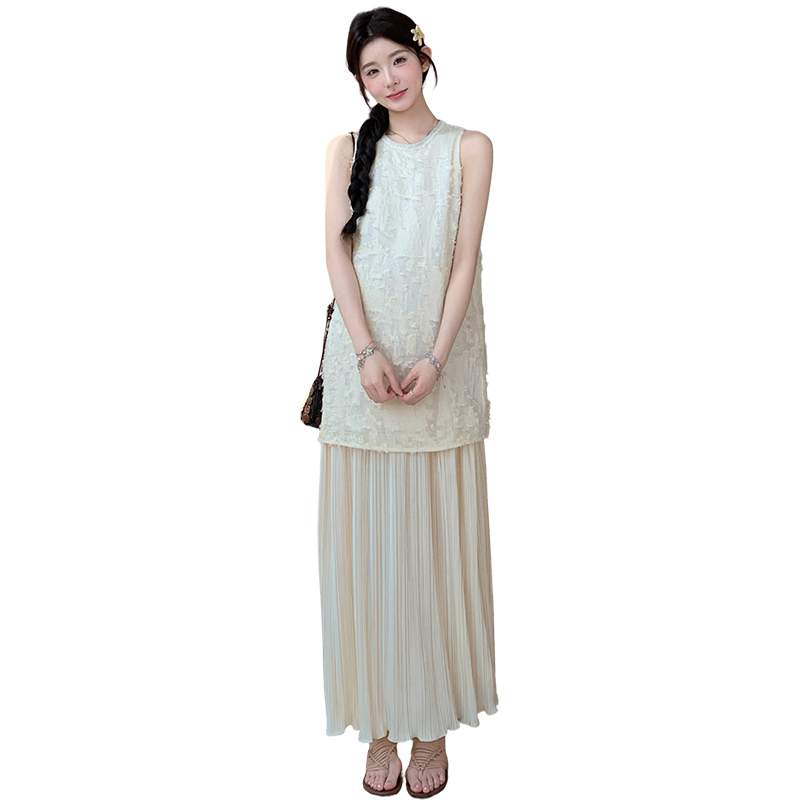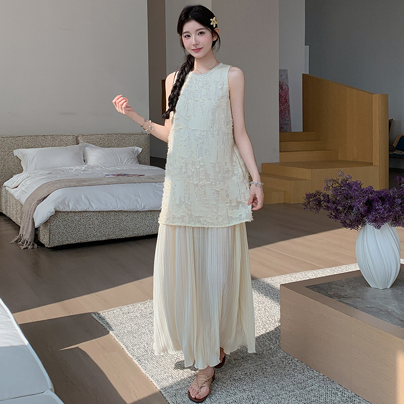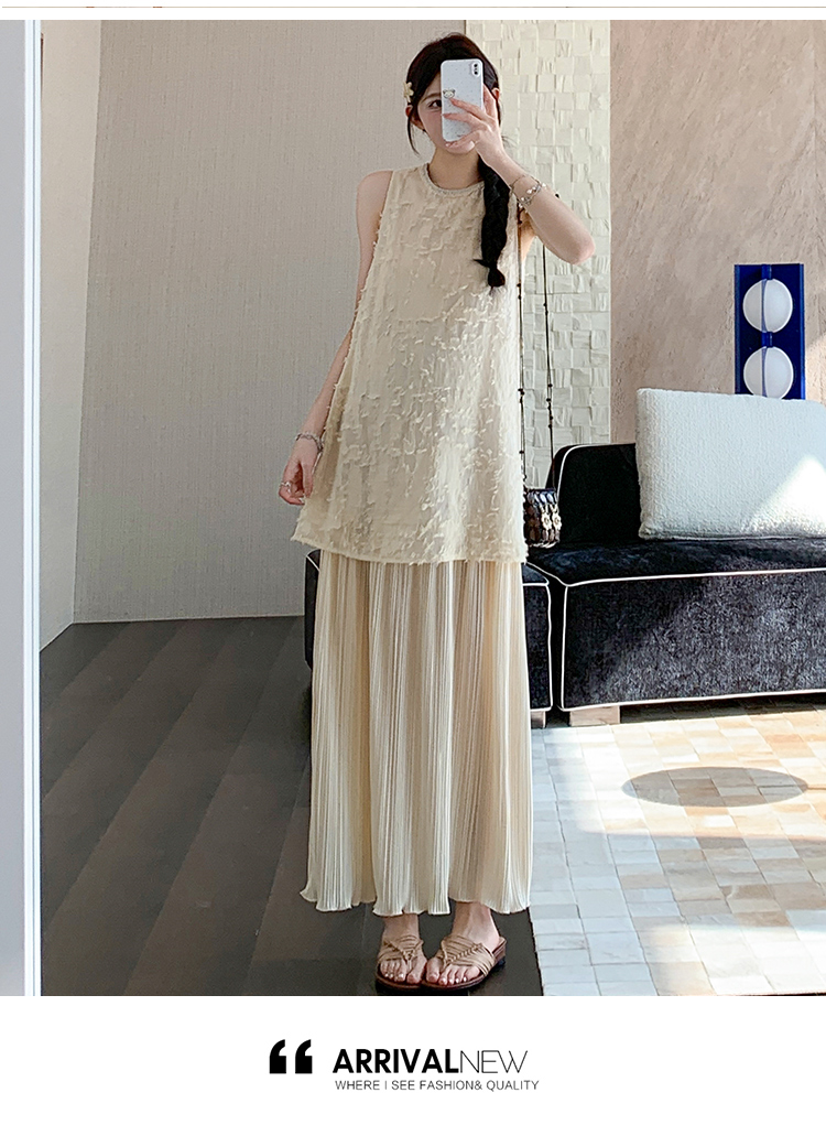 실사 여름 새로운 디자인 센스 허리 수축 슬림해 보이는 니트 조끼 임산부 드레스