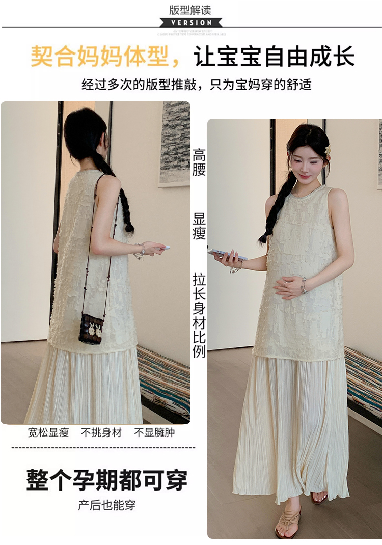 실사 2026 년 여름 임산부 새로운 패션 미니멀리즘 다용도 프릴 슬립 플러스 롱 코트 셔츠 세트