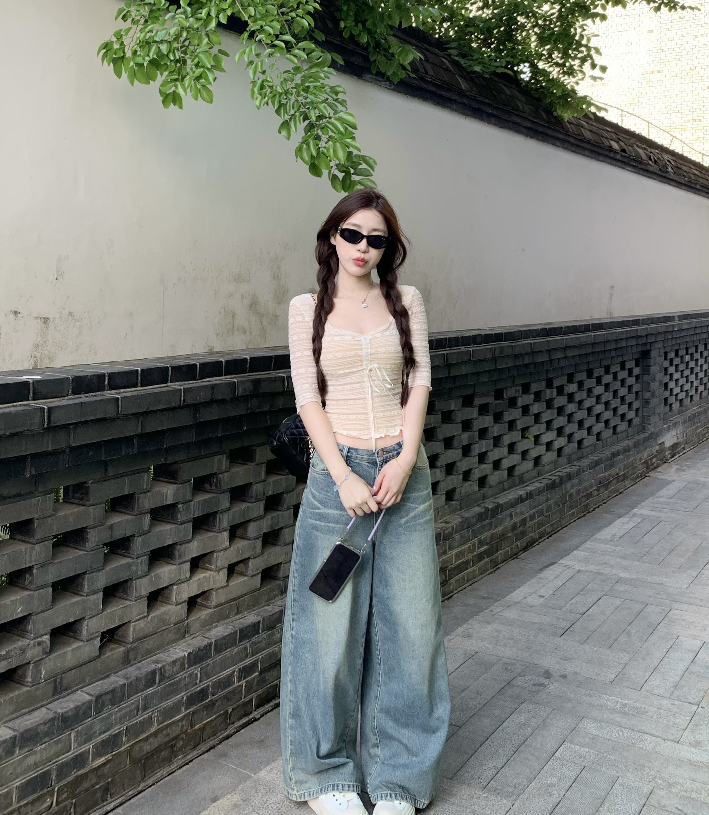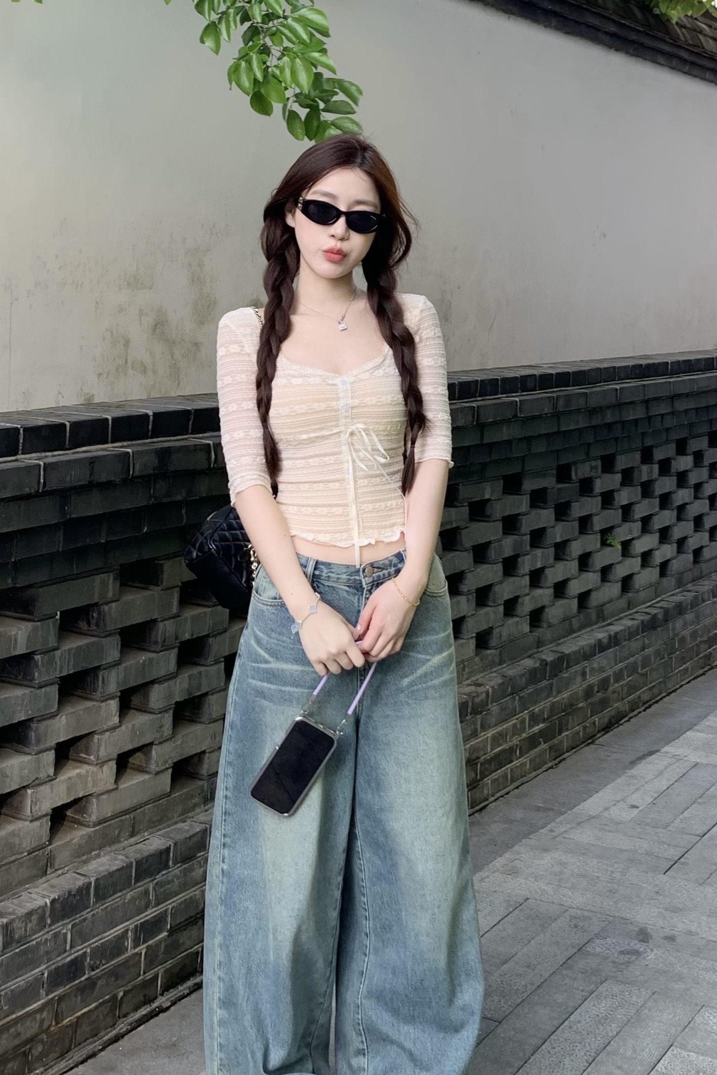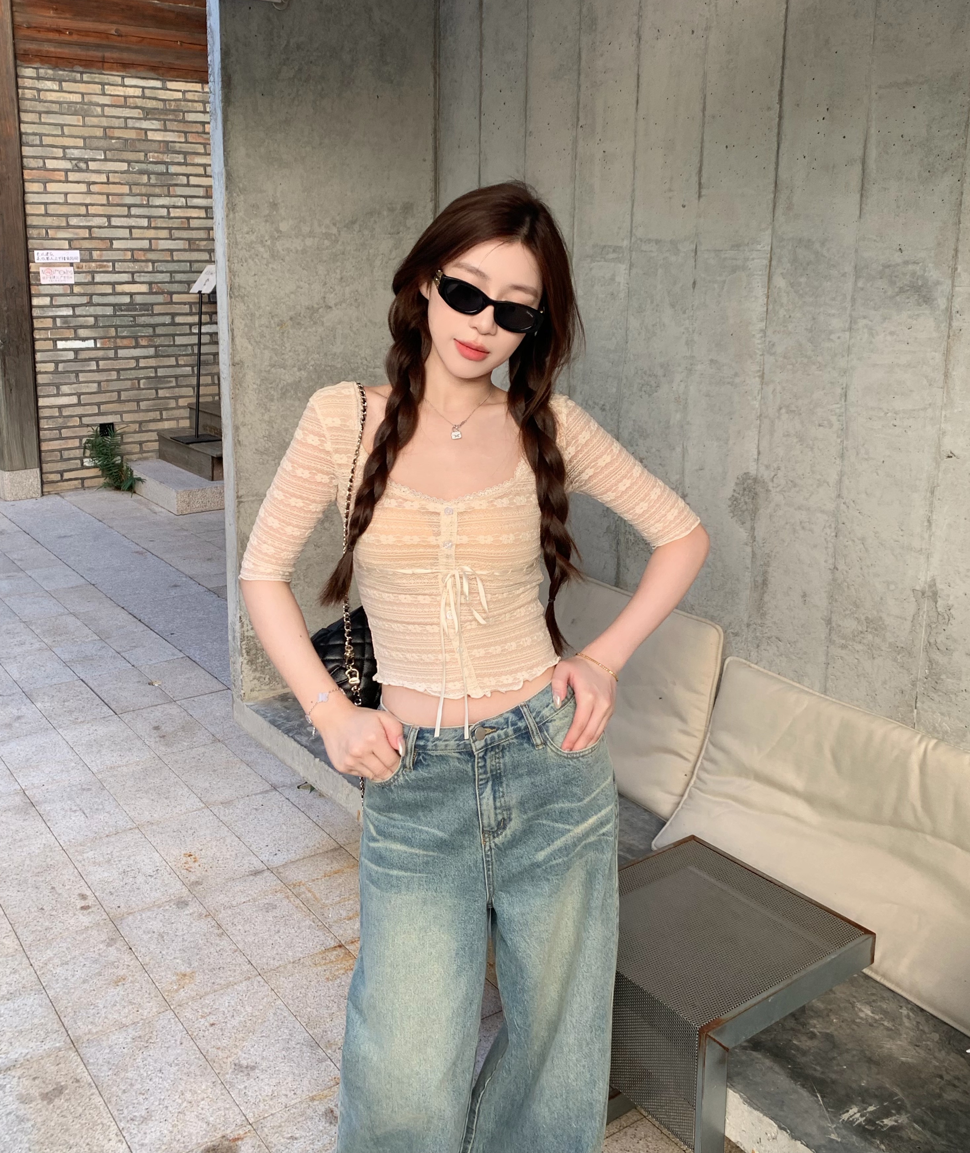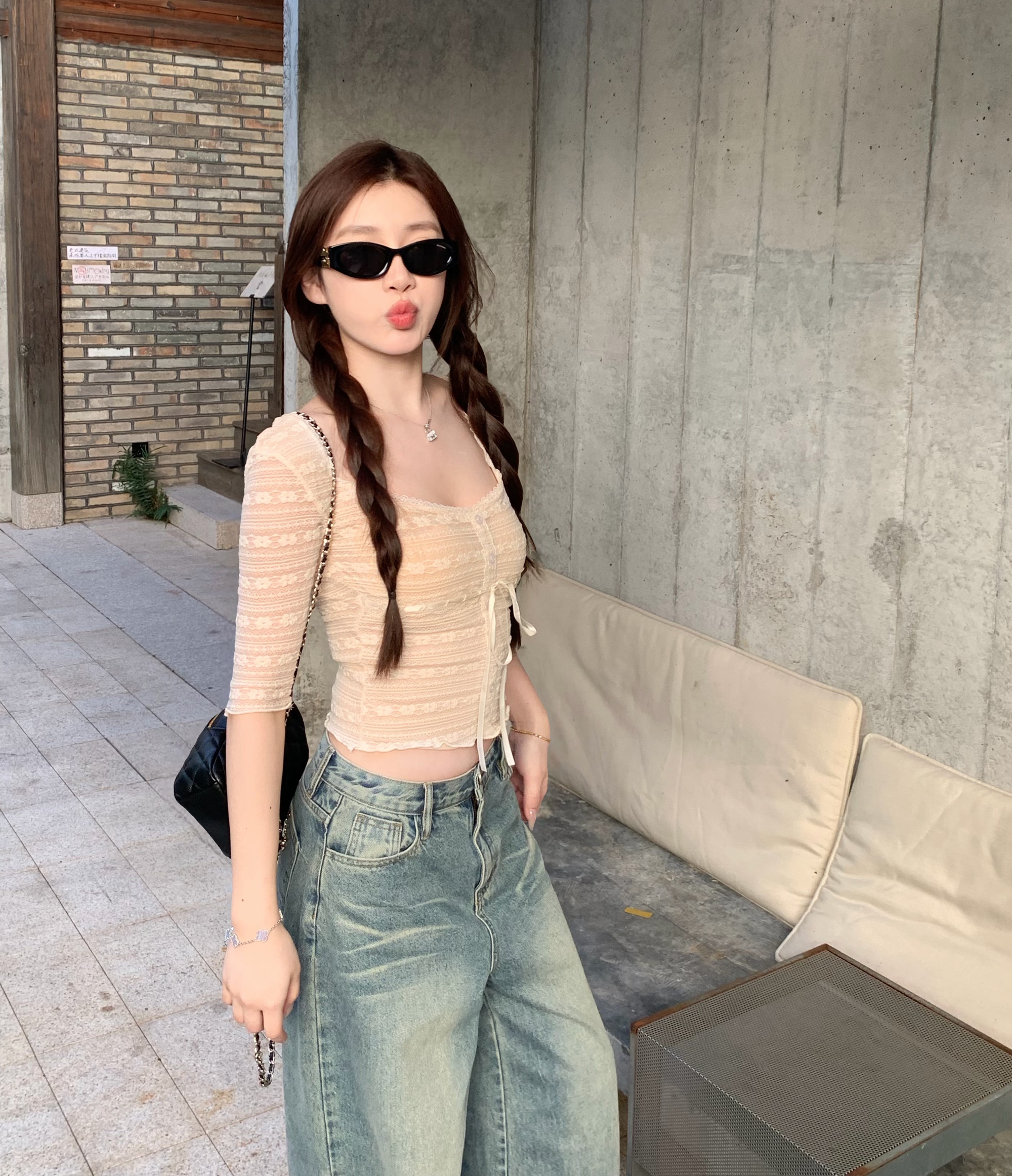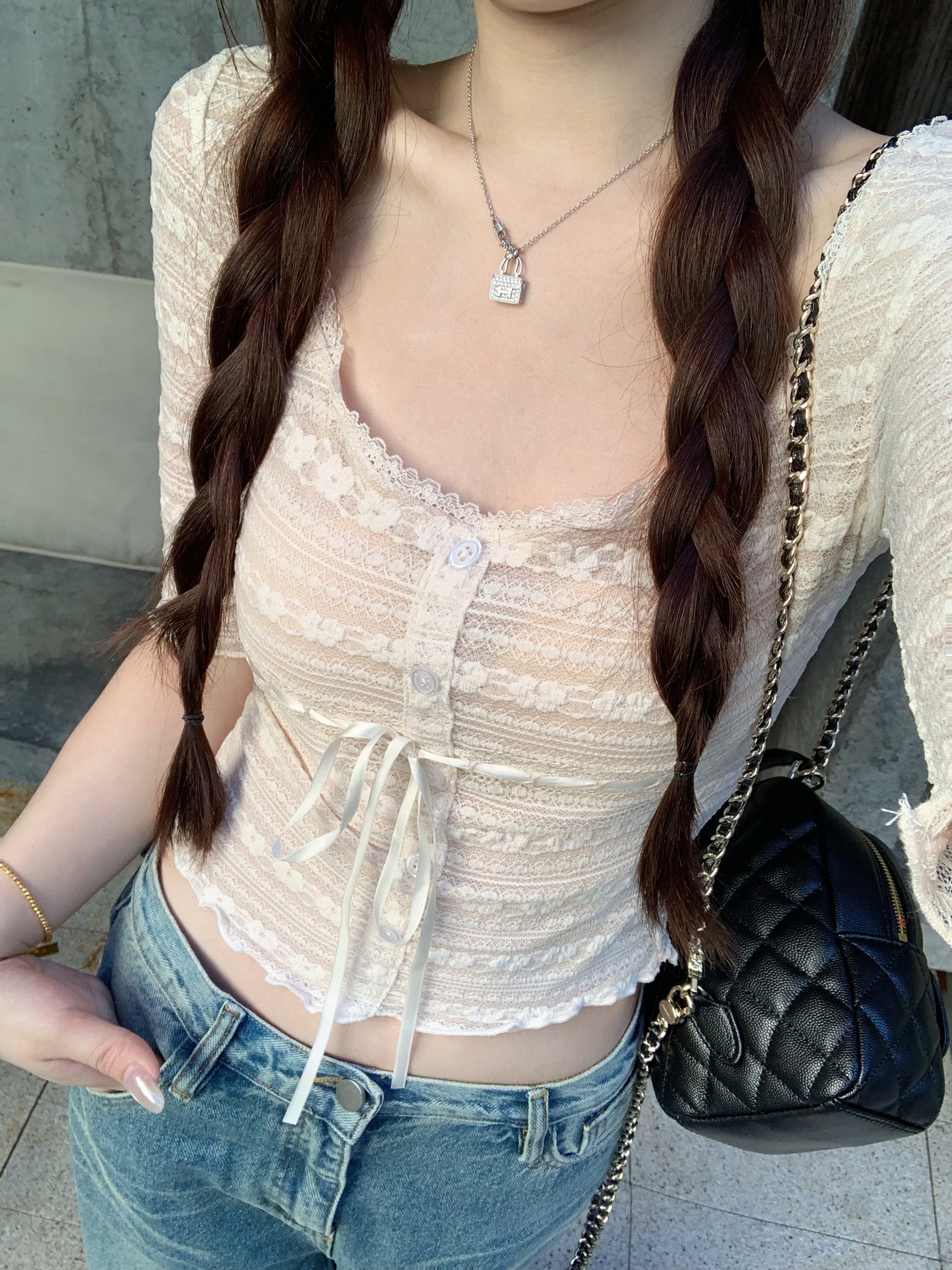 실사 정가 한 부서 질감 센스 벌룬 소매 맨위 여성 얇고 가벼운 통기성 레이스 작은 셔츠