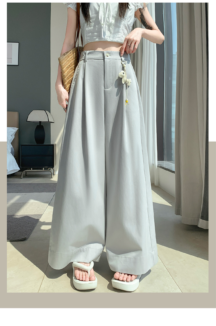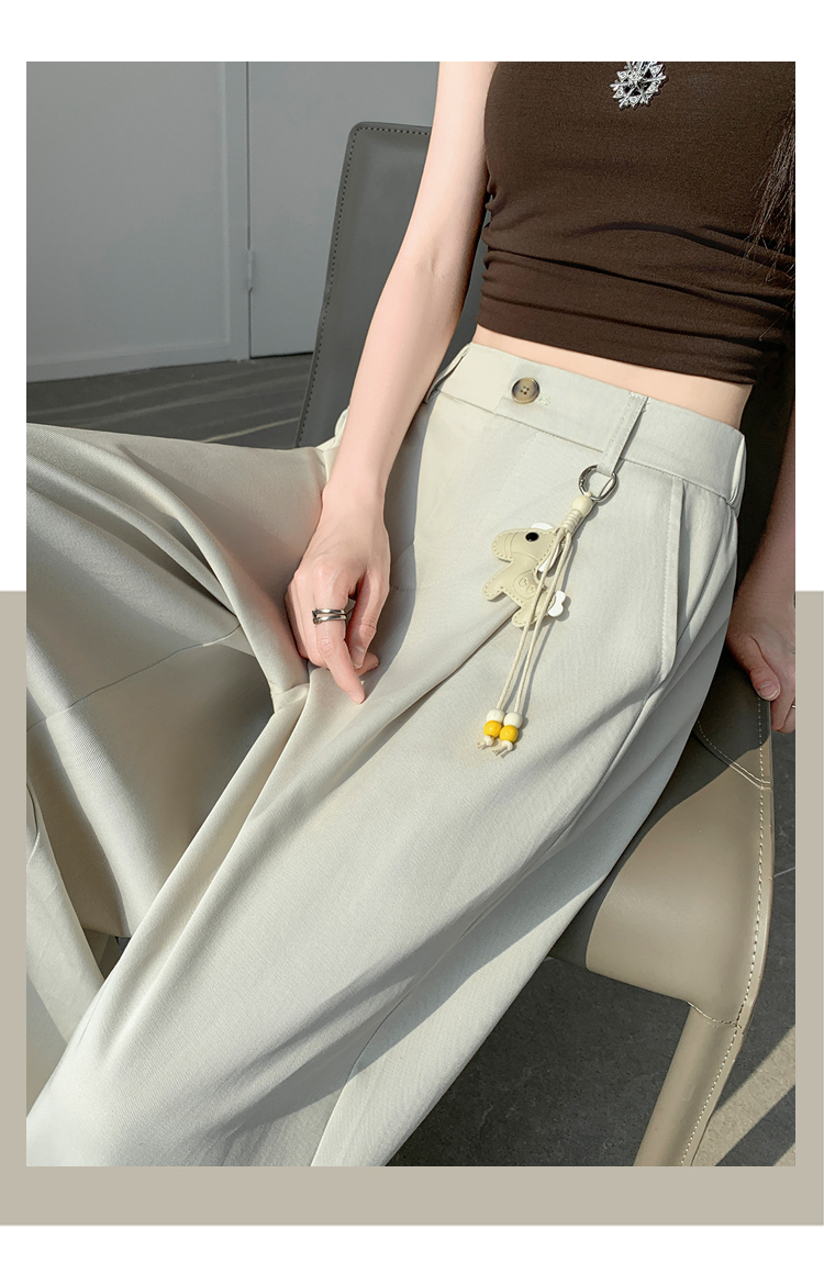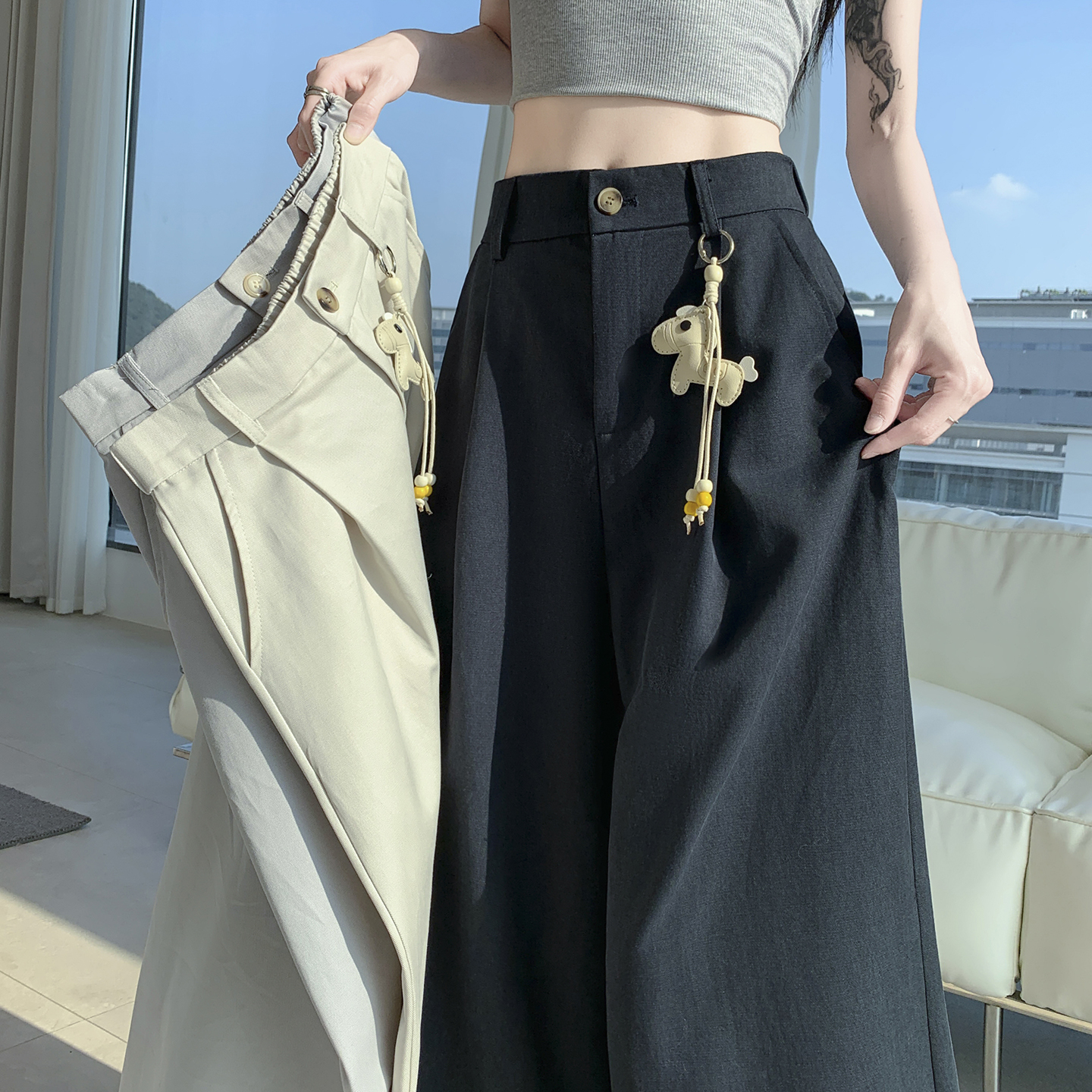 실사 얼음 실크 면 린넨 스트랩 정장 와이드 레깅스 바지 여름 하이웨이스트 슬림해 보이는 캐주얼 바닥 청소 스트레이트 야마모토 바지