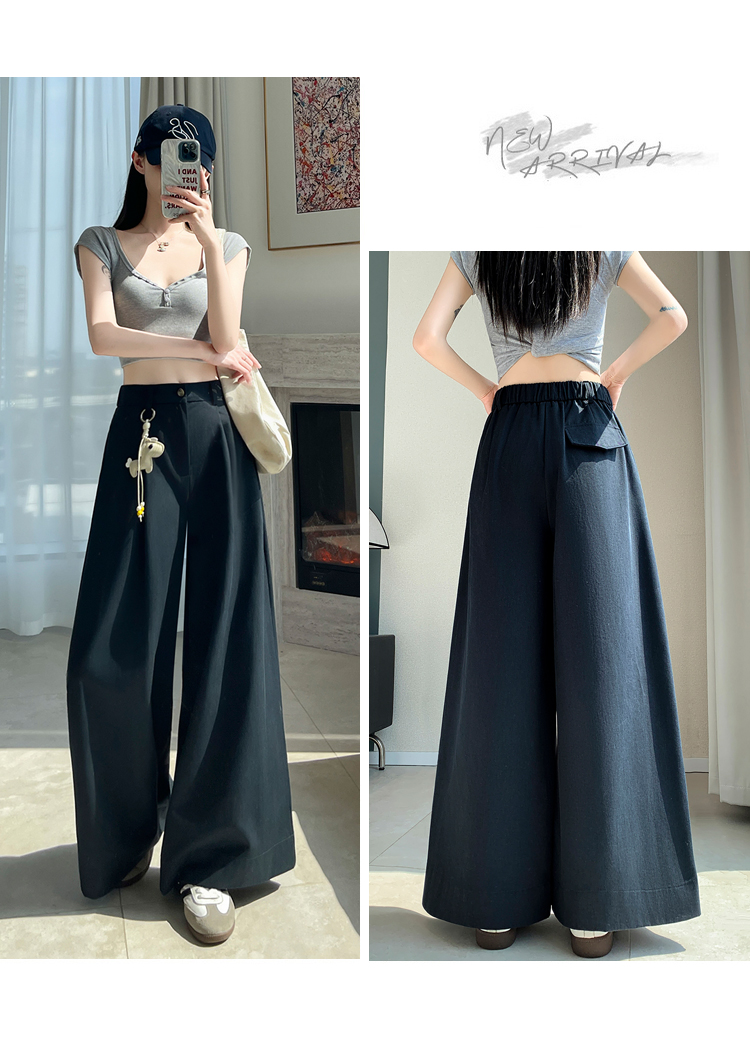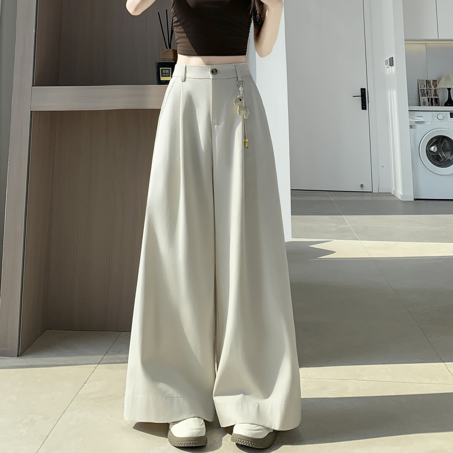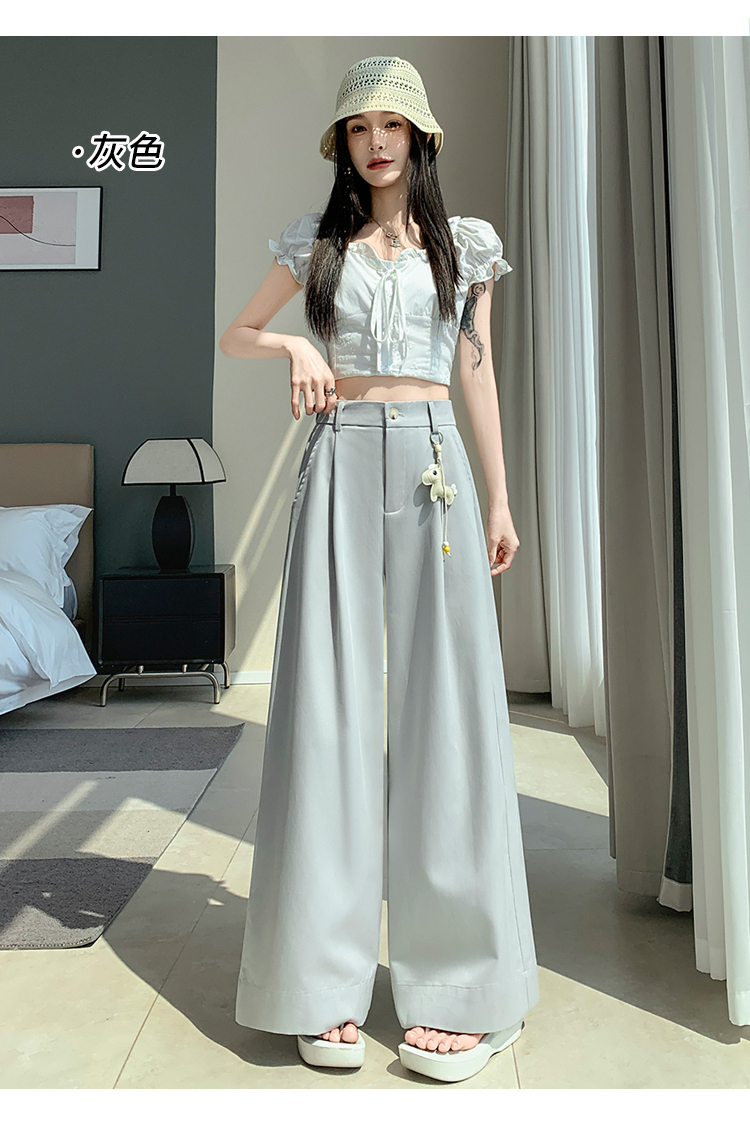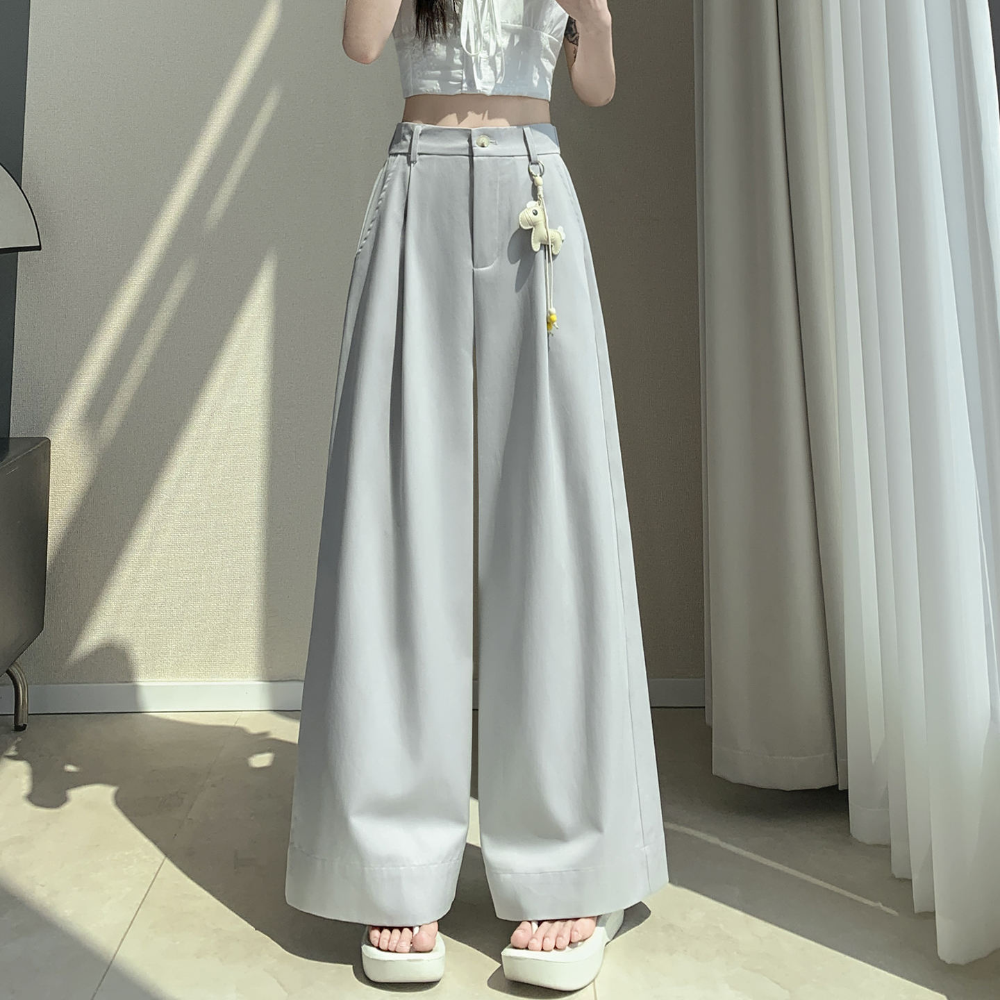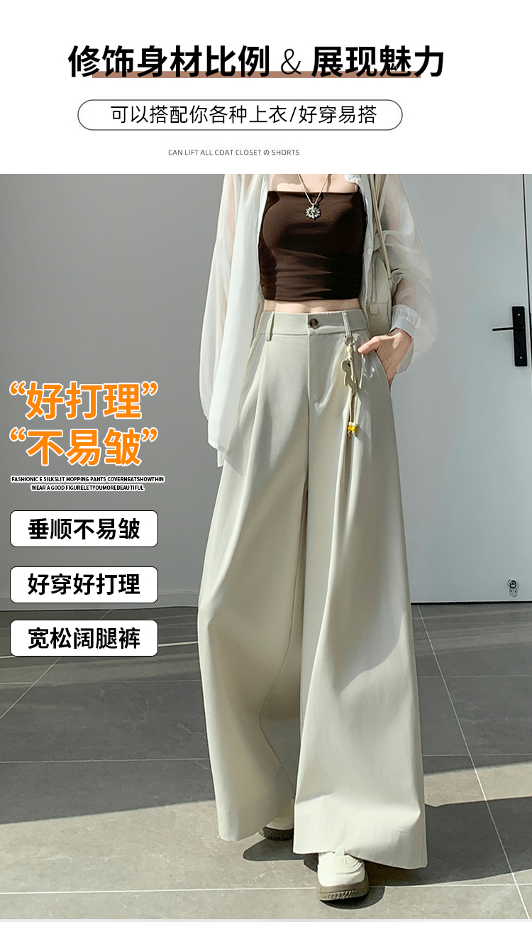실사 얼음 실크 정장 와이드 레깅스 바지 2026 여름 하이웨이스트 루즈핏 스트레이트 슬림해 보이는 도루 센스 캐주얼 바닥 청소 바지