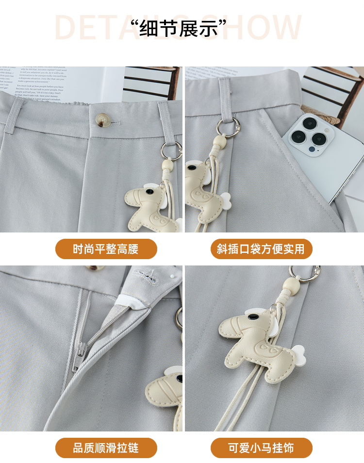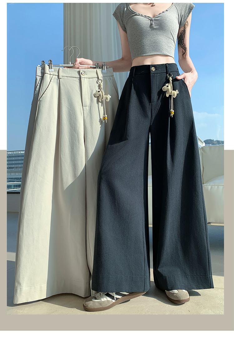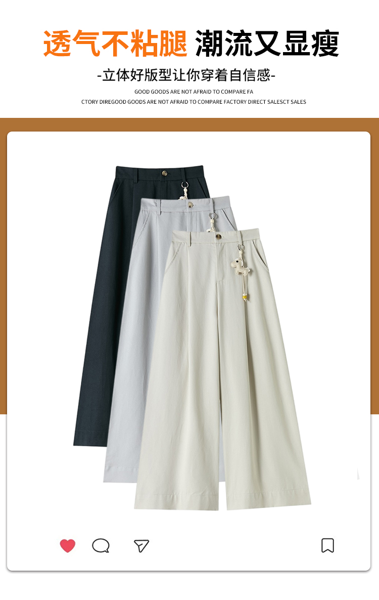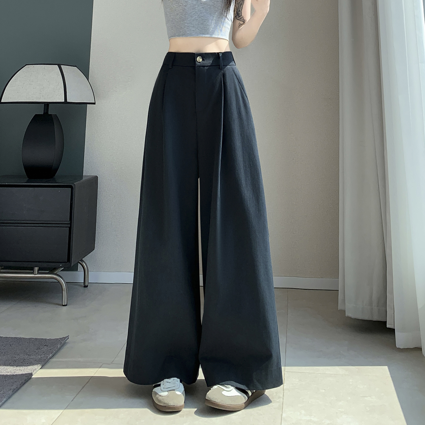 실사 워시 물 면 모통이 칼 바지 여성 2026 여름 새로운 느긋한 하이웨이스트 슬림해 보이는 스트레이트 캐주얼 정장 와이드 레그 팬츠
