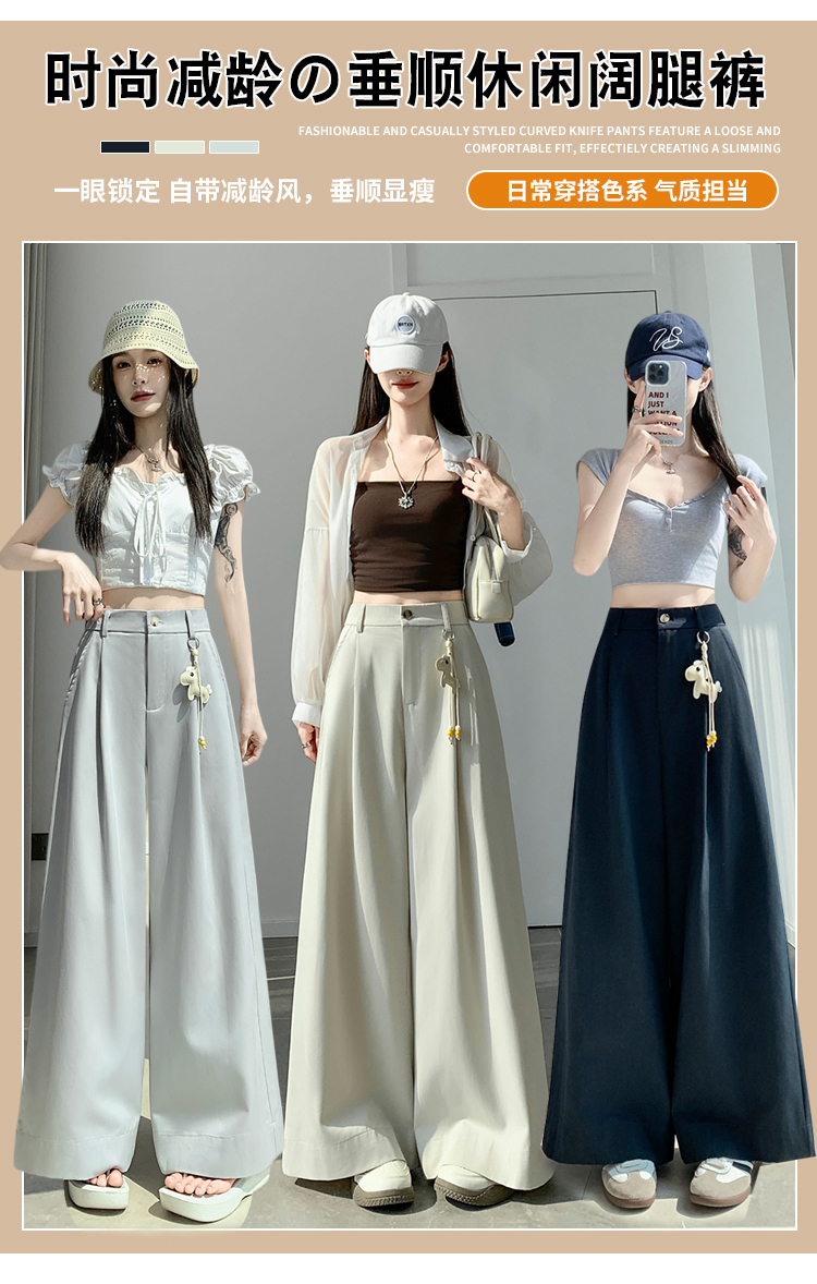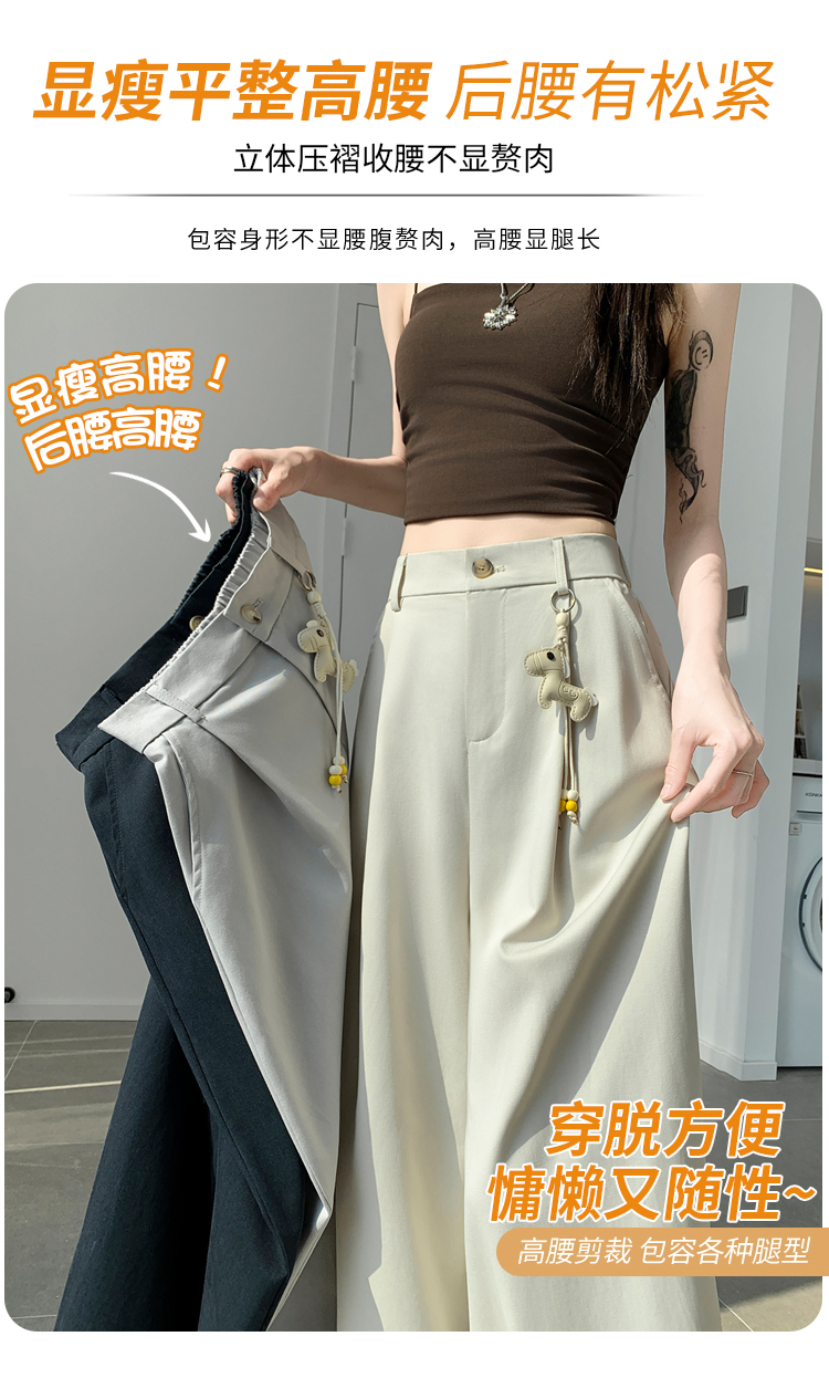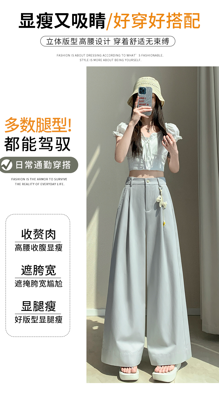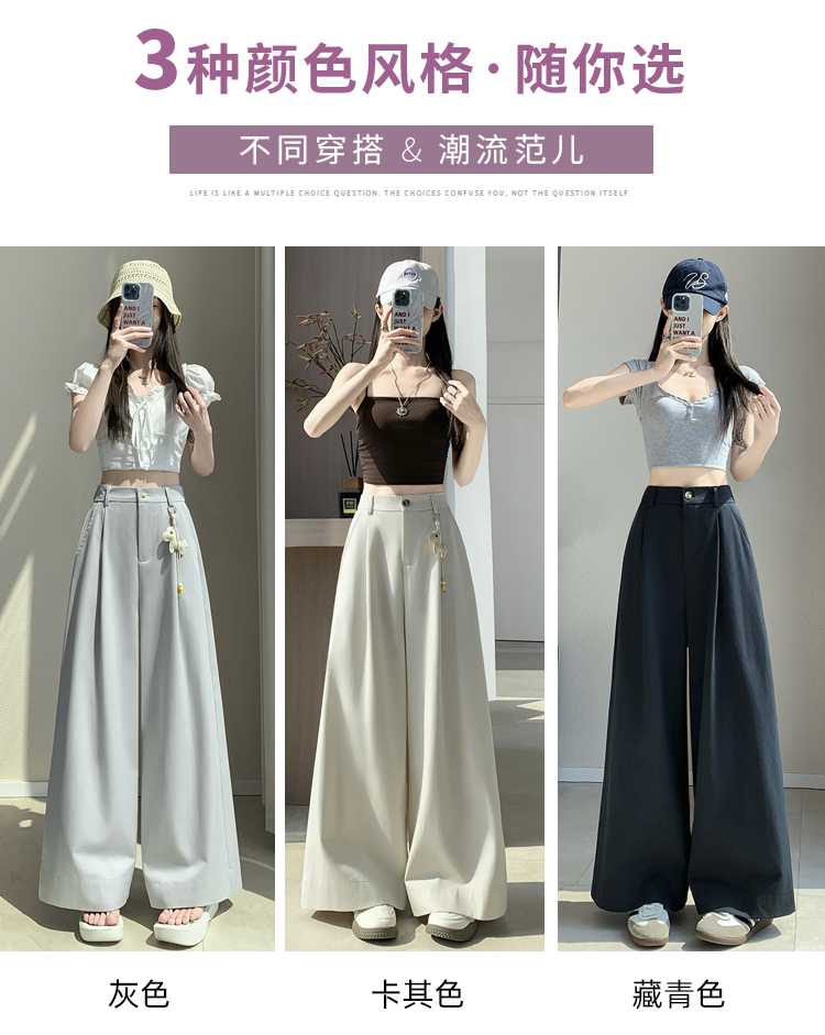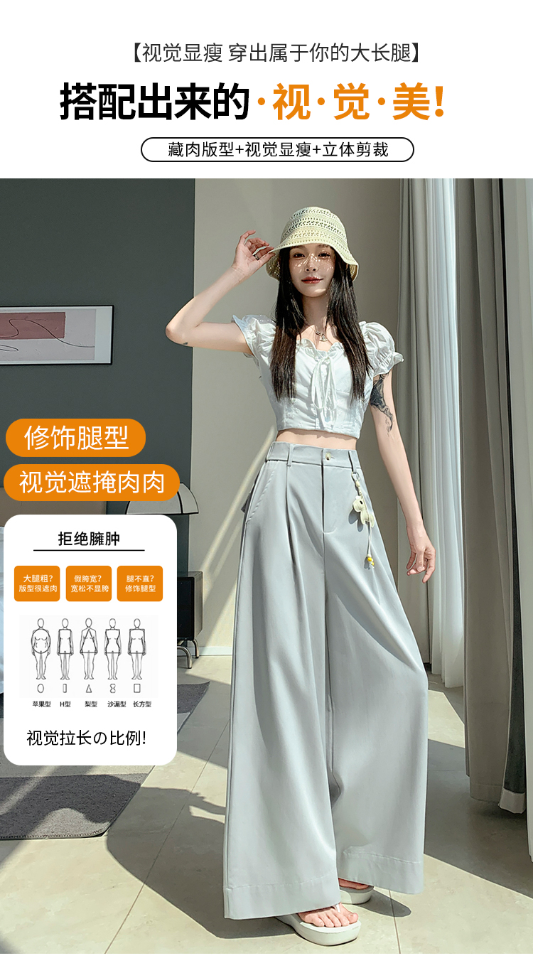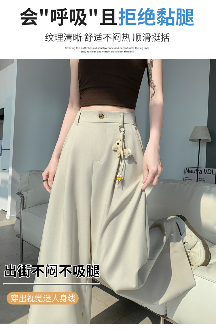 실사 얼음 실크 정장 와이드 레깅스 바지 2026 여름 디자인 센스 하이웨이스트 슬림해 보이는 도루 센스 다용도 캐주얼 스트레이트 팬츠