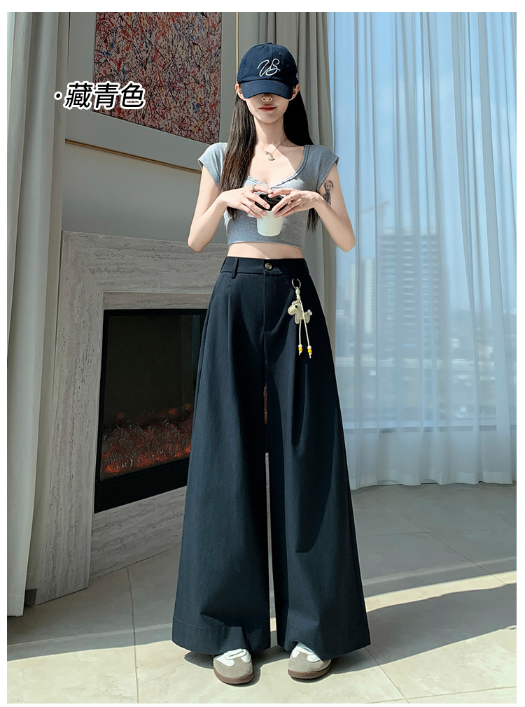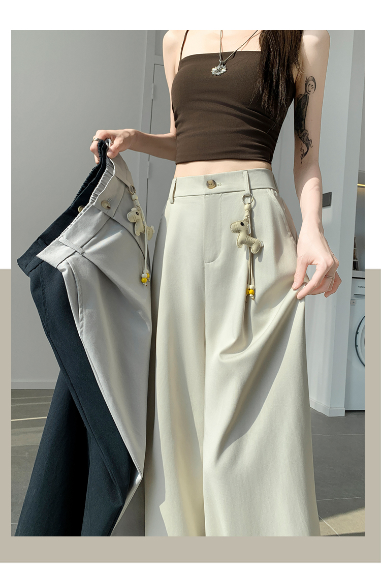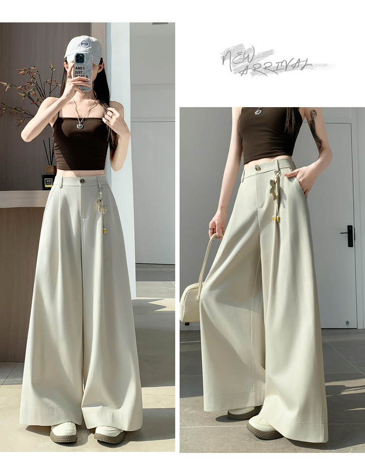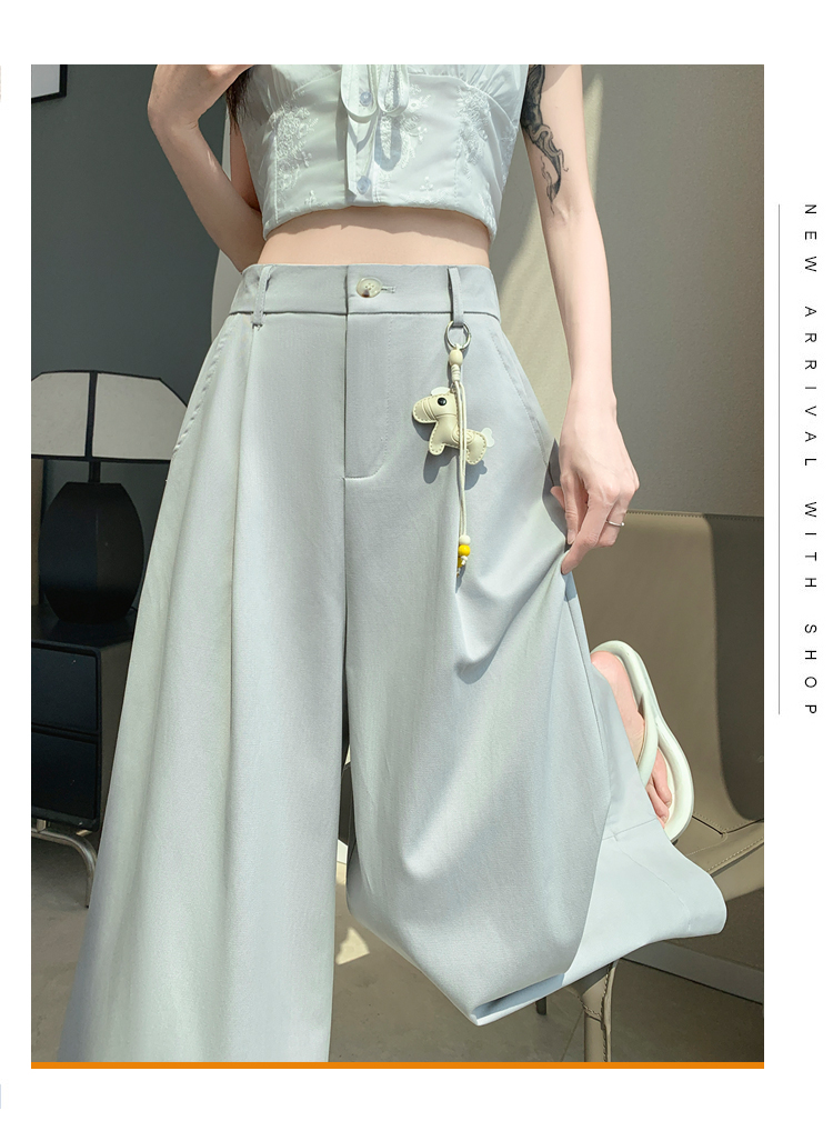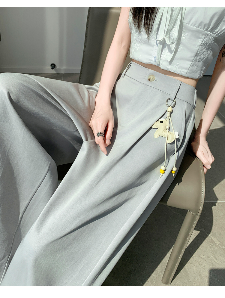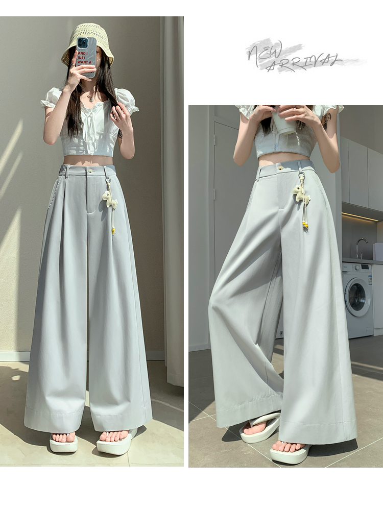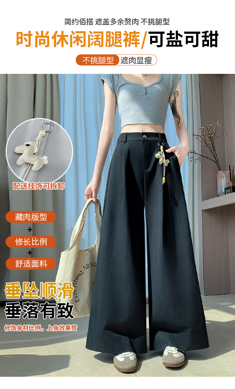 실사 얼음 실크 정장 와이드 레깅스 바지 2026 여름 디자인 센스 하이웨이스트 슬림해 보이는 도루 센스 다용도 캐주얼 스트레이트 팬츠