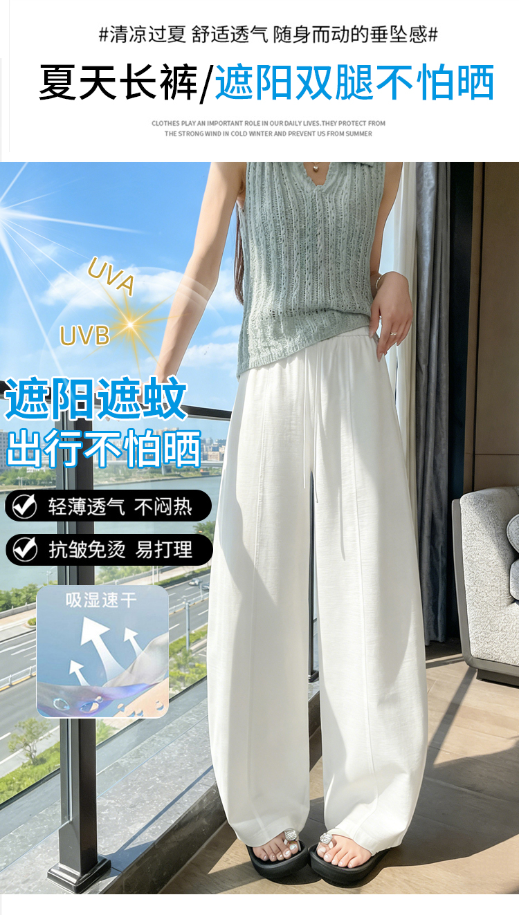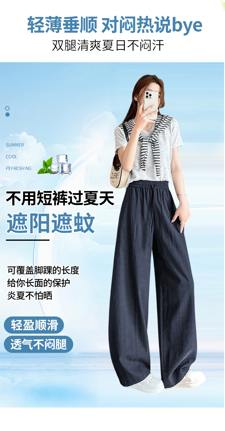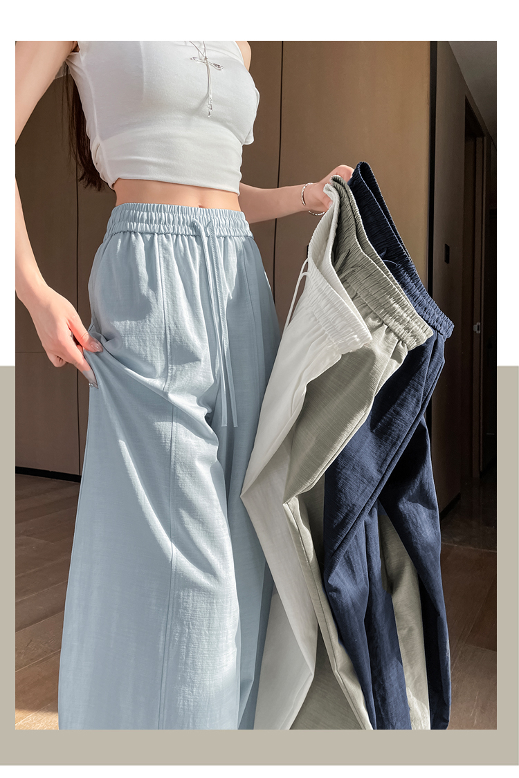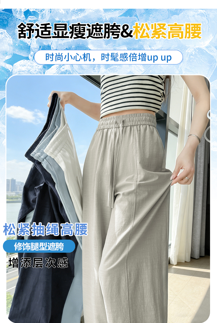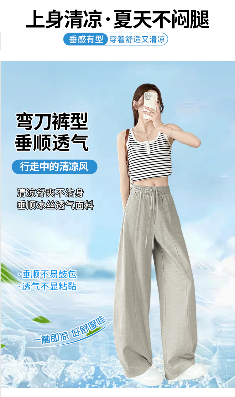 실사 얼음 실크 정장 와이드 레깅스 바지 2026 여름 하이웨이스트 루즈핏 스트레이트 슬림해 보이는 도루 센스 캐주얼 바닥 청소 바지