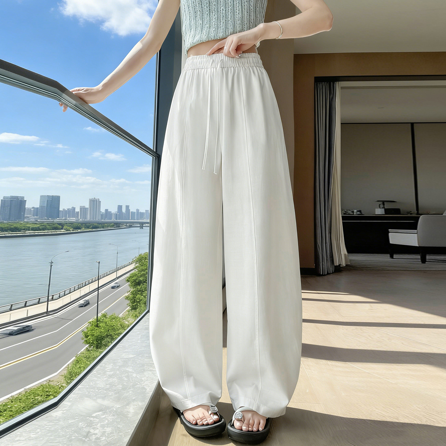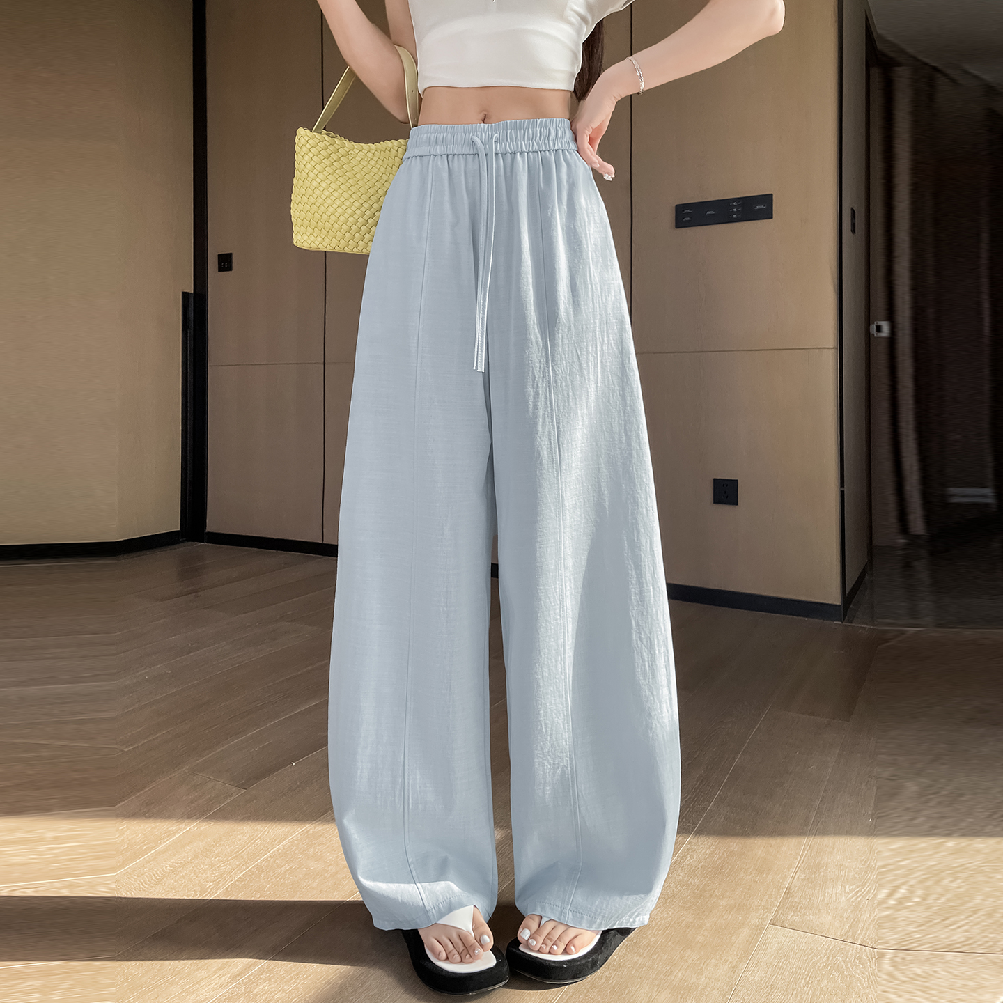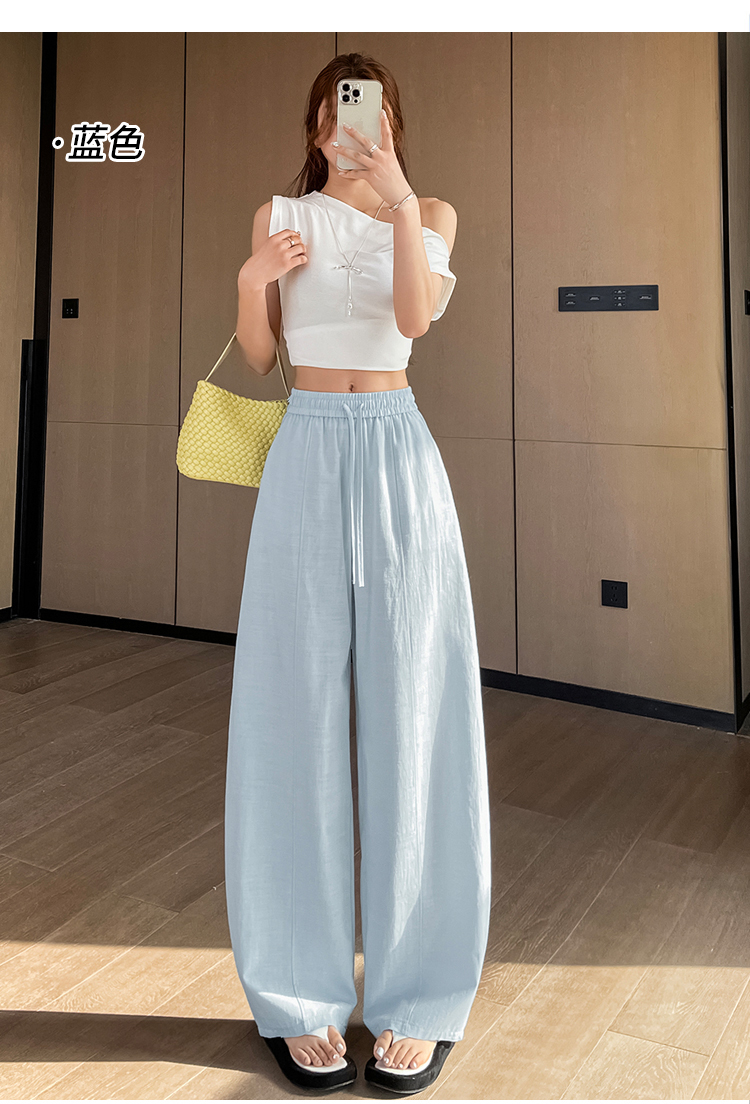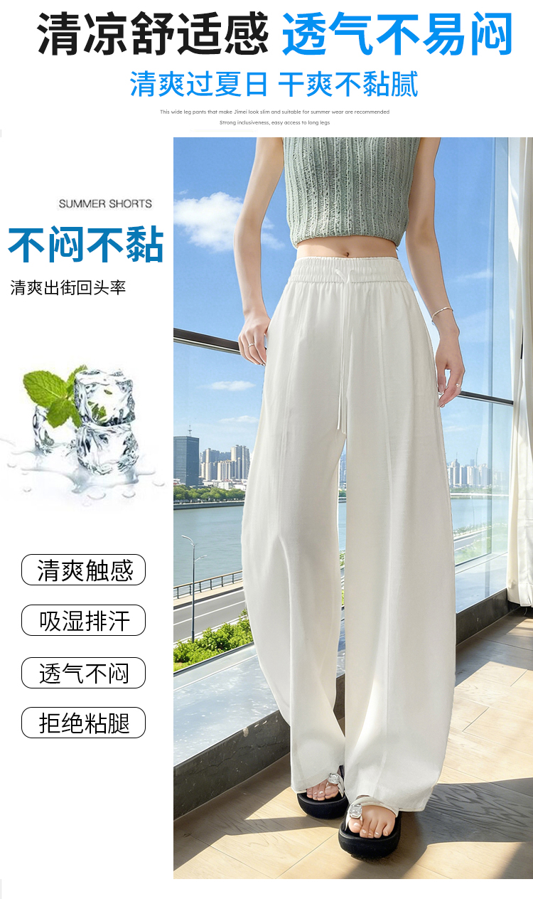 실사 얼음 실크 정장 와이드 레깅스 바지 2026 여름 하이웨이스트 루즈핏 스트레이트 슬림해 보이는 도루 센스 캐주얼 바닥 청소 바지