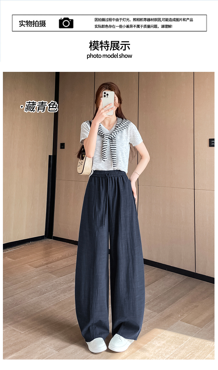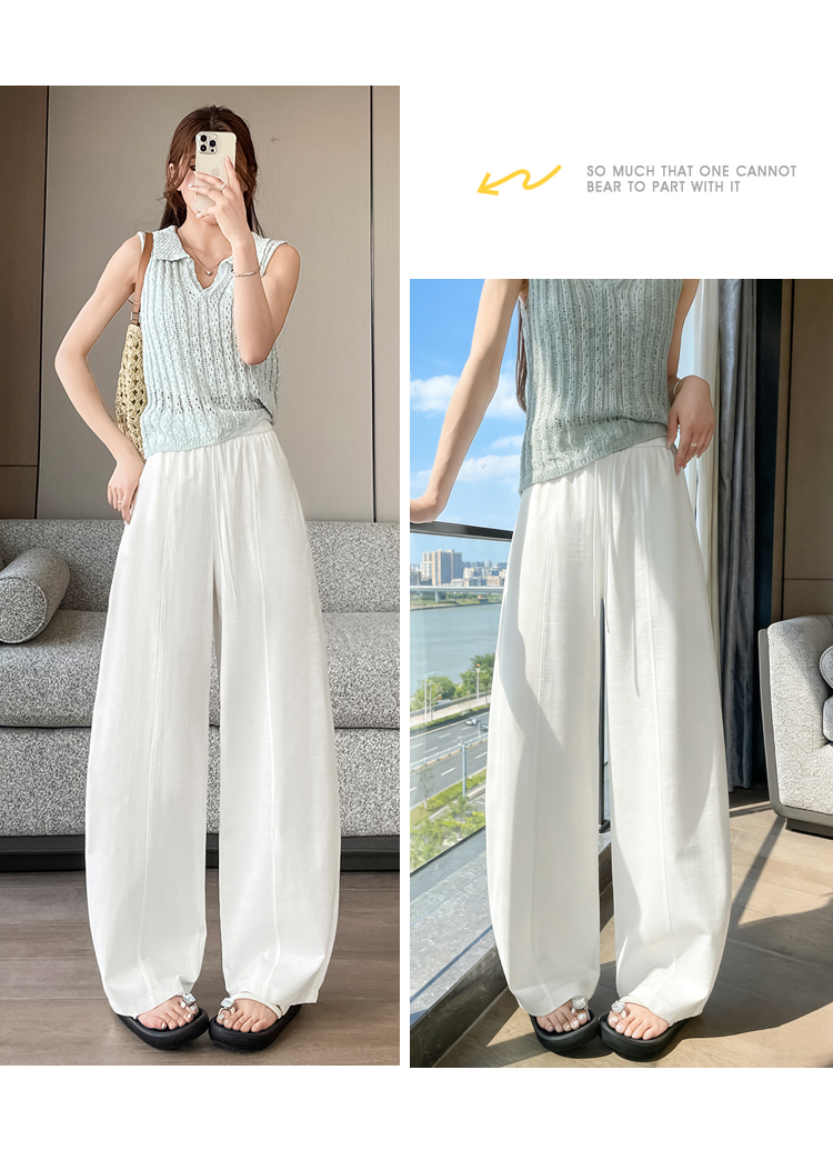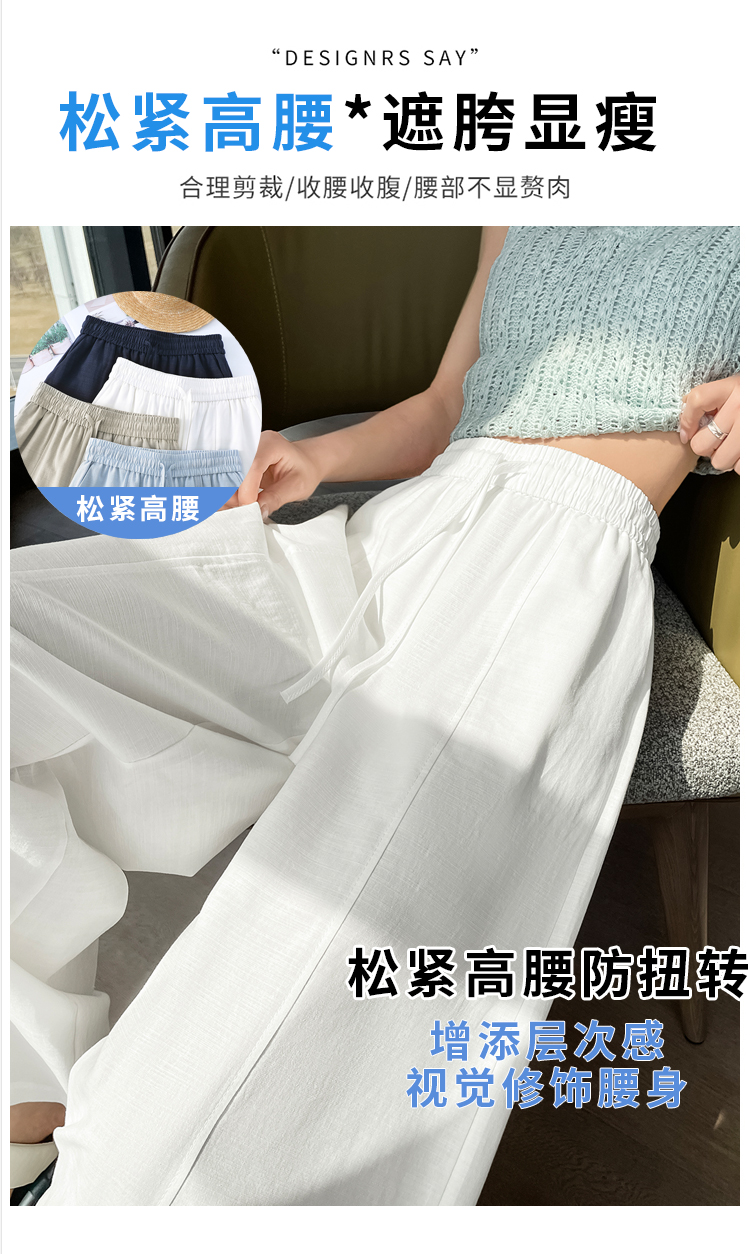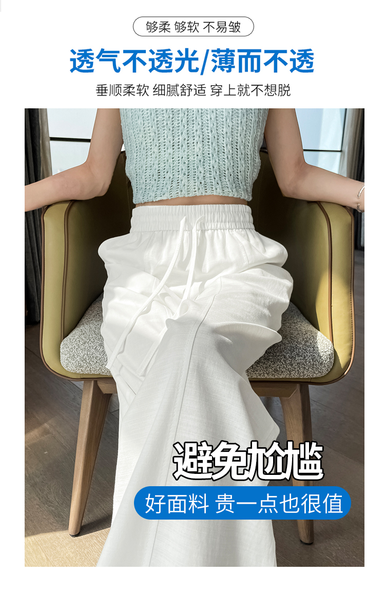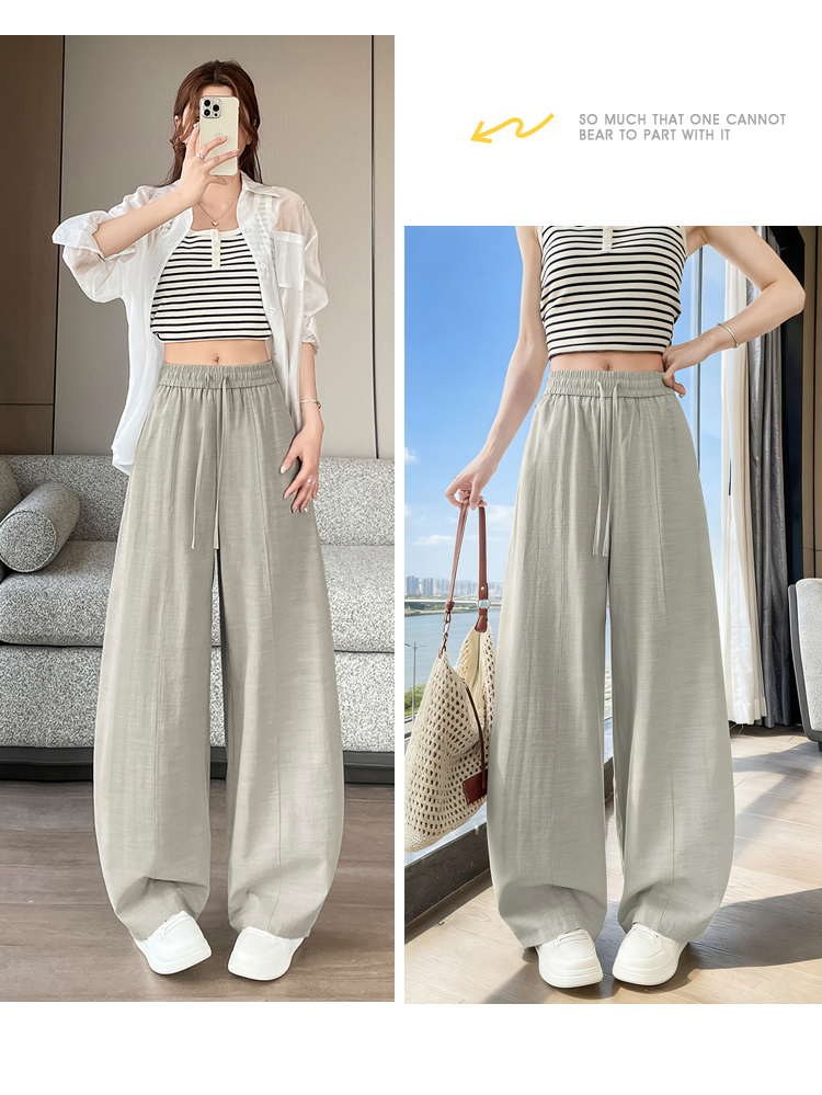 실사 얼음 실크 면 린넨 스트랩 정장 와이드 레깅스 바지 여름 하이웨이스트 슬림해 보이는 캐주얼 바닥 청소 스트레이트 야마모토 바지