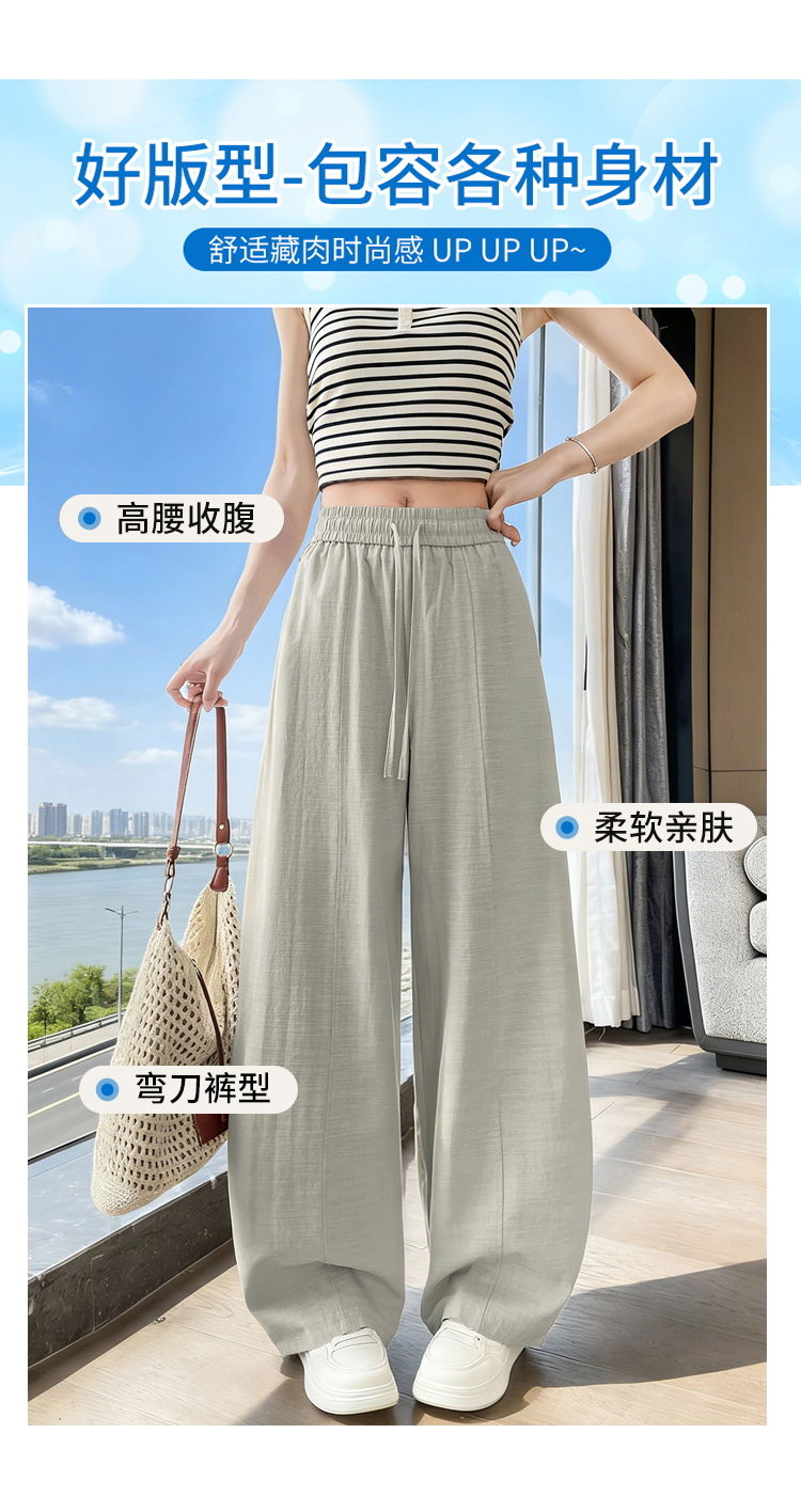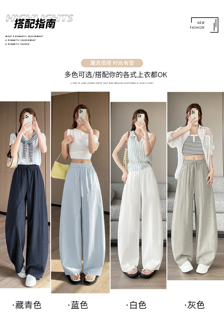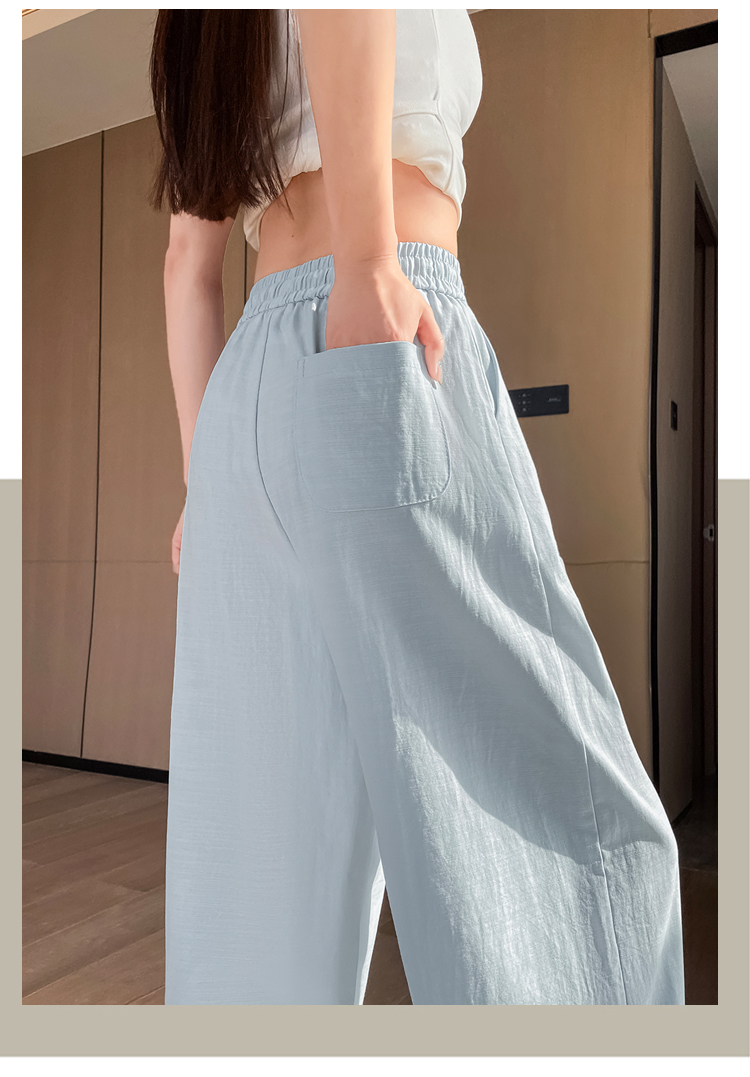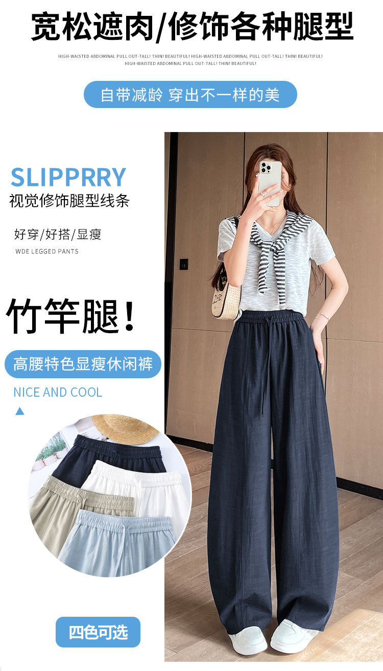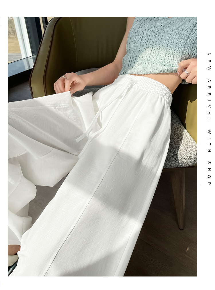 실사 얼음 실크 면 린넨 스트랩 정장 와이드 레깅스 바지 여름 하이웨이스트 슬림해 보이는 캐주얼 바닥 청소 스트레이트 야마모토 바지