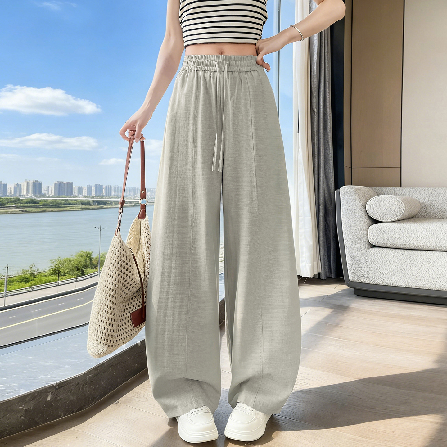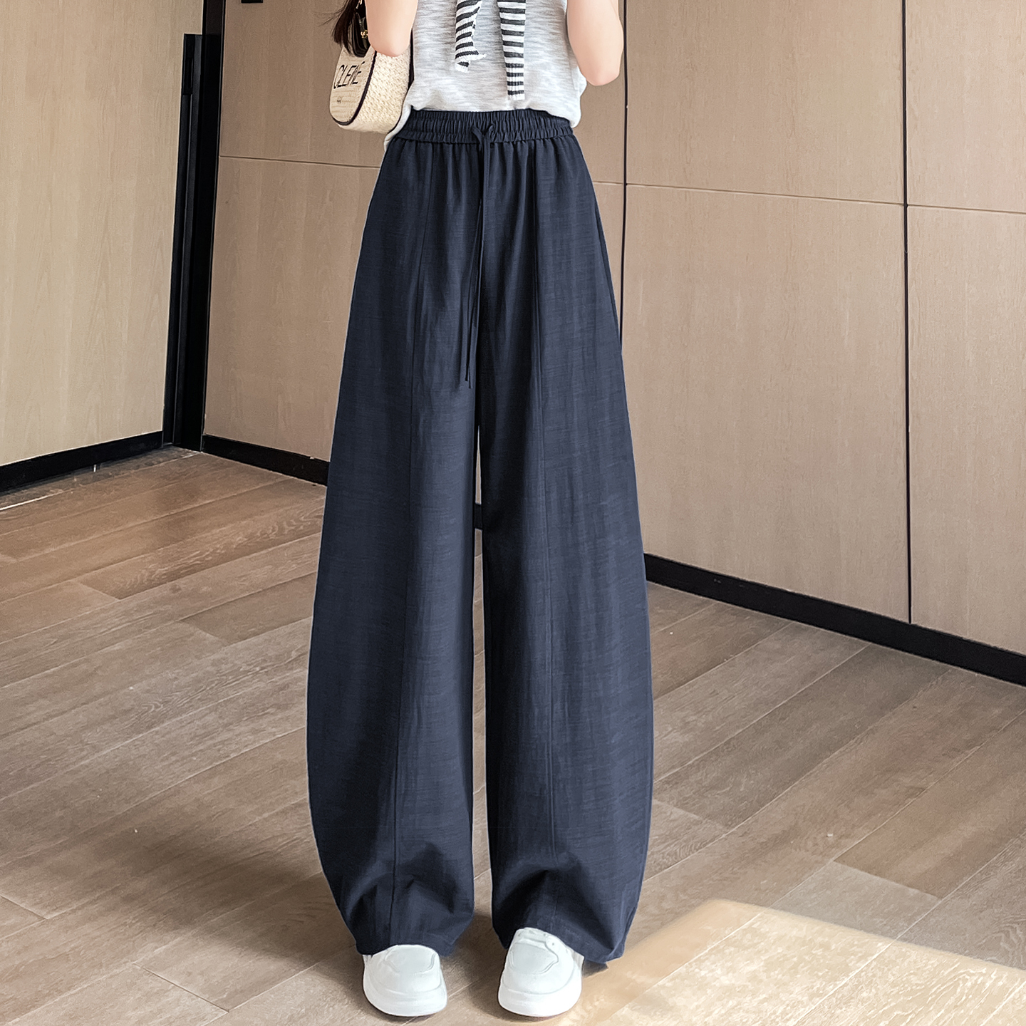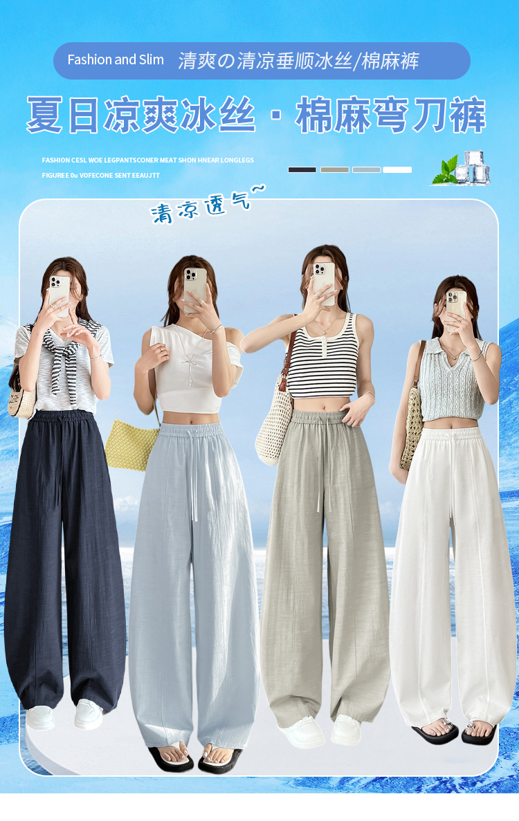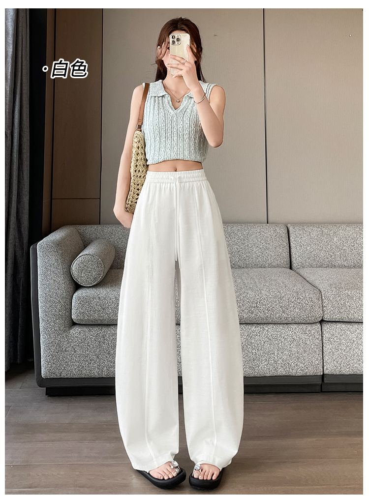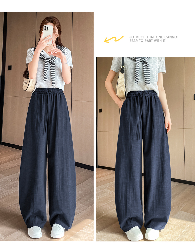 실사 얼음 실크 면 린넨 스트랩 정장 와이드 레깅스 바지 여름 하이웨이스트 슬림해 보이는 캐주얼 바닥 청소 스트레이트 야마모토 바지