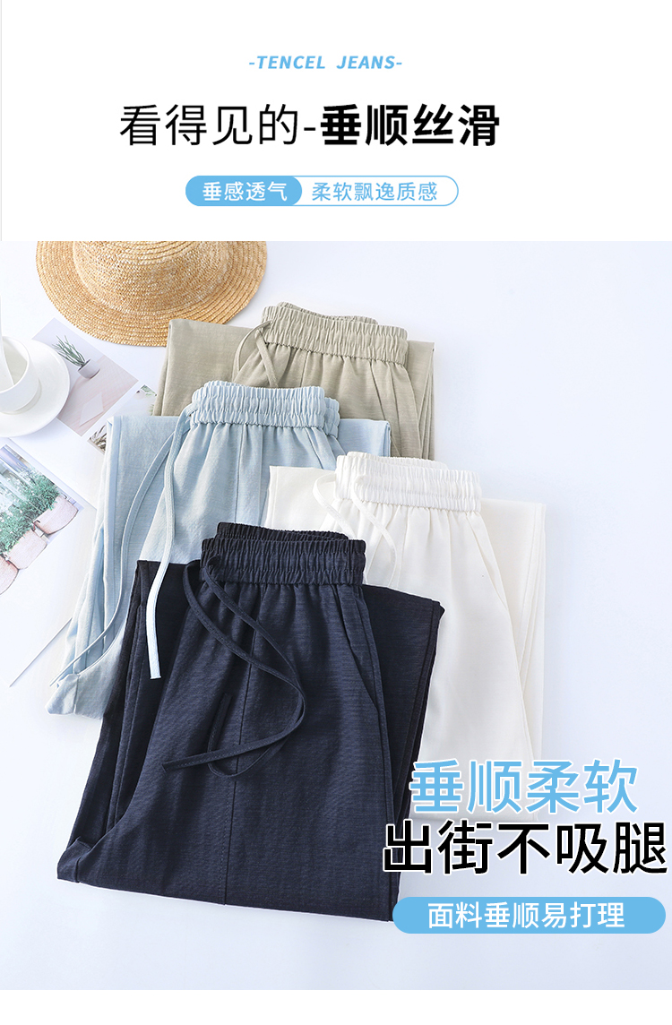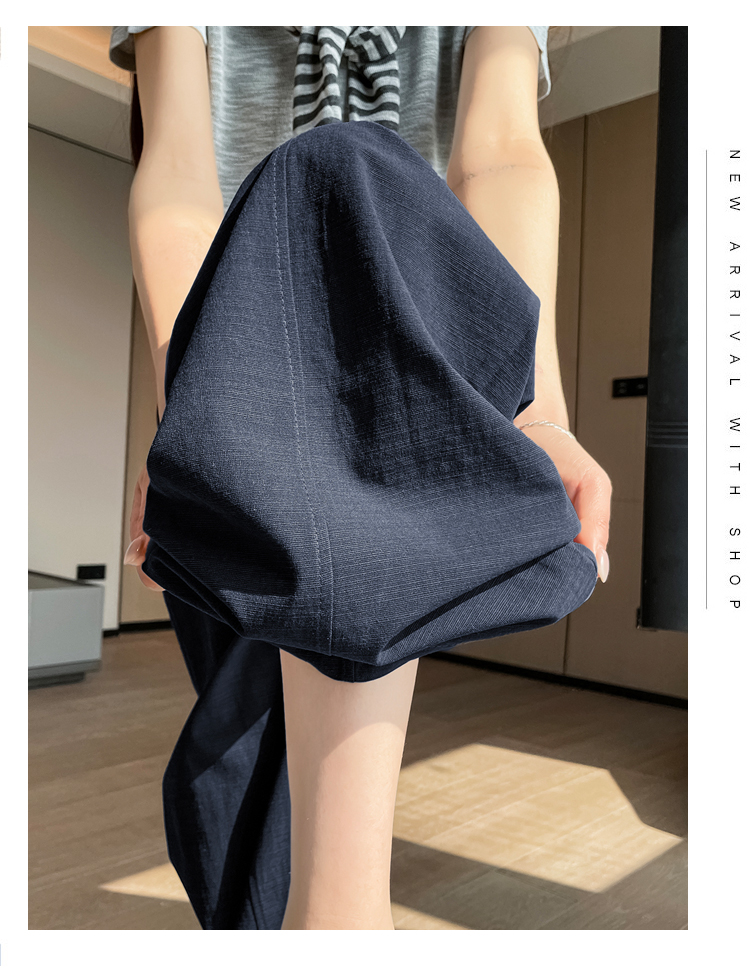 실사 워시 물 면 모통이 칼 바지 여성 2026 여름 새로운 느긋한 하이웨이스트 슬림해 보이는 스트레이트 캐주얼 정장 와이드 레그 팬츠