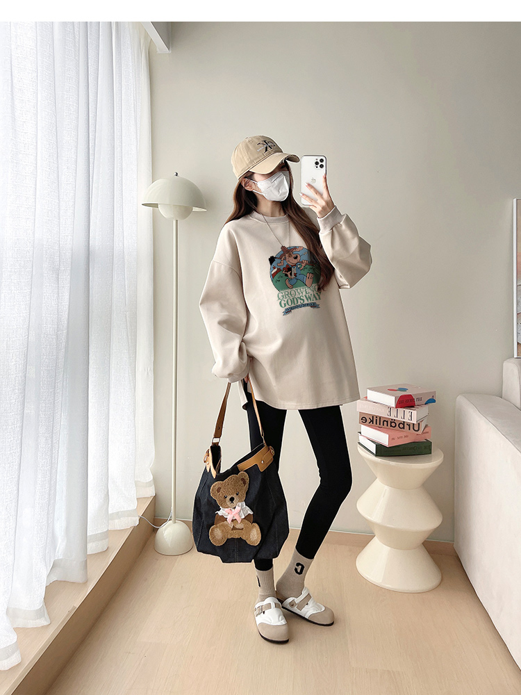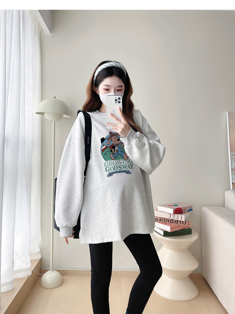 강아지 출산 착용 후드티 봄 가을 맨위 루즈핏 캐주얼 외국 가스 연령 감소 중간 길이 긴팔