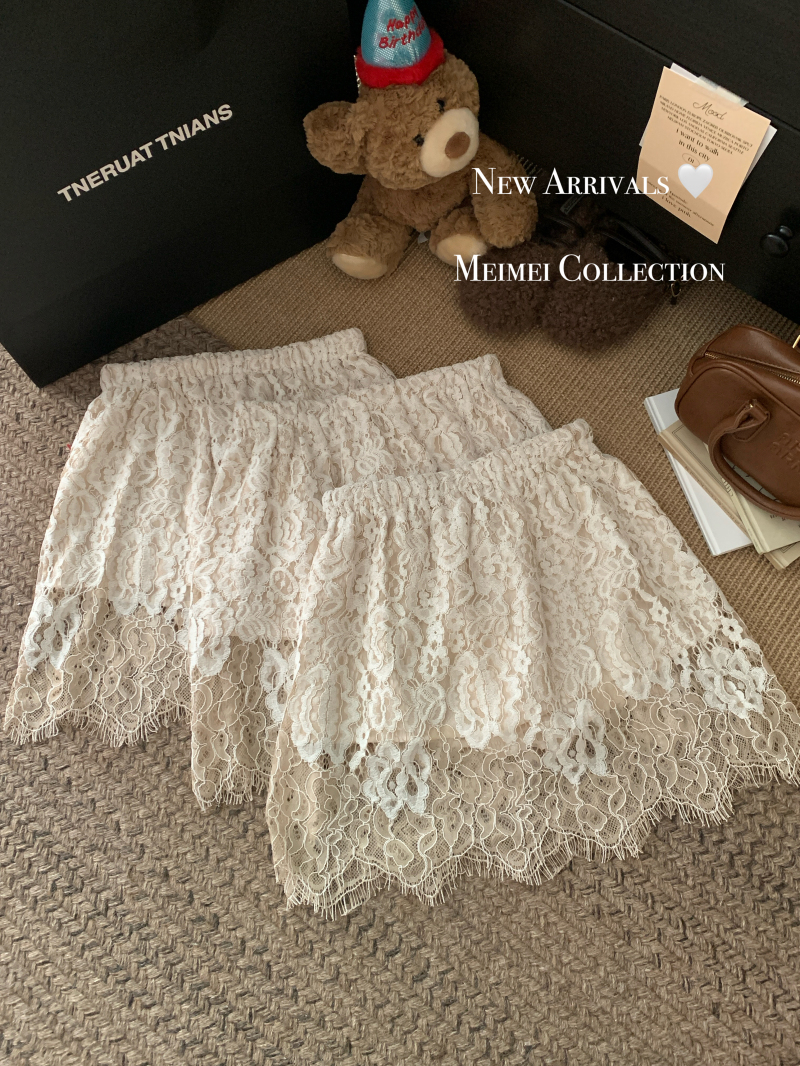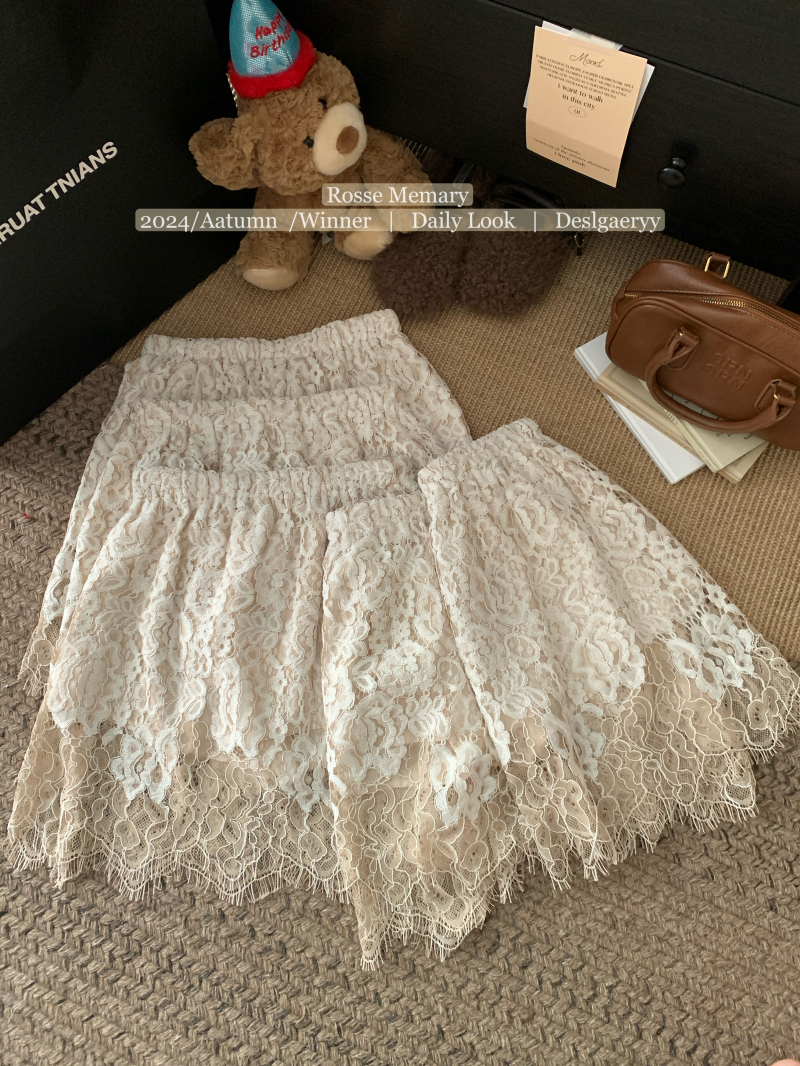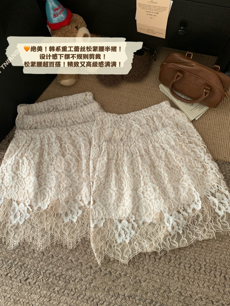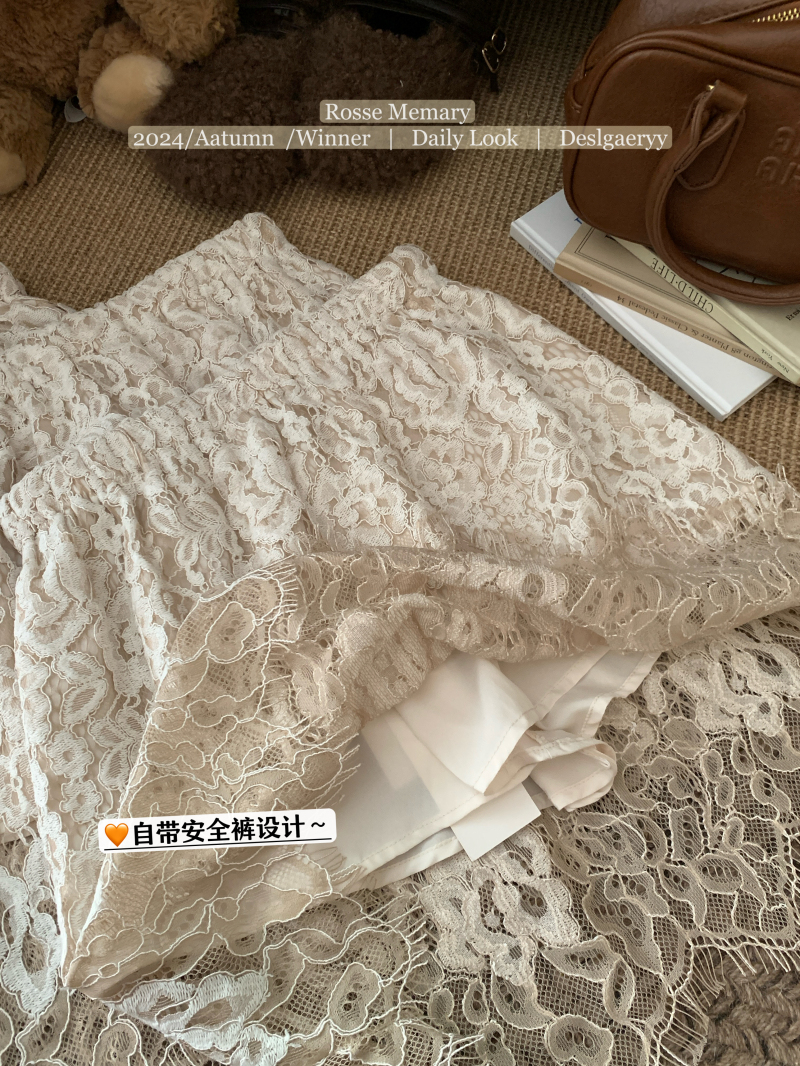 실사 프랑스식 홀로우 아웃 레이스 자수 2026 폭발 레이스업 높음 비율 퍼프 미니 스커트