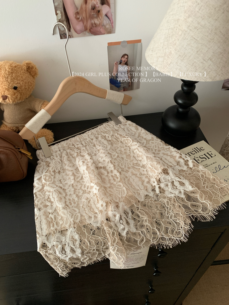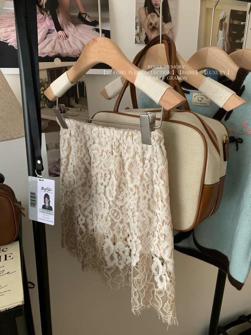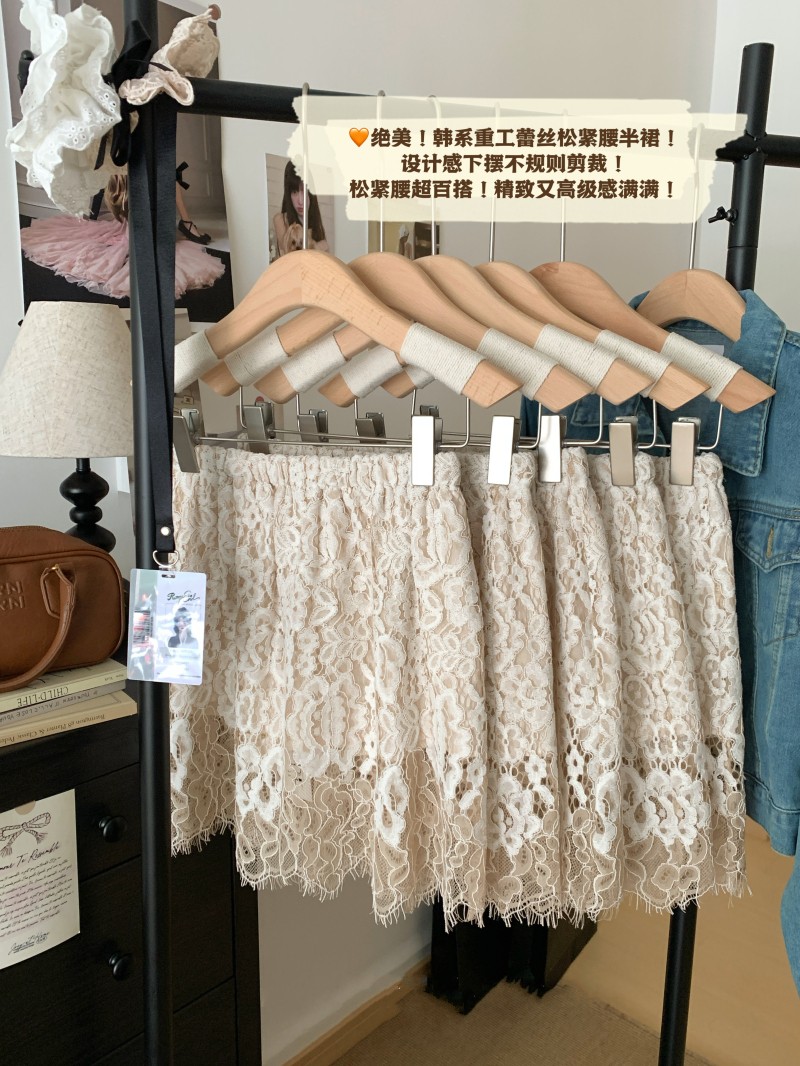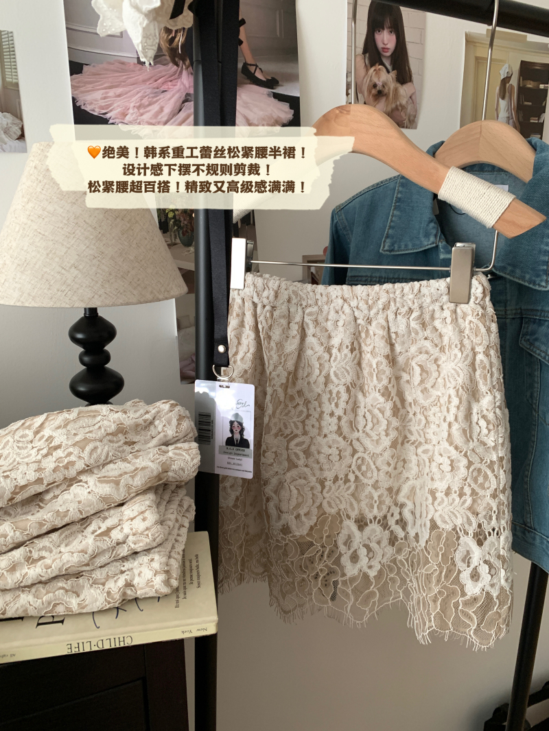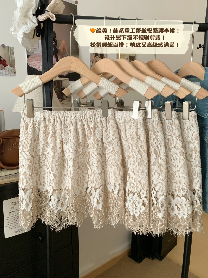 실사 한 부서 스택 착용 방귀 커튼 레이스 치마 2026 허리밴드 망사 반신 스커트 표지 엉덩이 가짜 밑단 미니 스커트