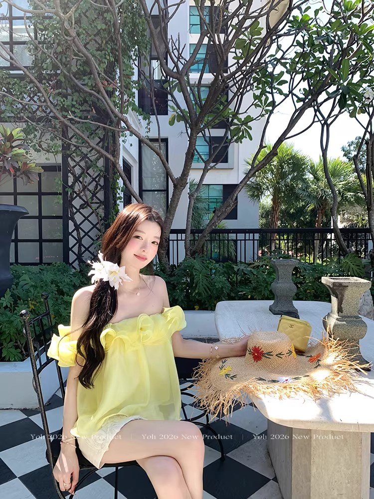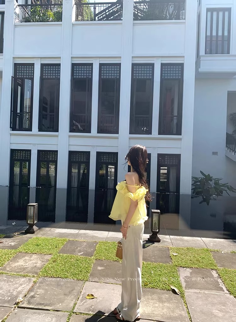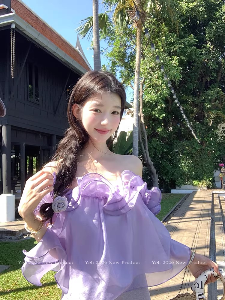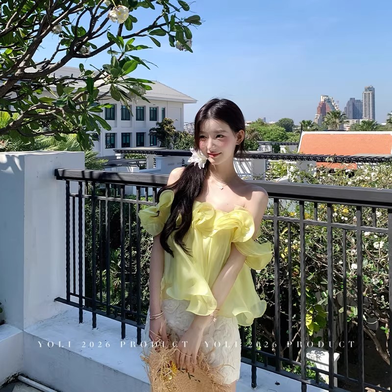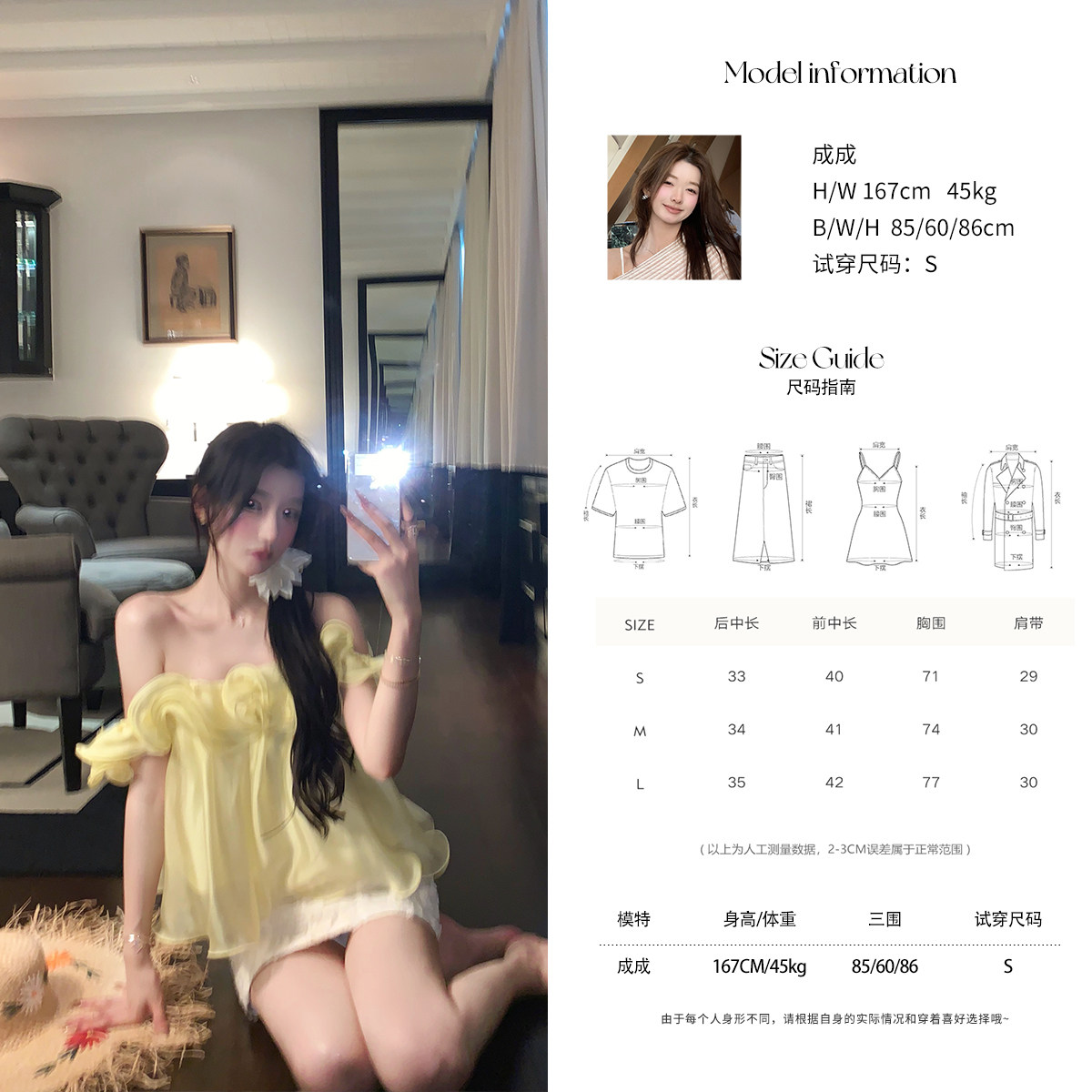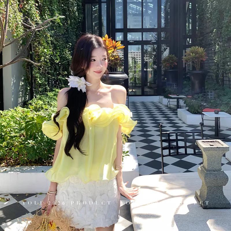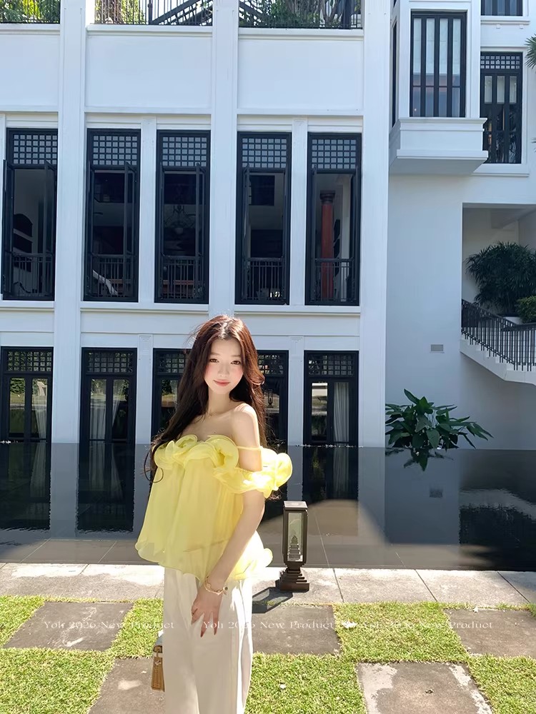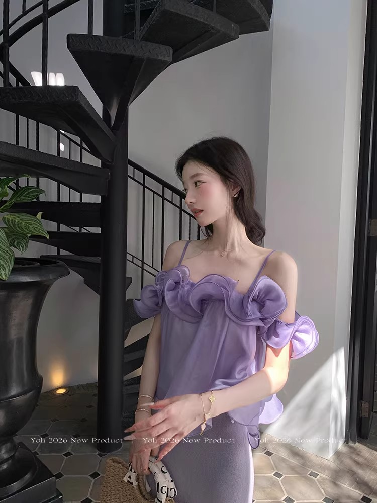 linoneonesoft 부드러운 빛 주간 실크 아세트산 아마 다중 레이어 프릴 단역학의 어깨 꽃 맨위 작은 셔츠