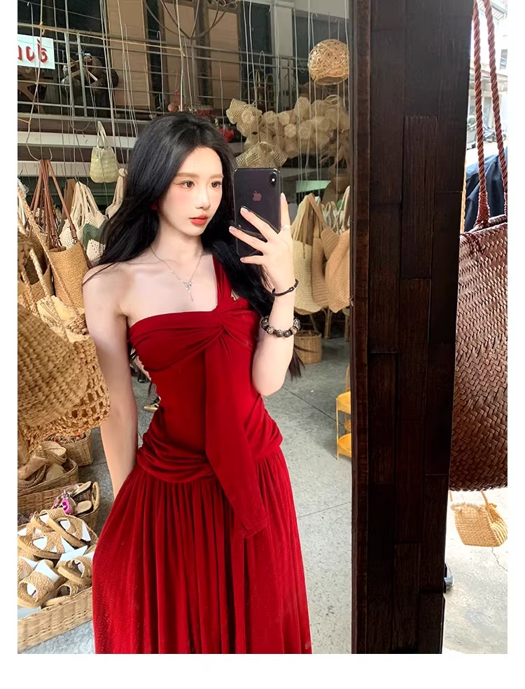 있음 후안 youwe2026 자이언트 잘 생긴 여성 드레스 새로운 여름 새로운 중식 민소매 화이트 조끼 스커트 롱 스커트