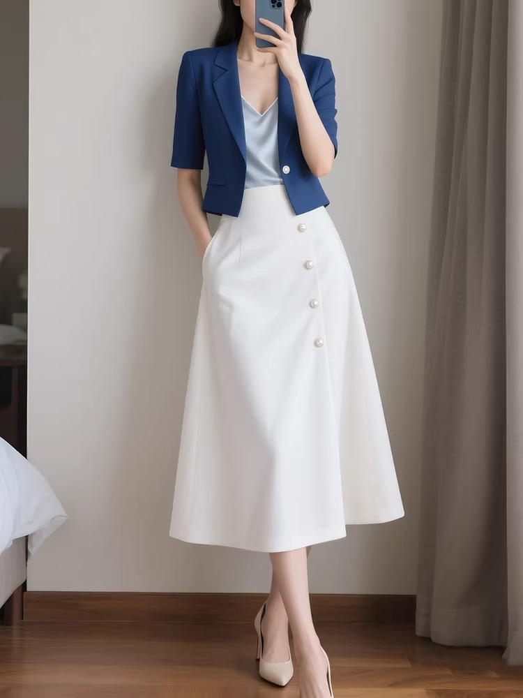 2026 새로운 여성 의류 익스트림 제인 바람 출퇴근 해군 우산 치마 한 마디 반신 스커트