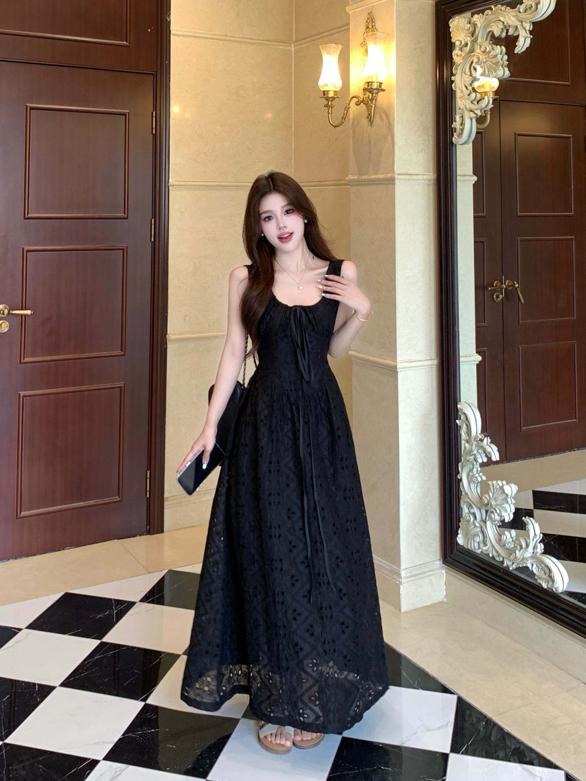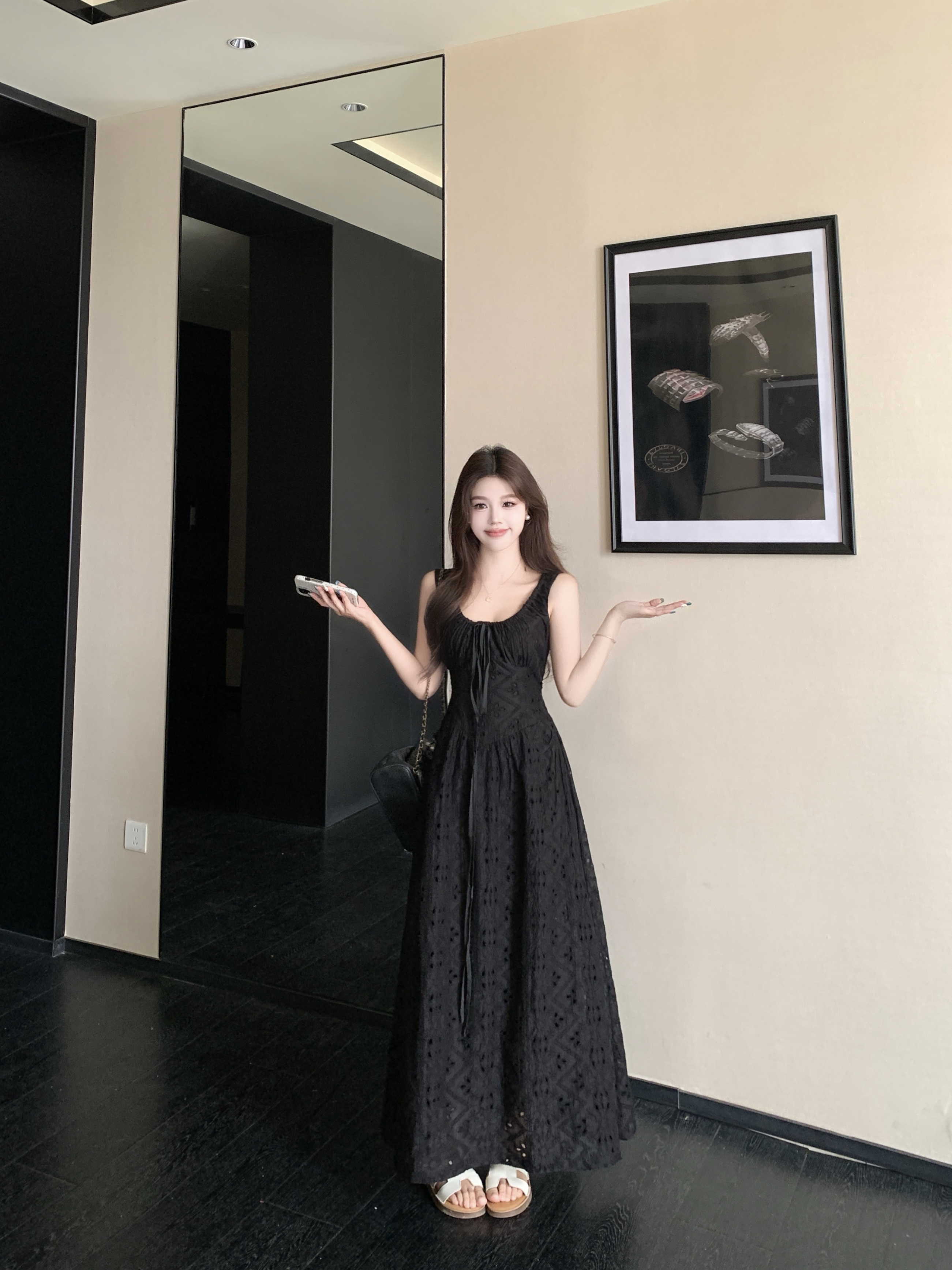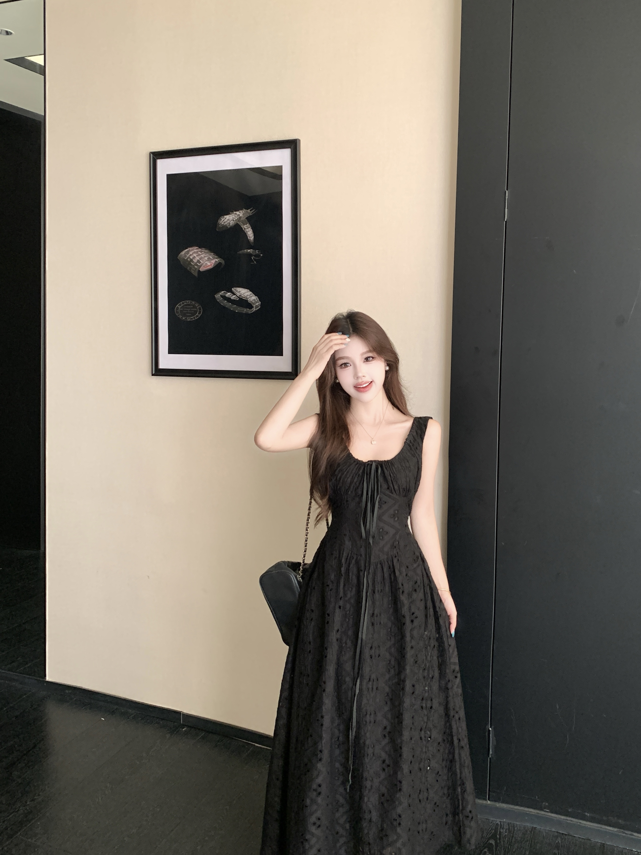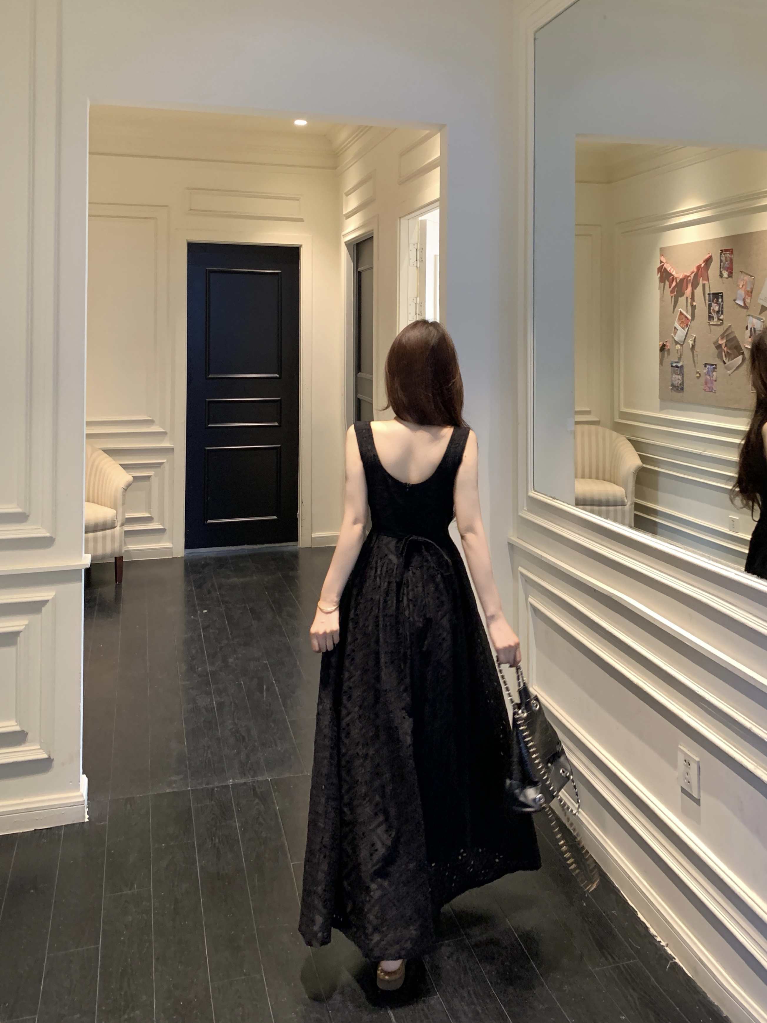 빅 사이즈 원더풀 춤 작은 키 2026 여름 여성 의류 품격 슬림해 보이는 패션 디자인 센스 롱 코트 검정색 드레스