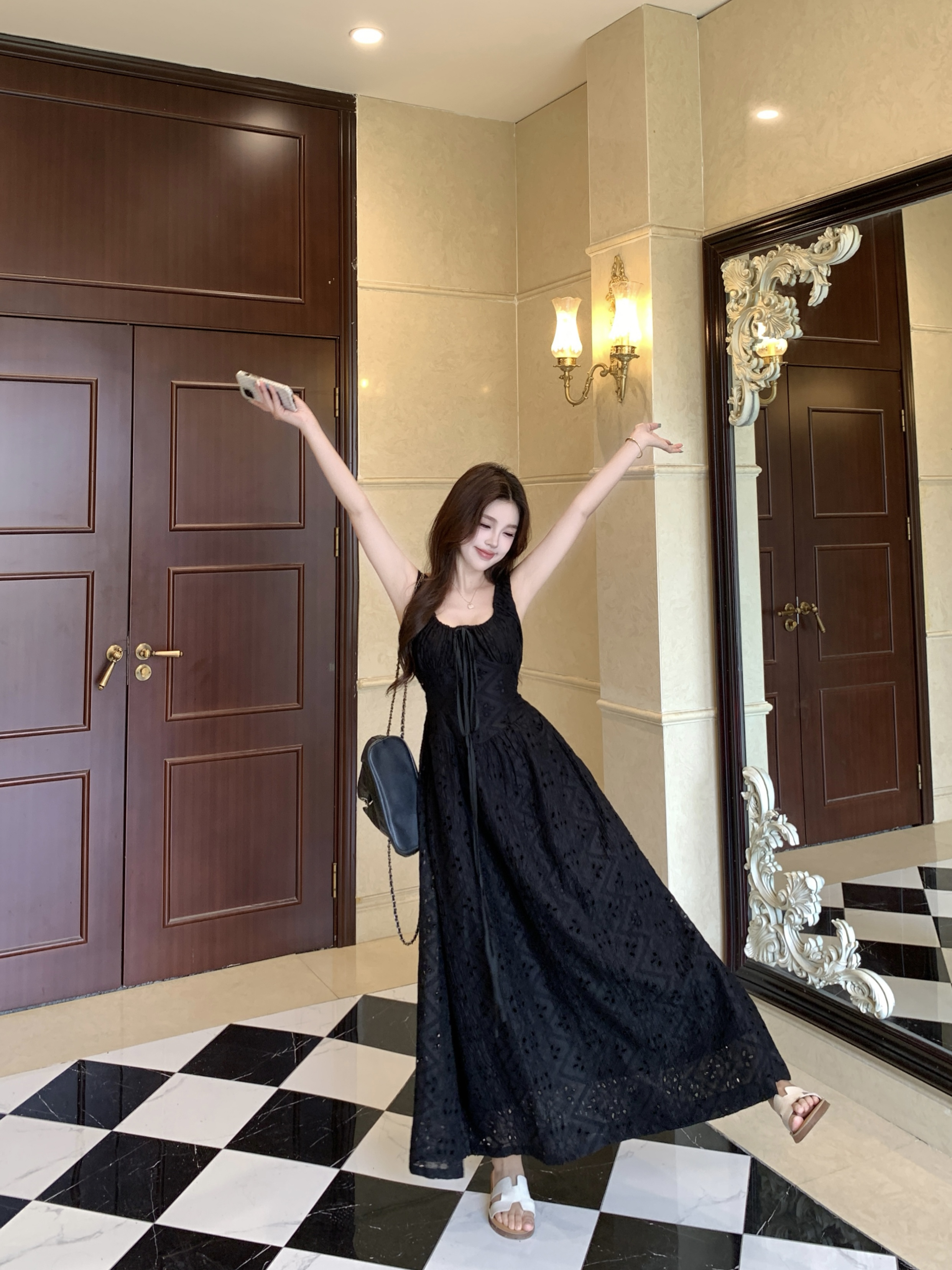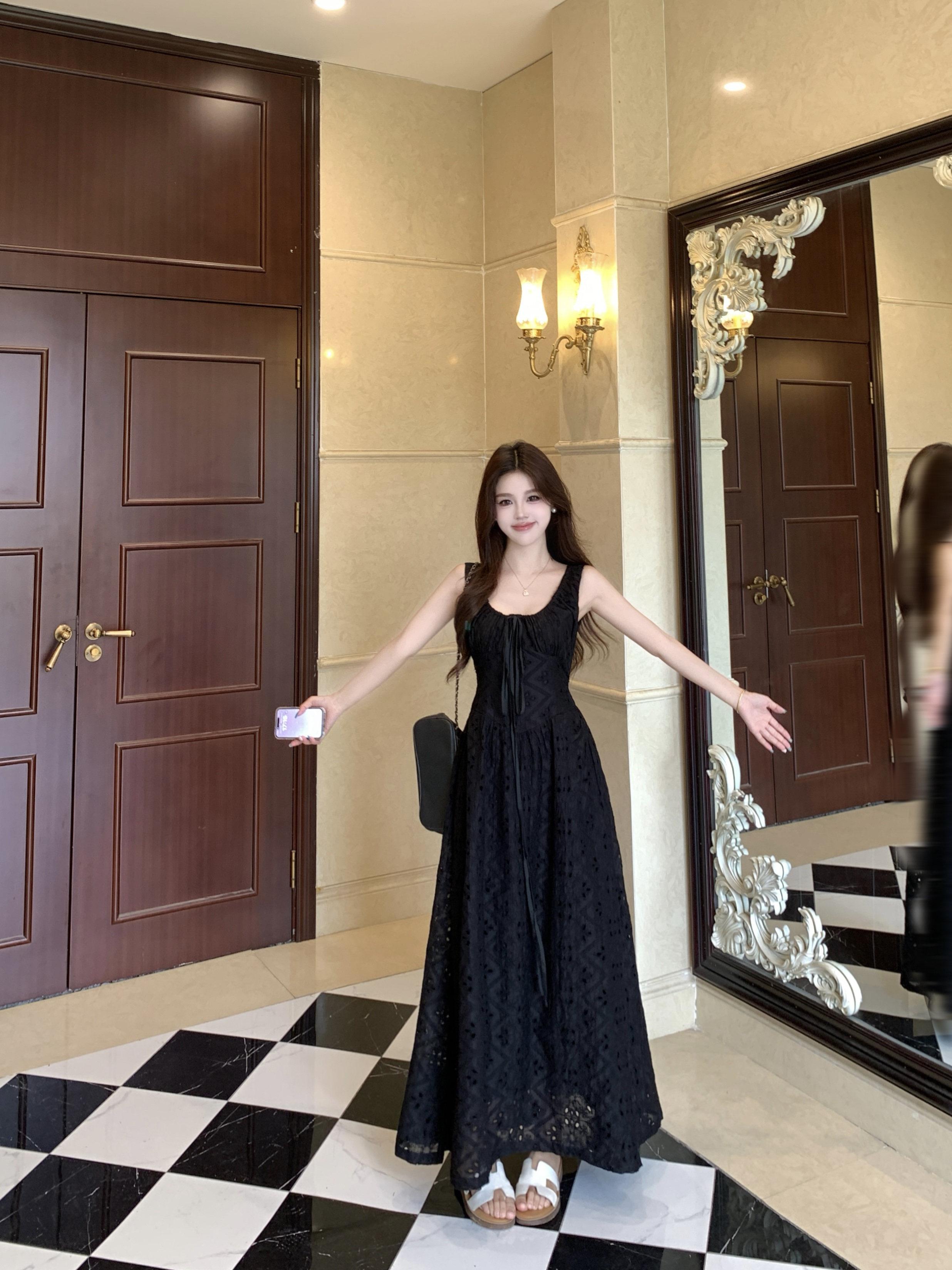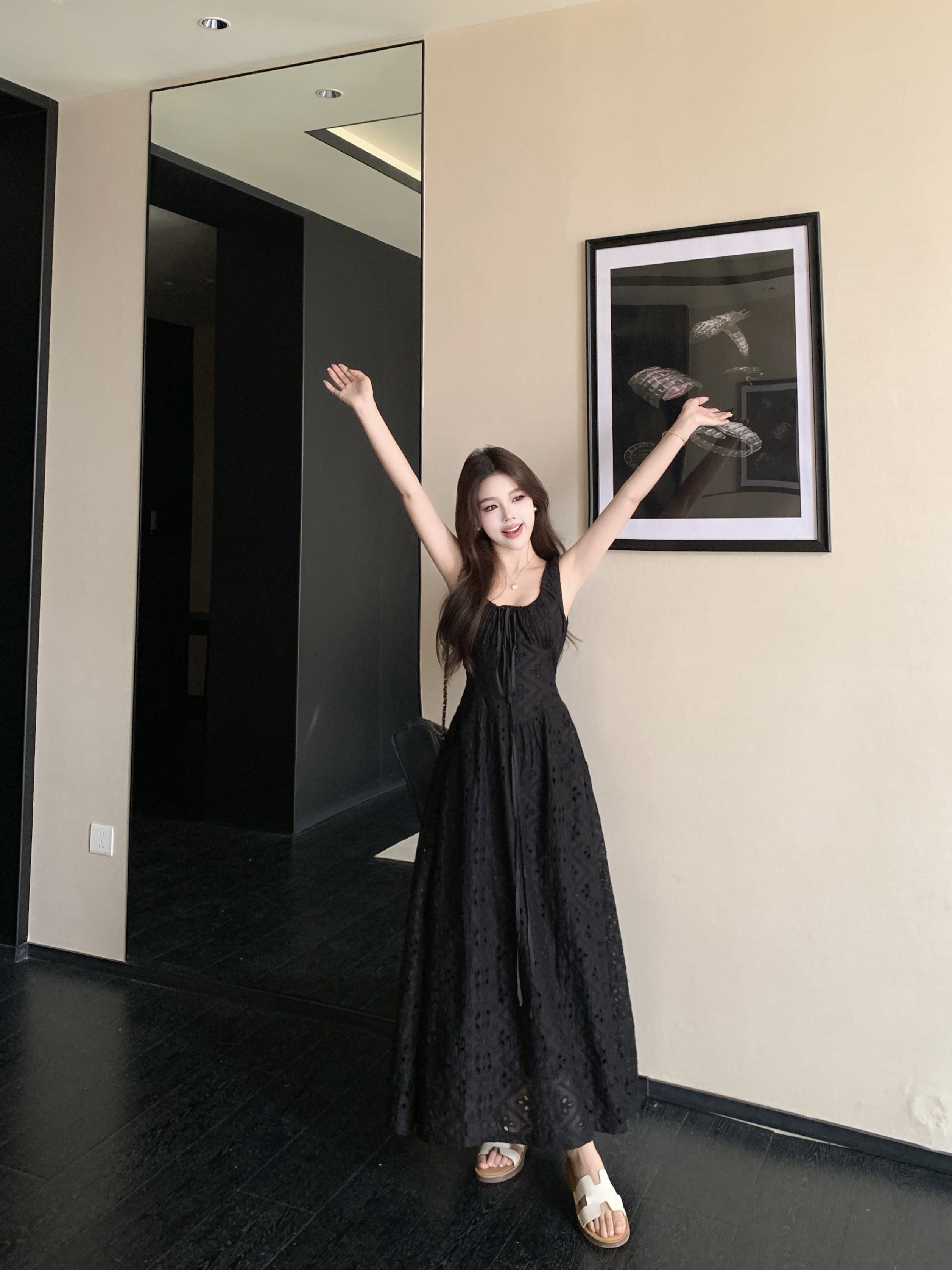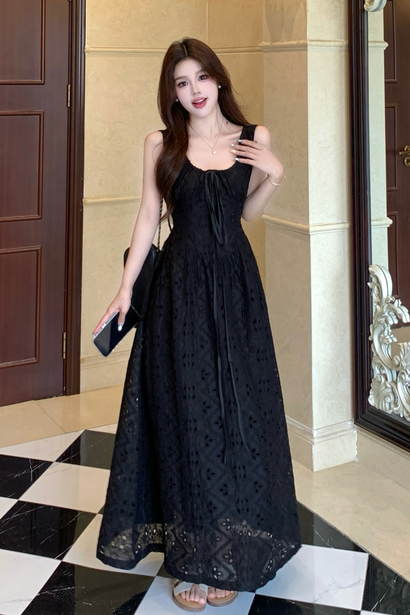 빅 사이즈 원더풀 춤 작은 키 2026 여름 여성 의류 품격 슬림해 보이는 패션 디자인 센스 롱 코트 검정색 드레스