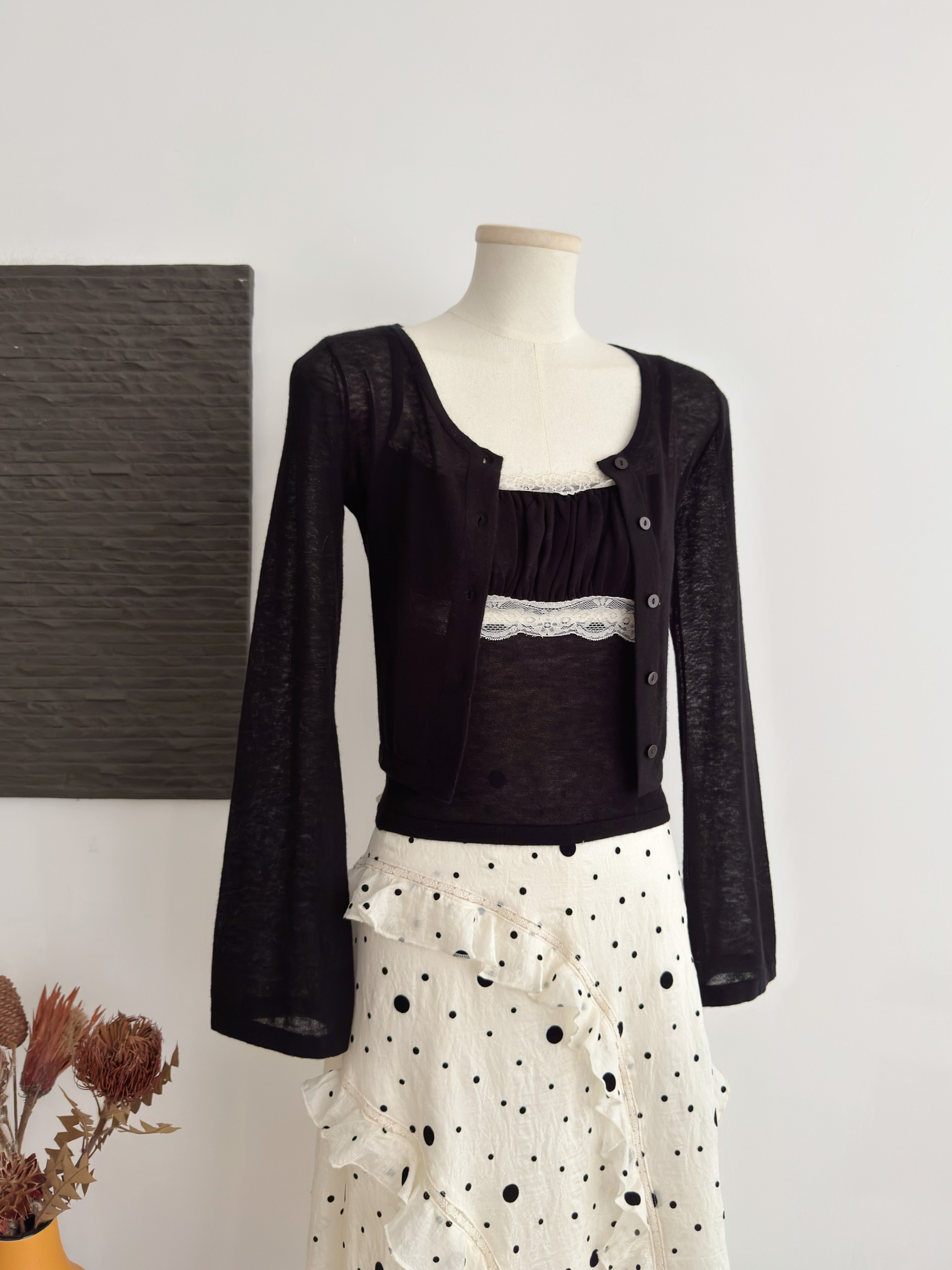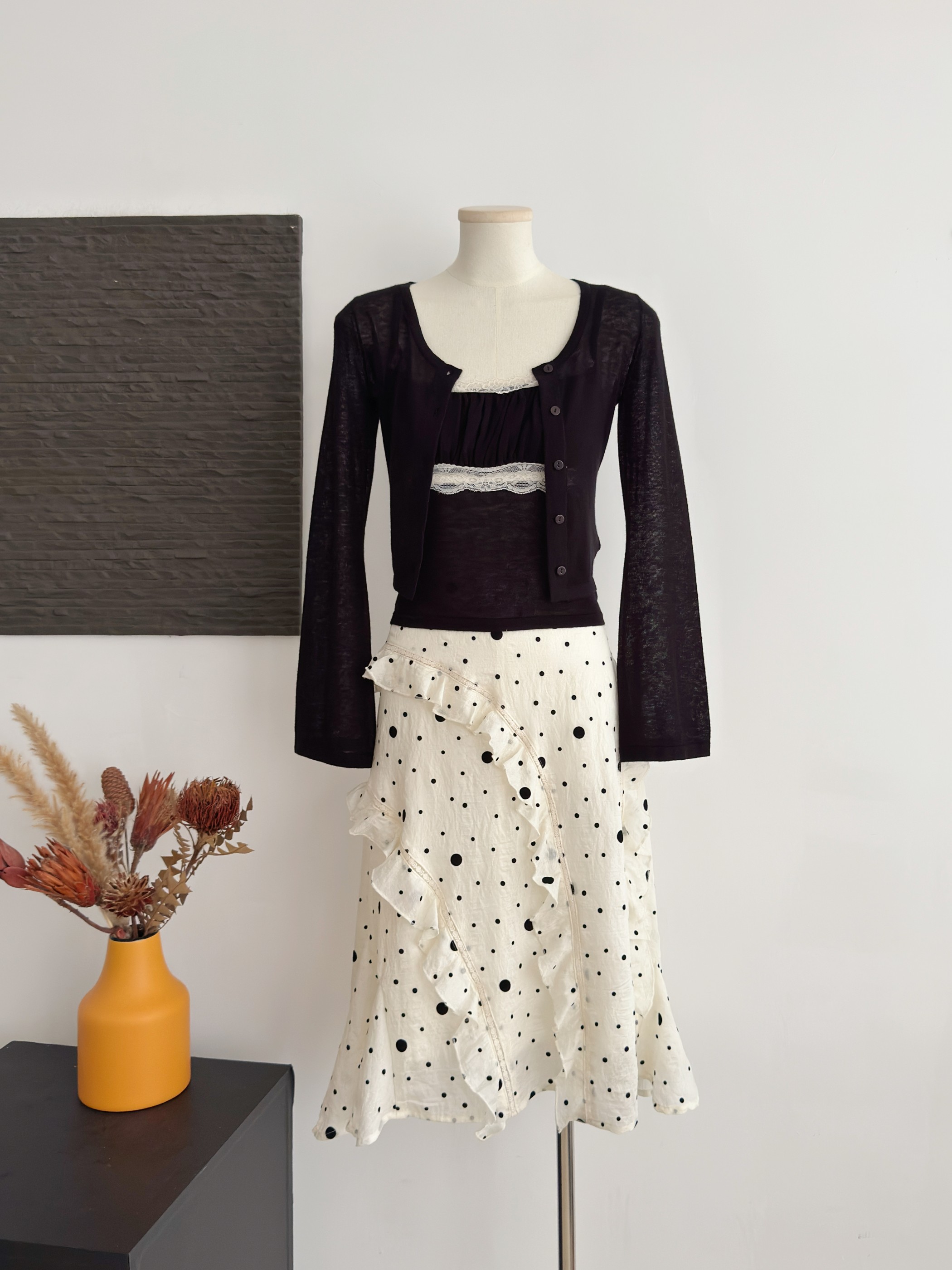 똑똑한 자르기 72 라이 경기 서울 식물 플러시 도트 무늬 중간 길이 스커트 우아한 불규칙 프릴 반신 스커트