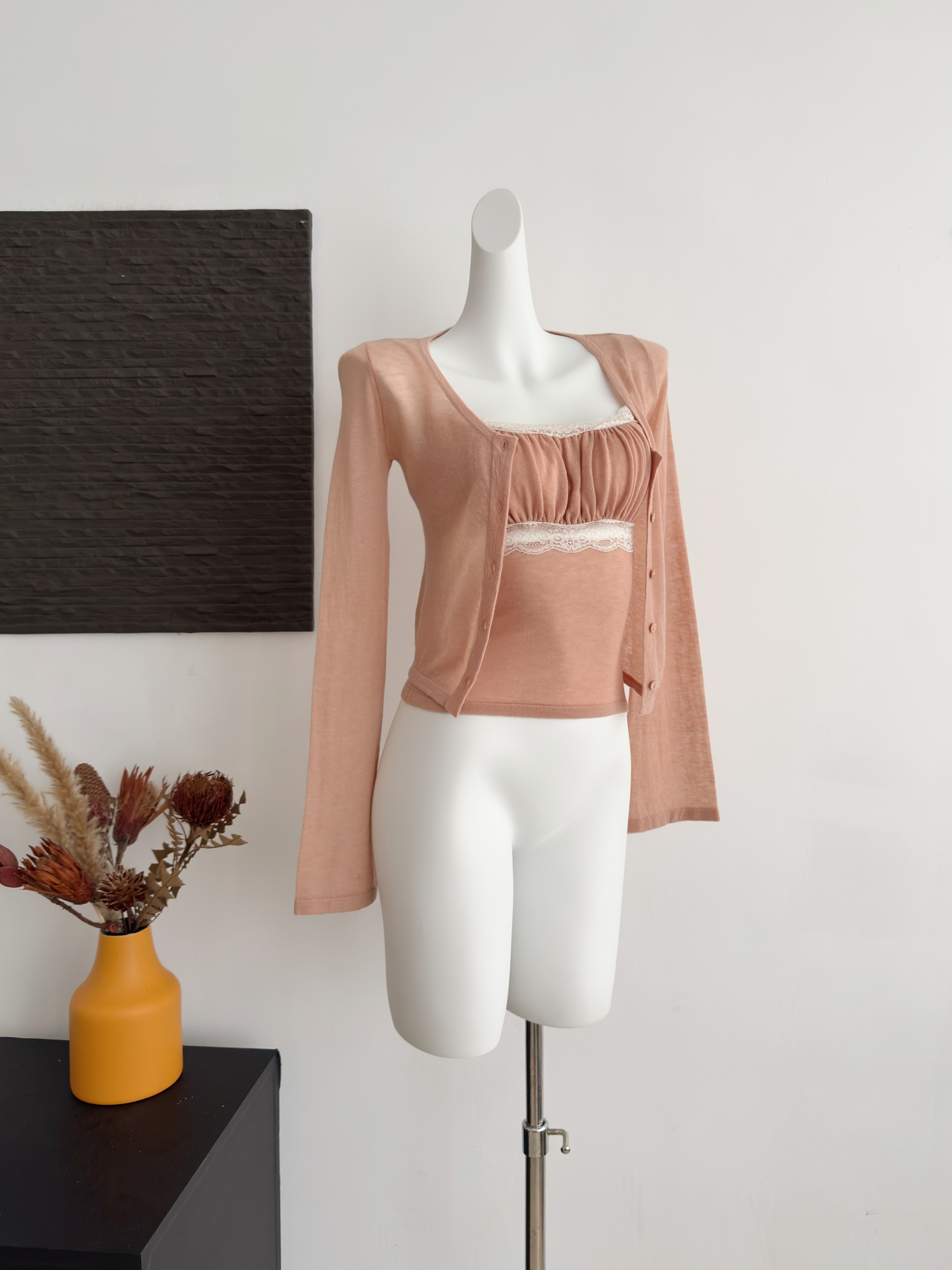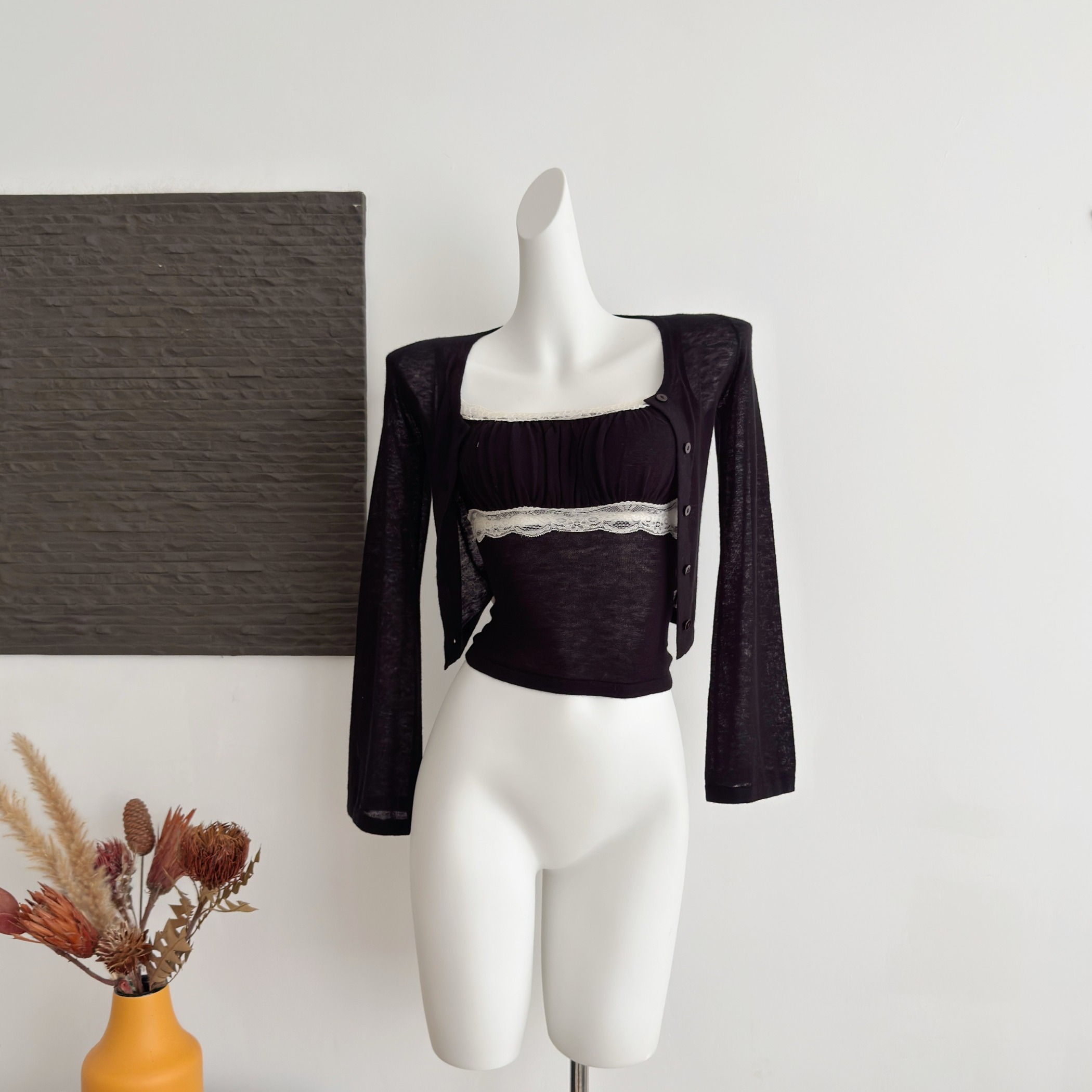 qiauuu 우유 부드러운 ~을 통해 피부 es 레이스 분말 크리스탈 트윈 룸 꽃 부드러운 순수한 욕망 허리 수축 쇼트 스타일 조끼 맨위 여성