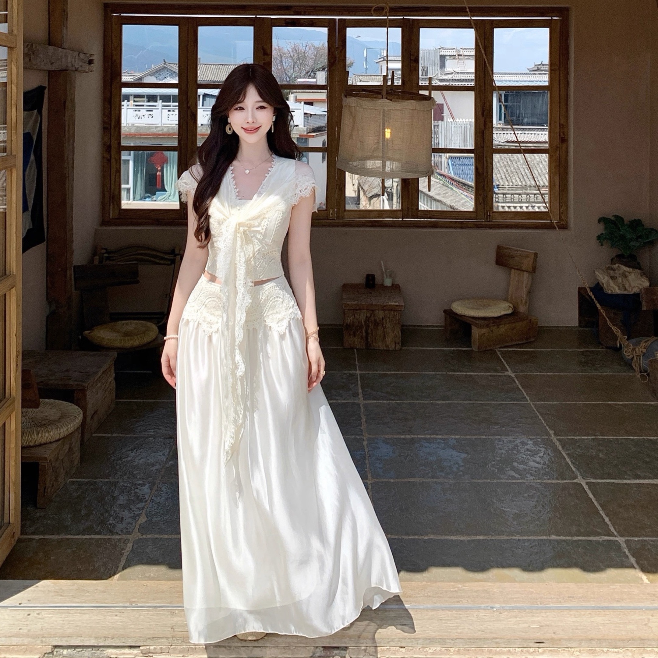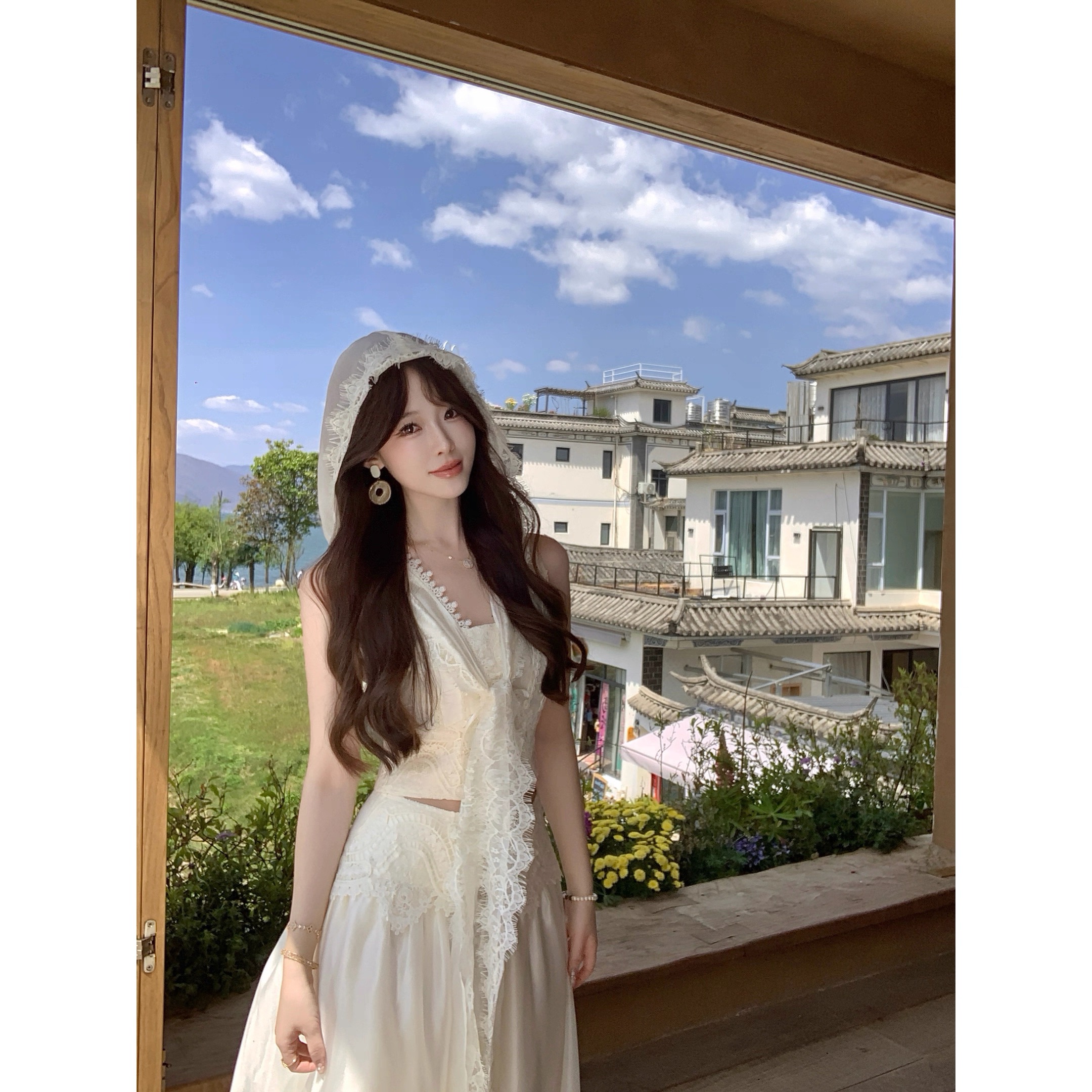 디자인 센스 레이스 조각 모자 포함 맨위 우아한 반신 치마 세트