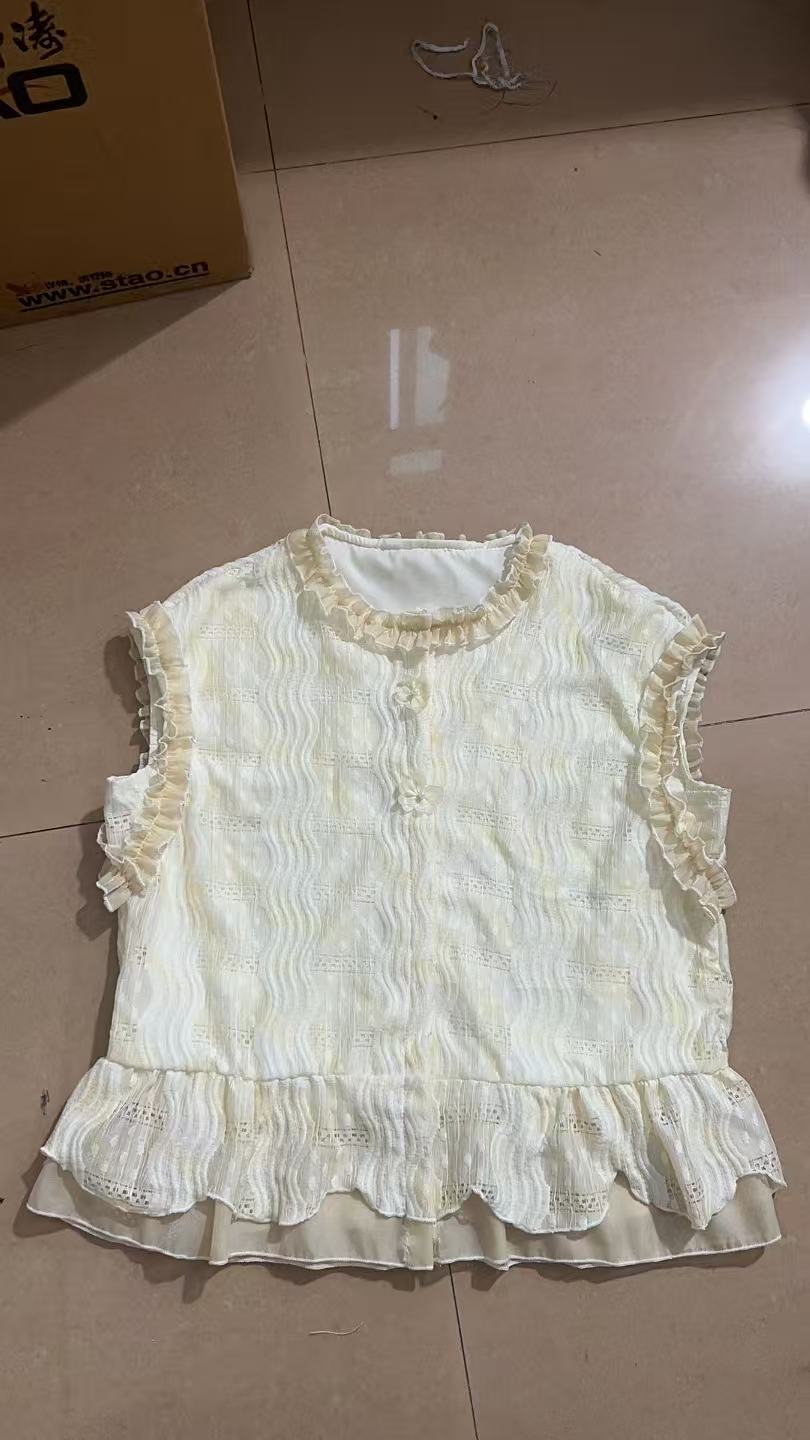멀리 웨이브 떠 다니는 섬 레트로 레이스 조각 페이크 레이어드 루즈핏 다용도 여름 셔츠