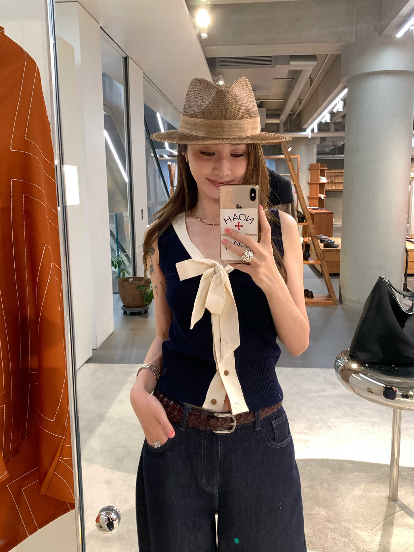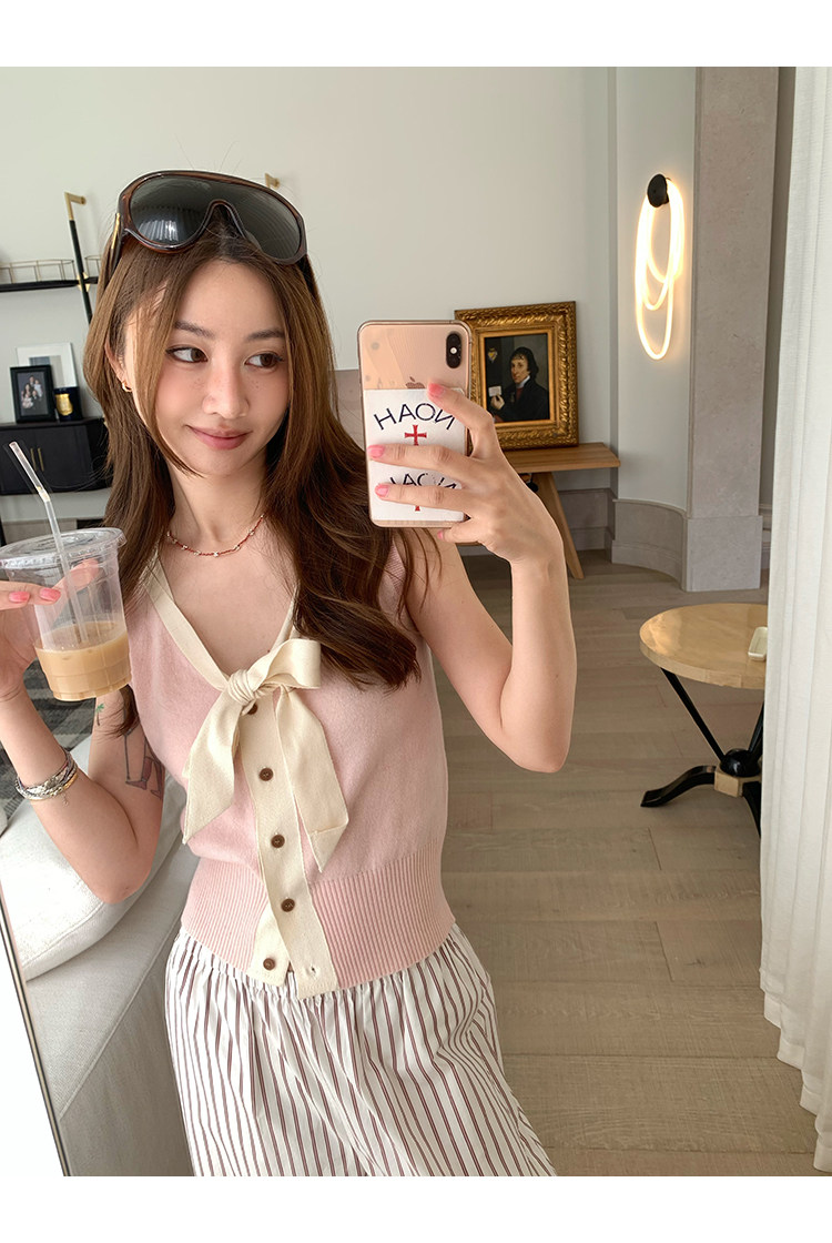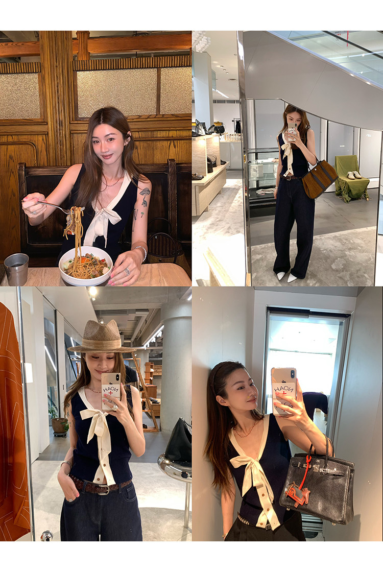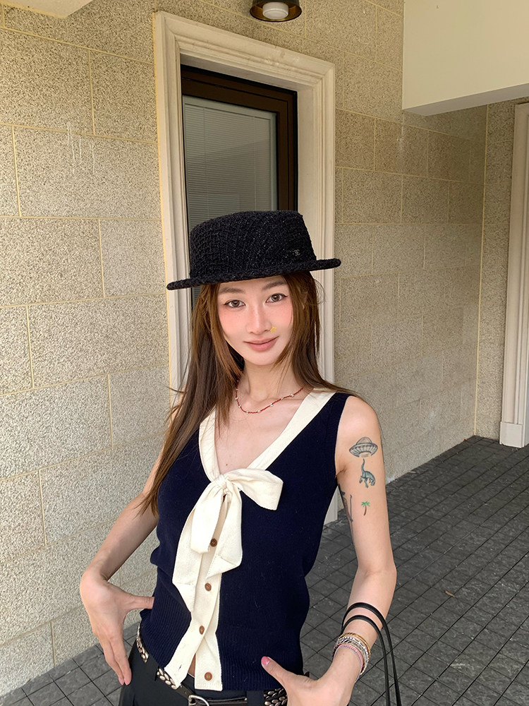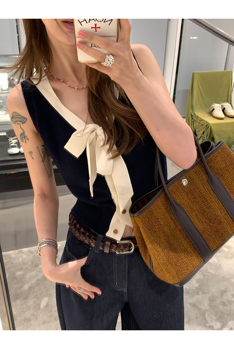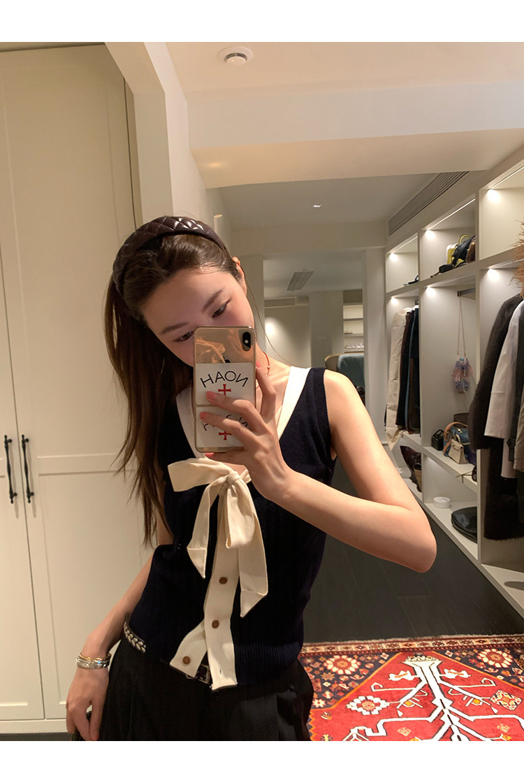 vcruan A 그리스어 형제 west 여왕 어머니 천 골드 나비 매듭 니트 조끼 rz261078