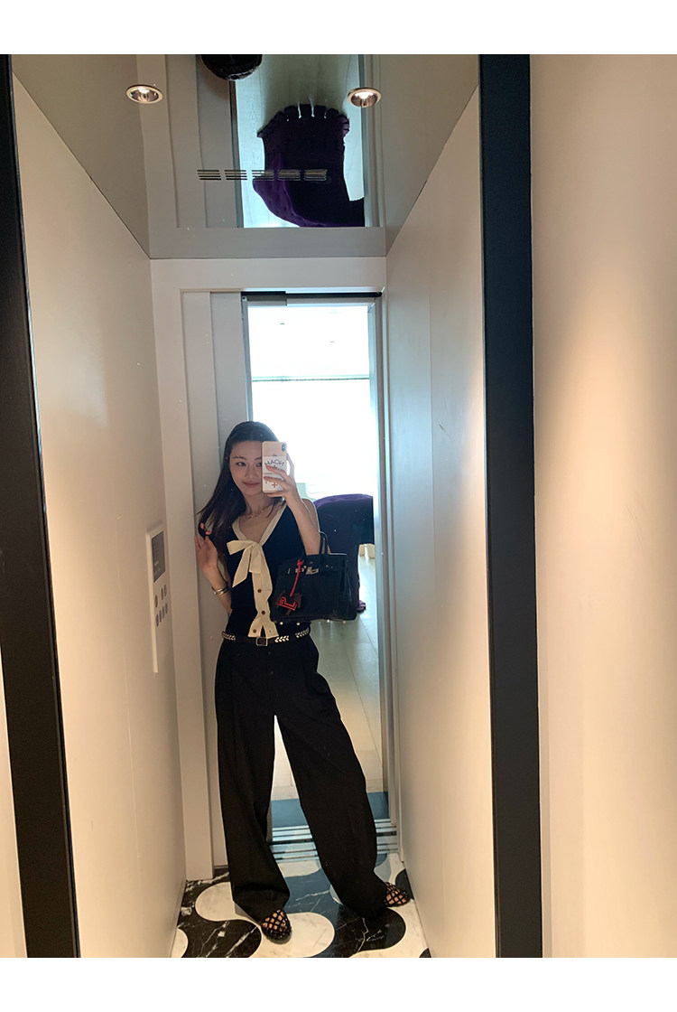 양 작은 볼륨 miu 부서 소녀 허리 수축 슬림해 보이는 POLO 칼라 검정색 드레스 한 인사이드 한 가스 몸매 가꾸기 작은 검은 드레스