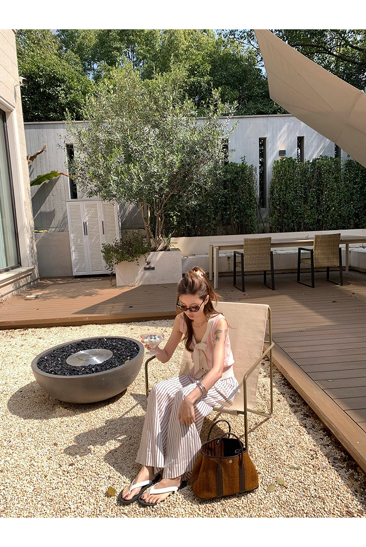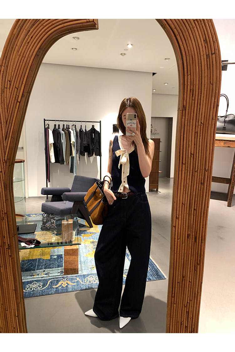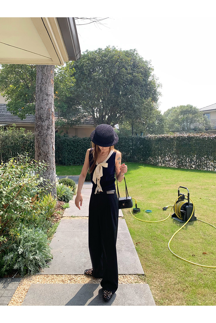 5werkwen 루이 가을 니트 원피스 라운드 넥 조용한 럭셔리 민소매 니트 드레스
