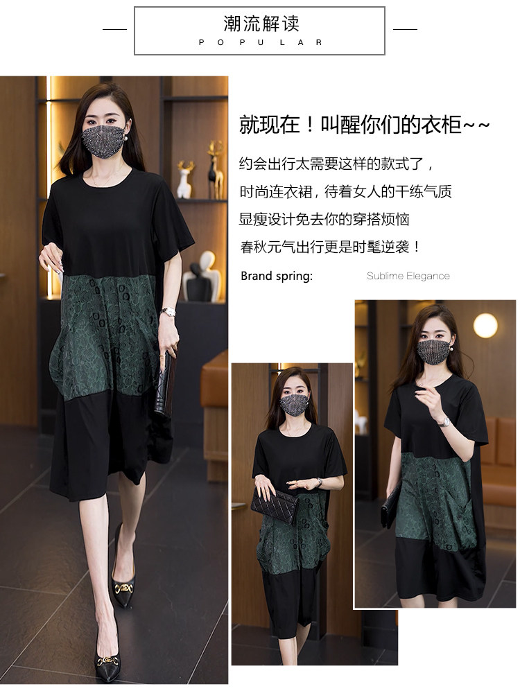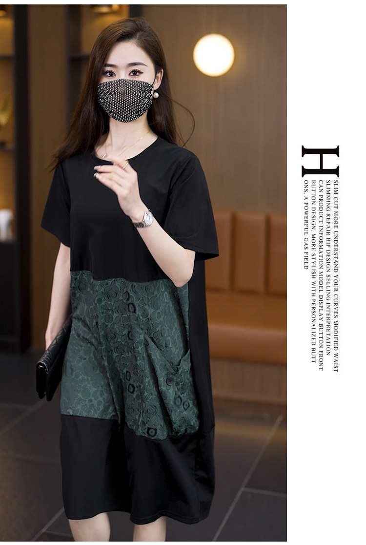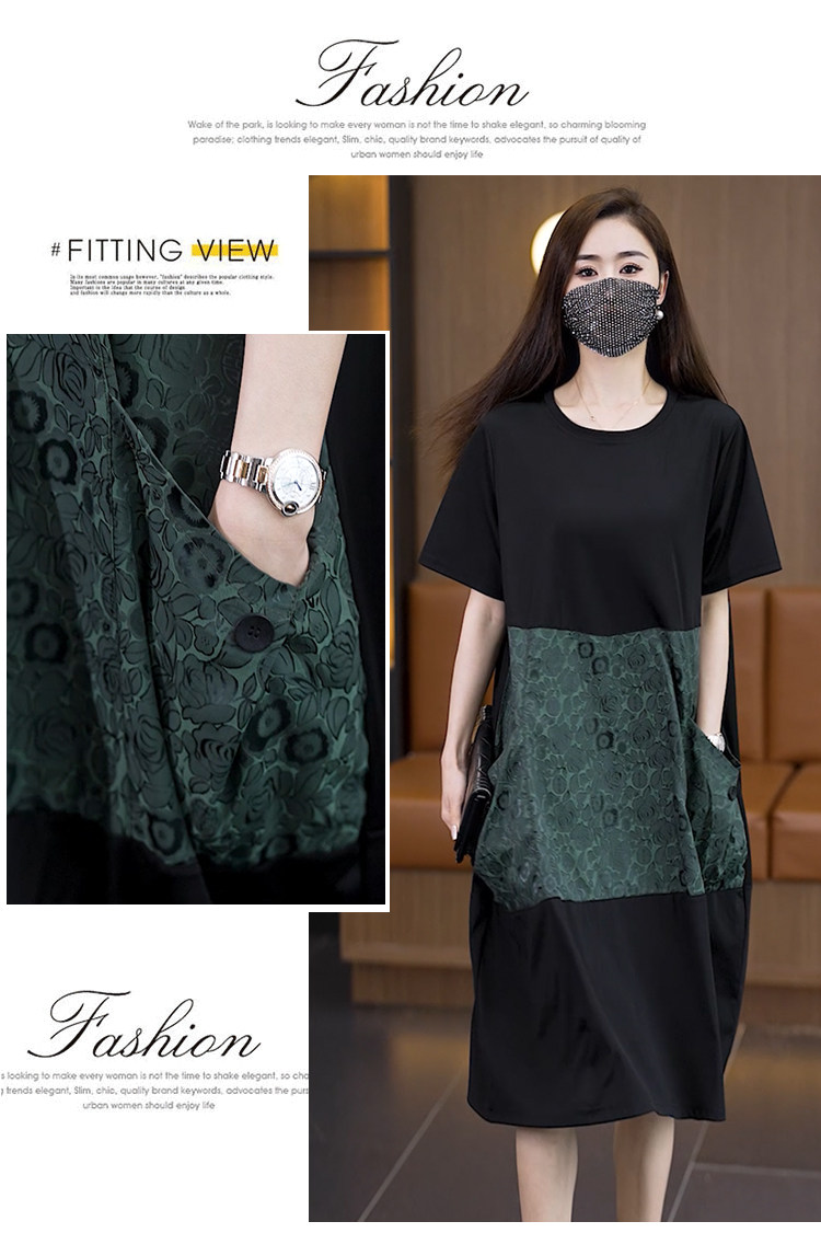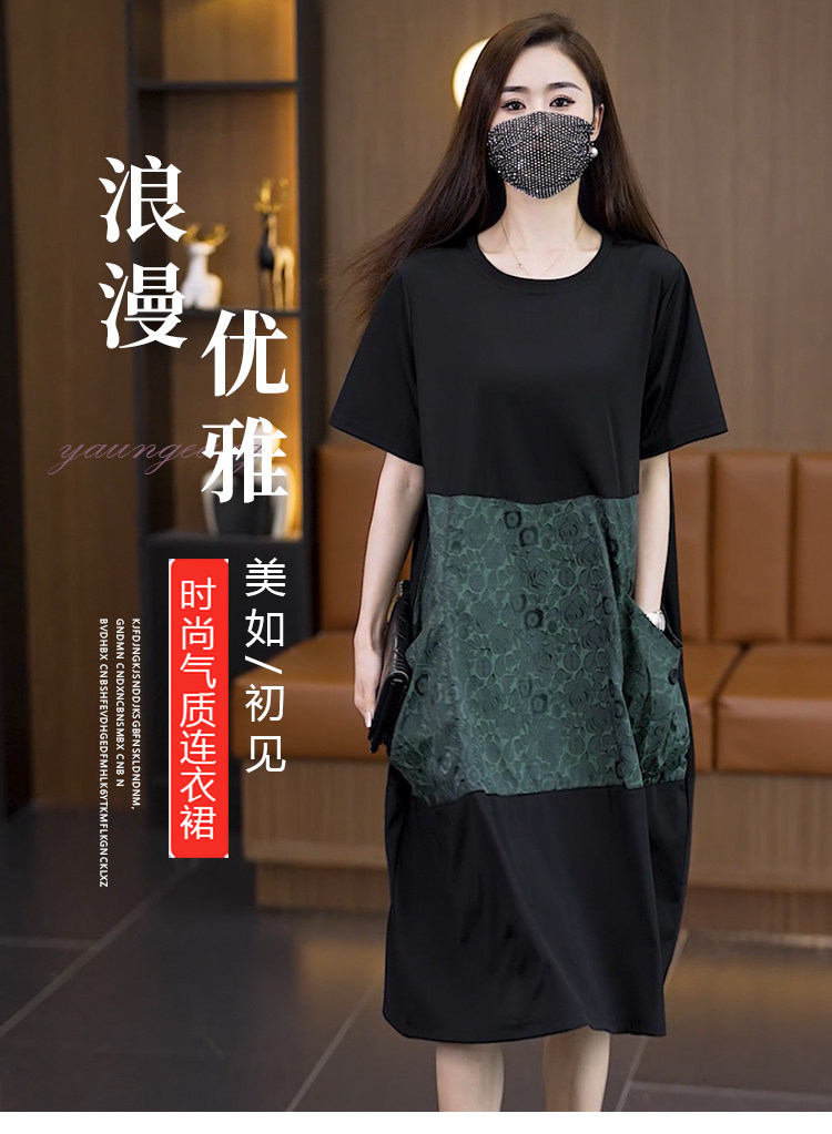 빅 사이즈 여성 의류 2026 여름 새로운 지방 mm 패션 배색 패치워크 루즈핏 표지 배 중간 길이 캐주얼 드레스