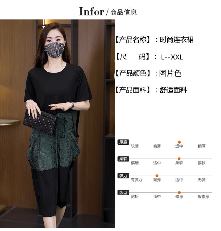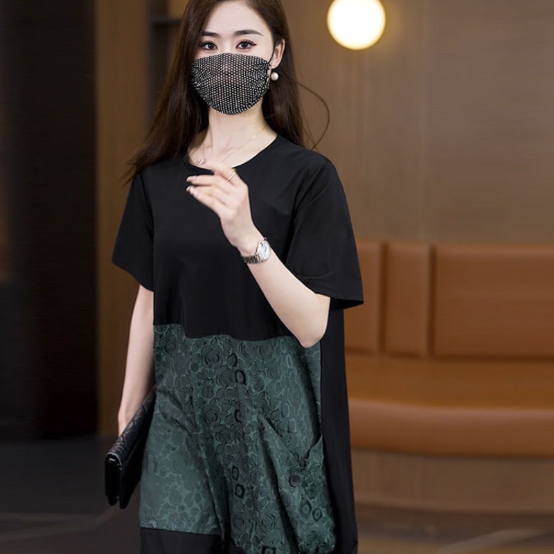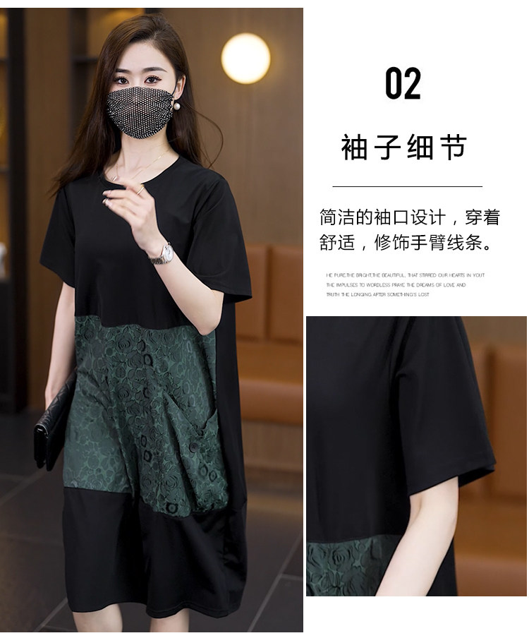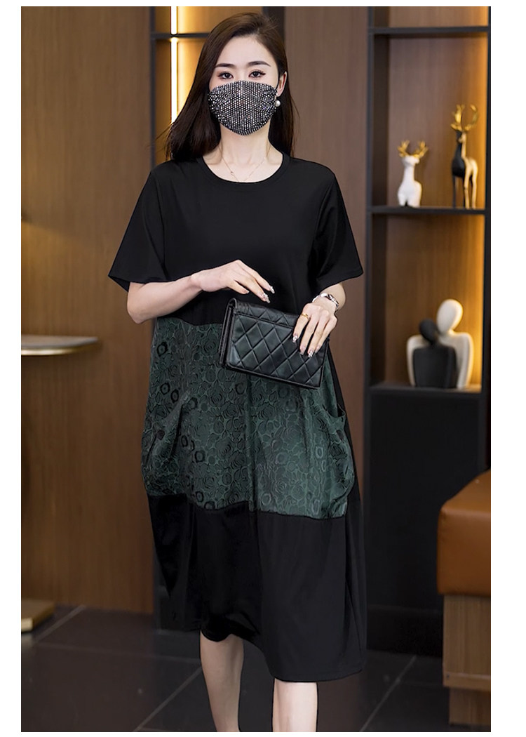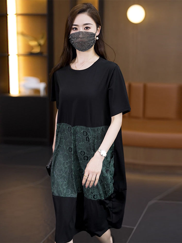 빅 사이즈 여성 의류 2026 여름 새로운 지방 mm 패션 배색 패치워크 루즈핏 표지 배 중간 길이 캐주얼 드레스