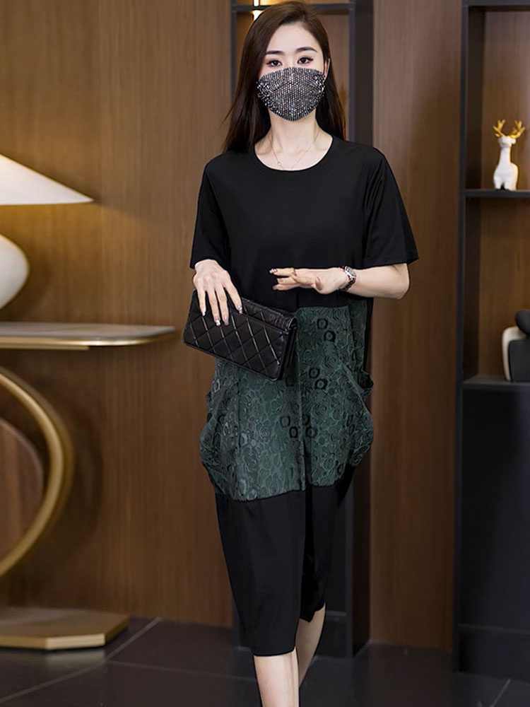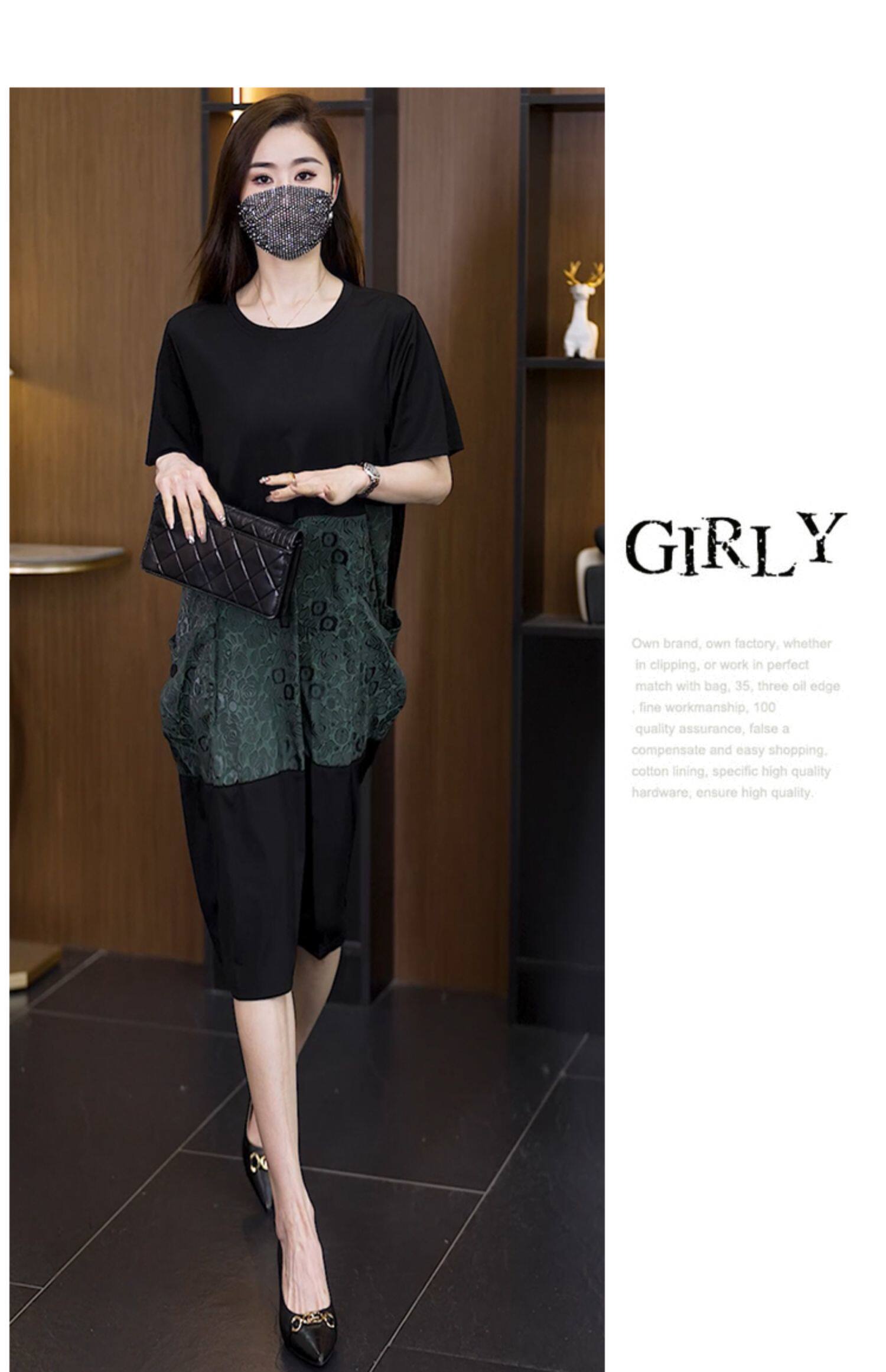 2026 여름 새로운 빅 사이즈 외국 가스 세트 패션 루즈핏 표지 고기 슬림해 보이는 연령 감소 투피스 세트