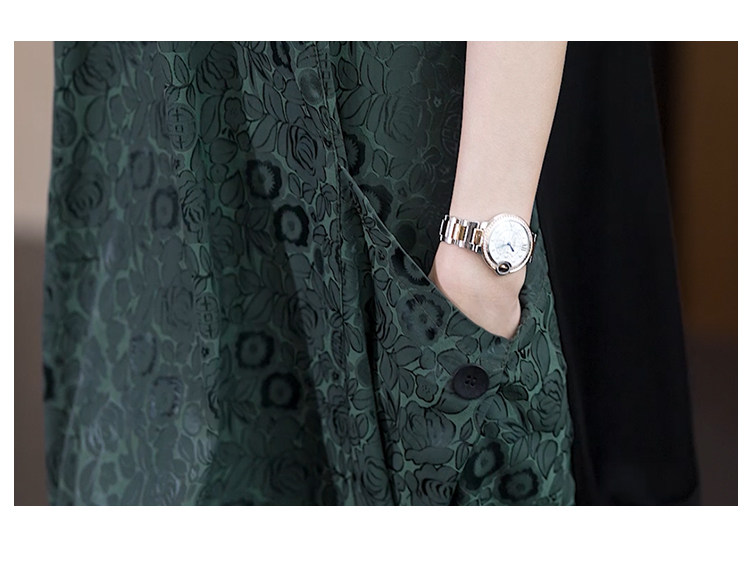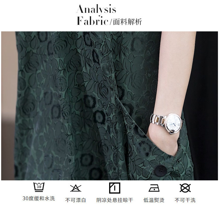 실사 2026 여름 드레스 새로운 어머니 드레스 문예 빅 사이즈 배색 패치워크 단추 V넥 반팔 티셔츠 셔츠 얇은 스타일