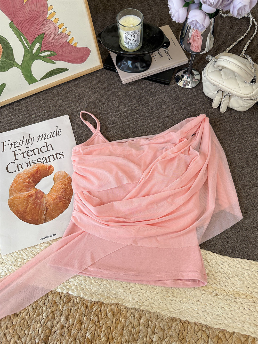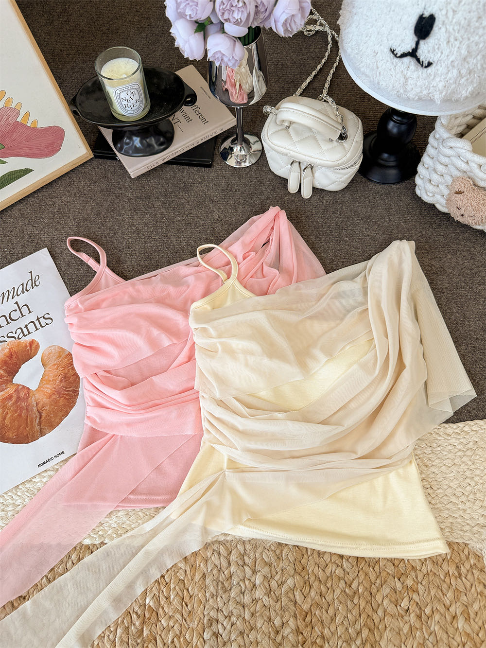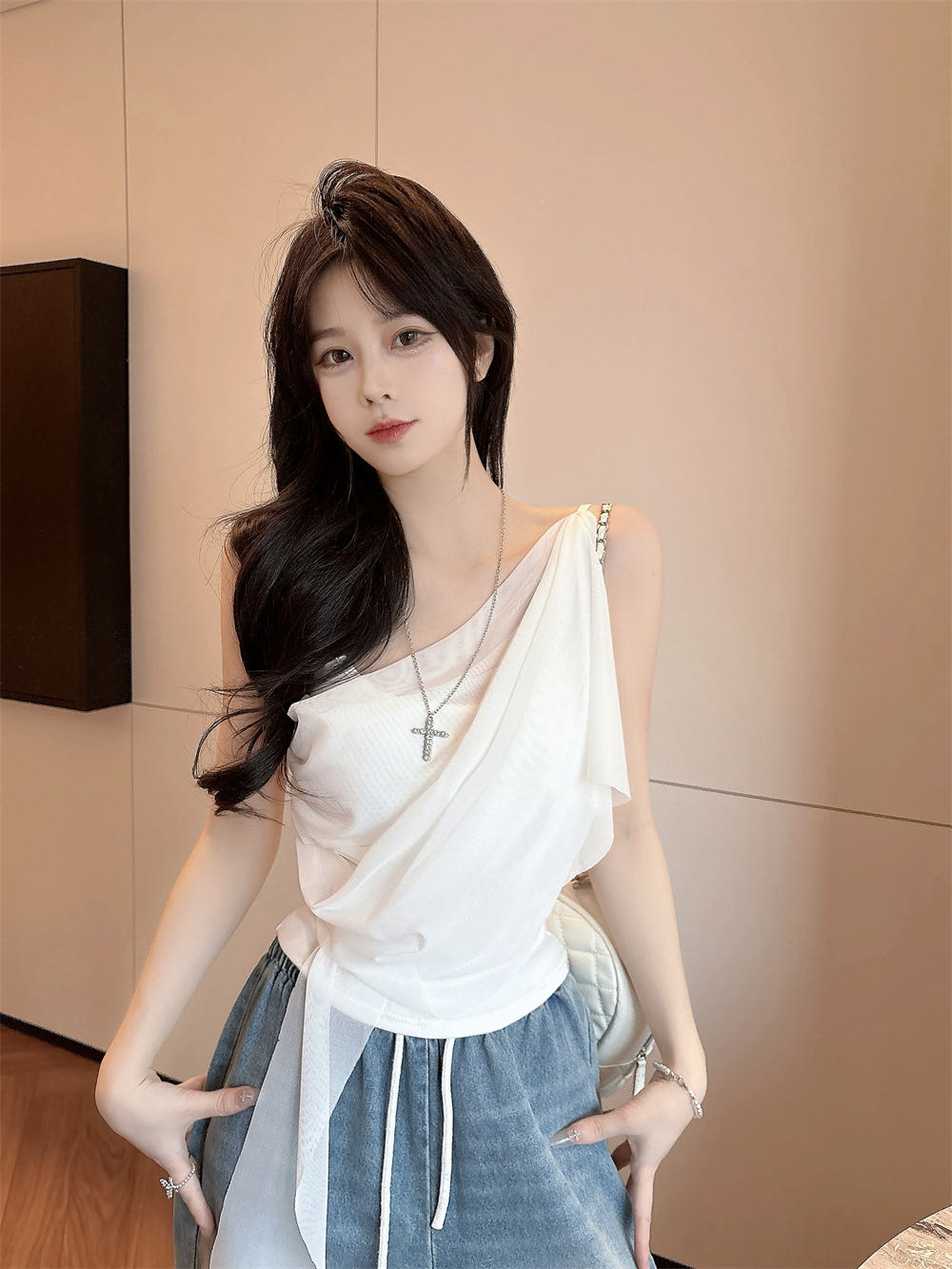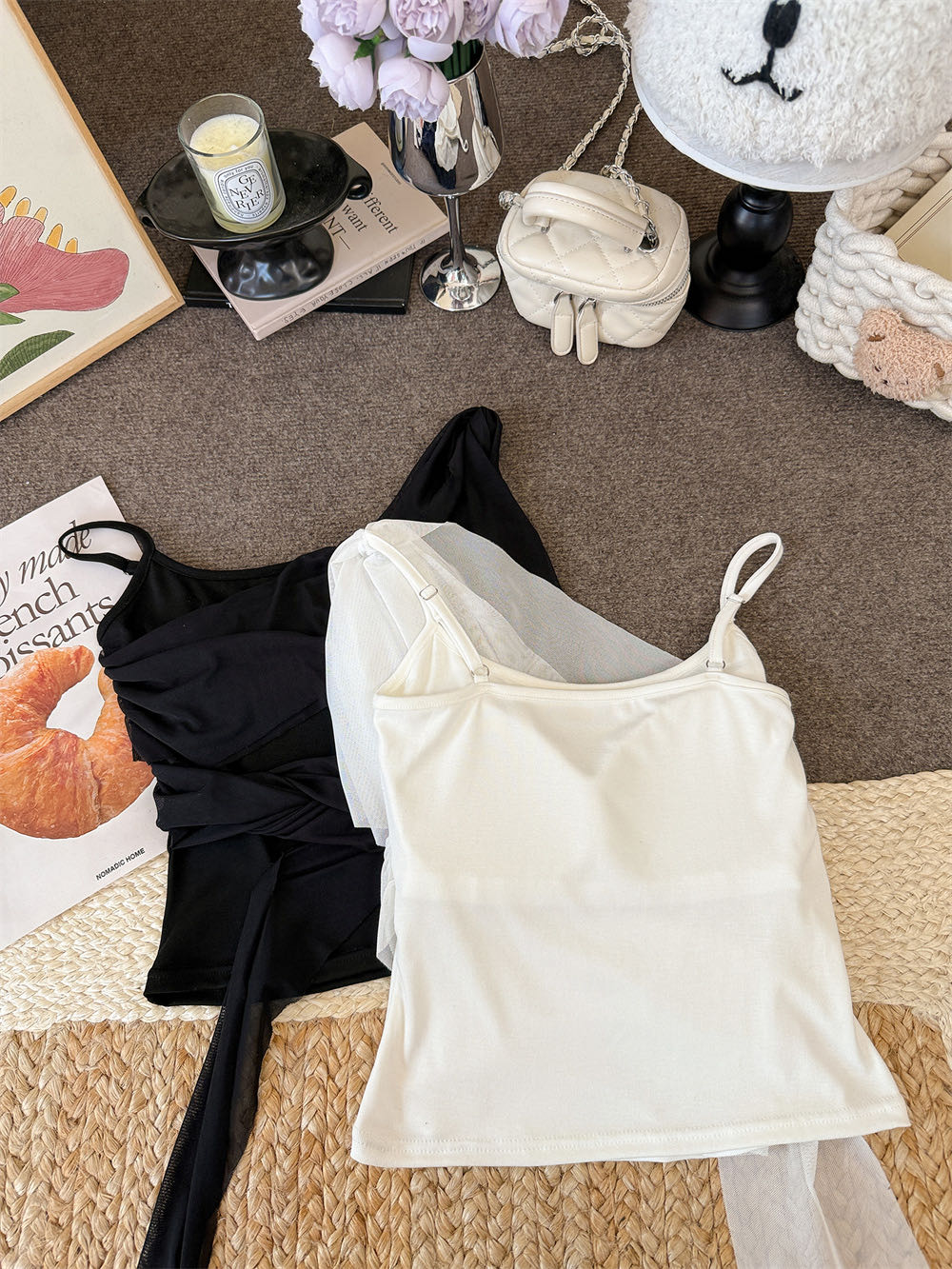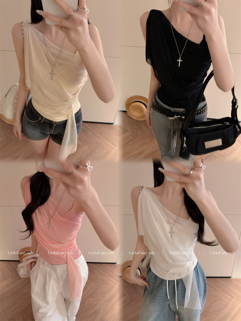 순수한 욕망 바람 디자인 센스 망사 불규칙 패치워크 조끼 슬립 여성 여름 새로운 핫걸 몸매 가꾸기 쇼트 스타일 맨위