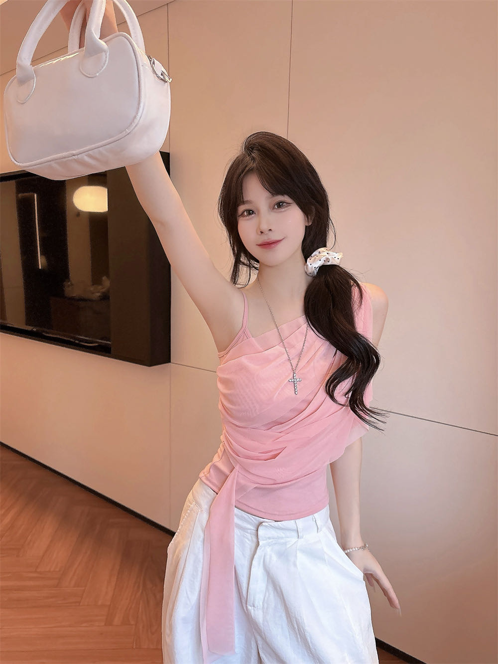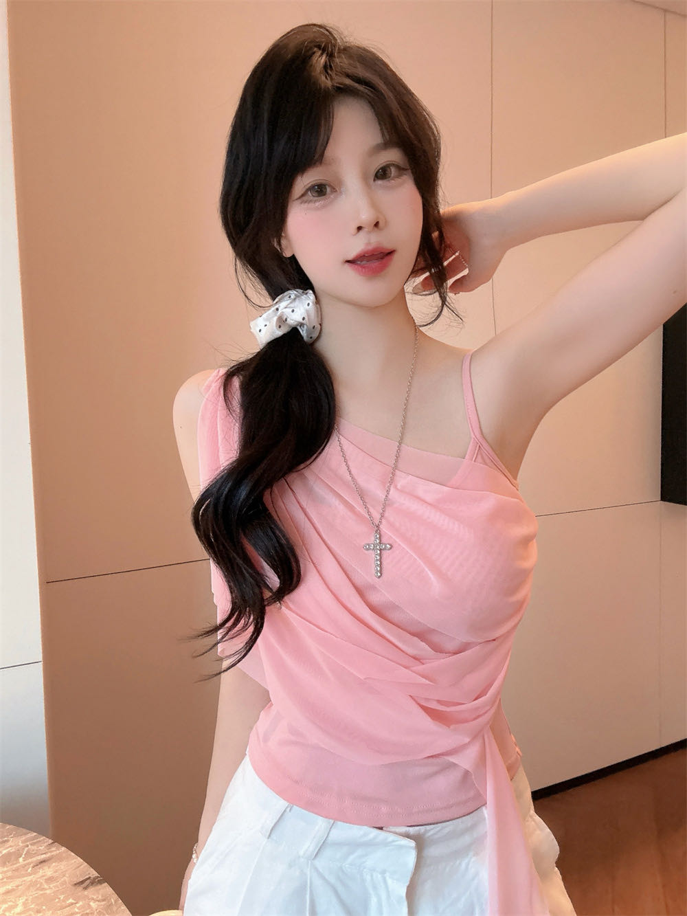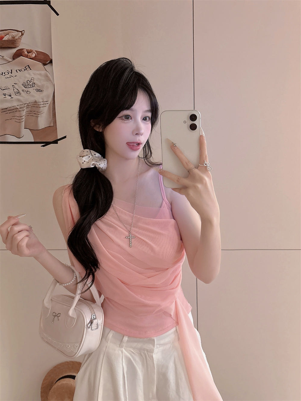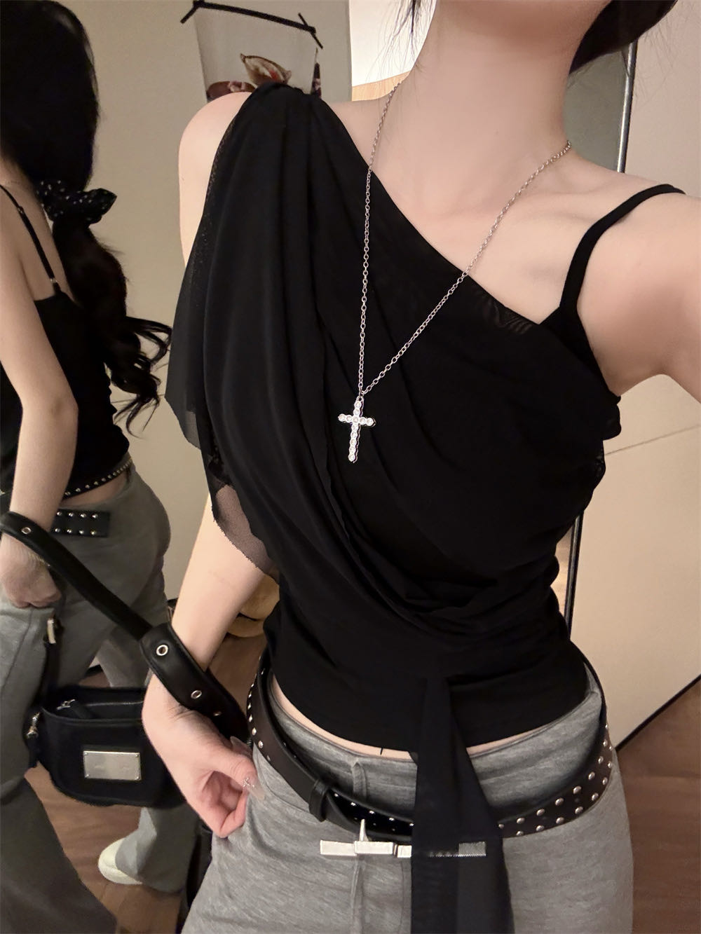 순수한 욕망 바람 디자인 센스 망사 불규칙 패치워크 조끼 슬립 여성 여름 새로운 핫걸 몸매 가꾸기 쇼트 스타일 맨위