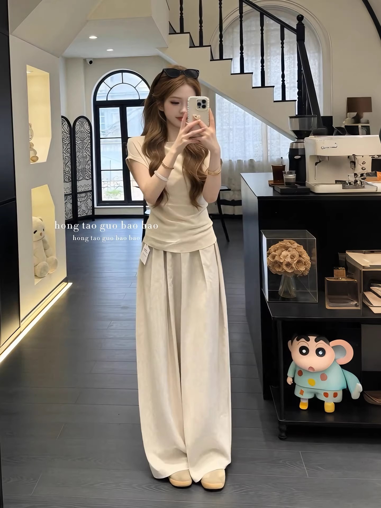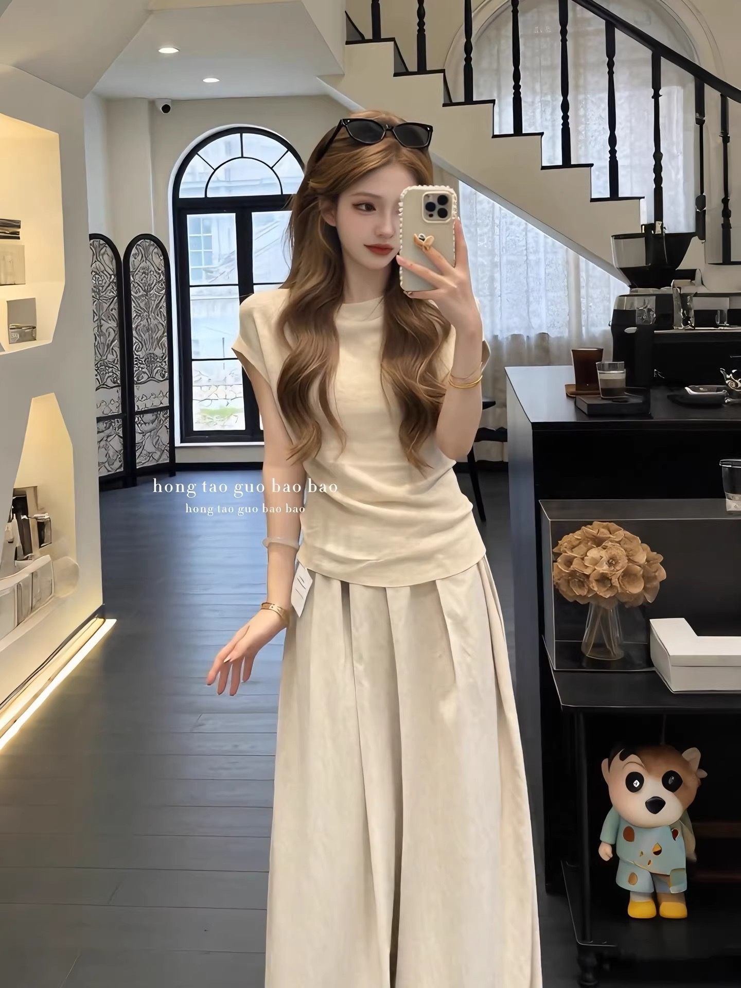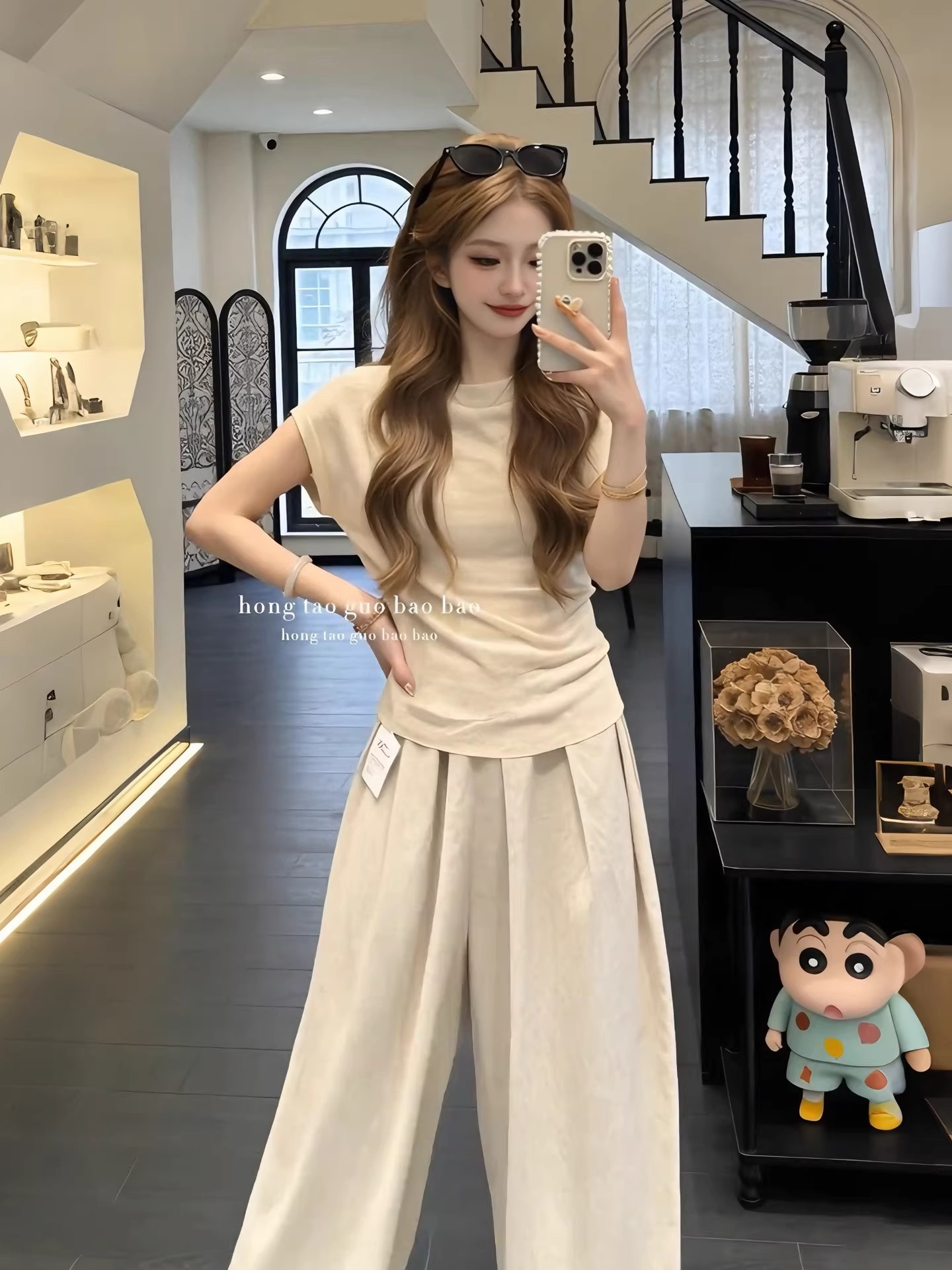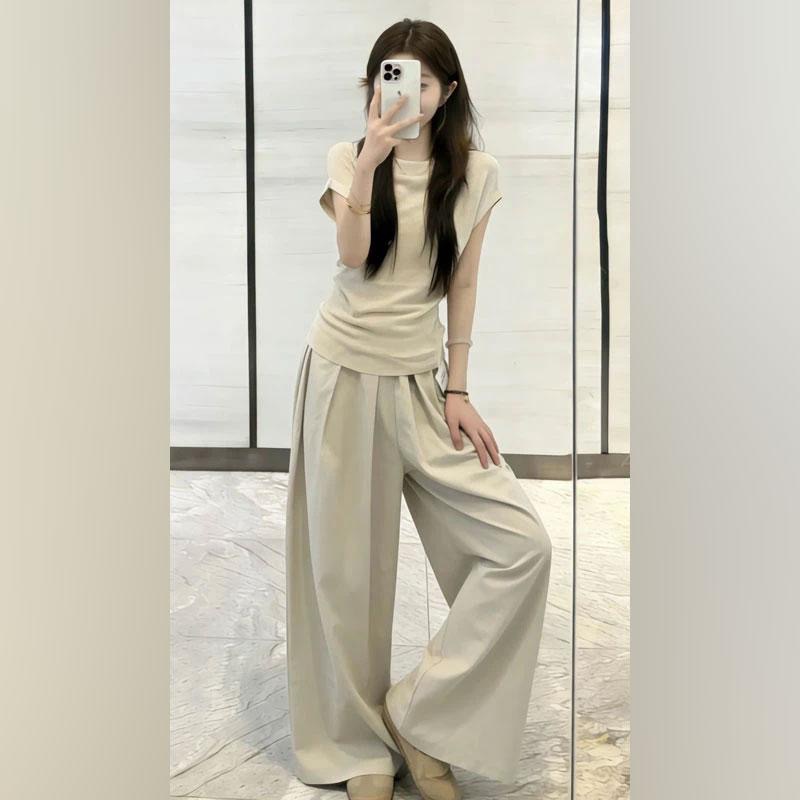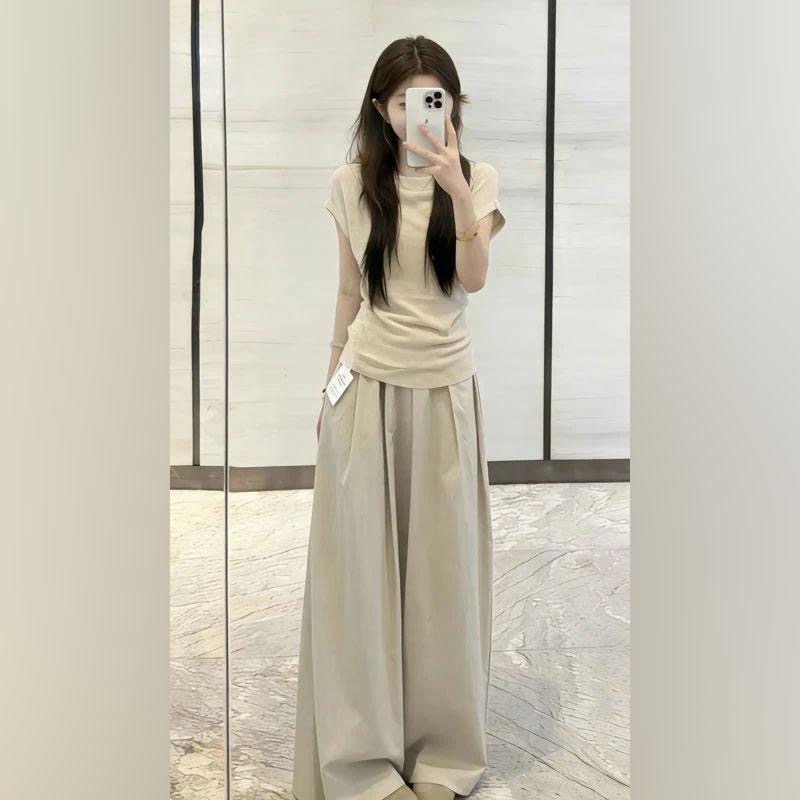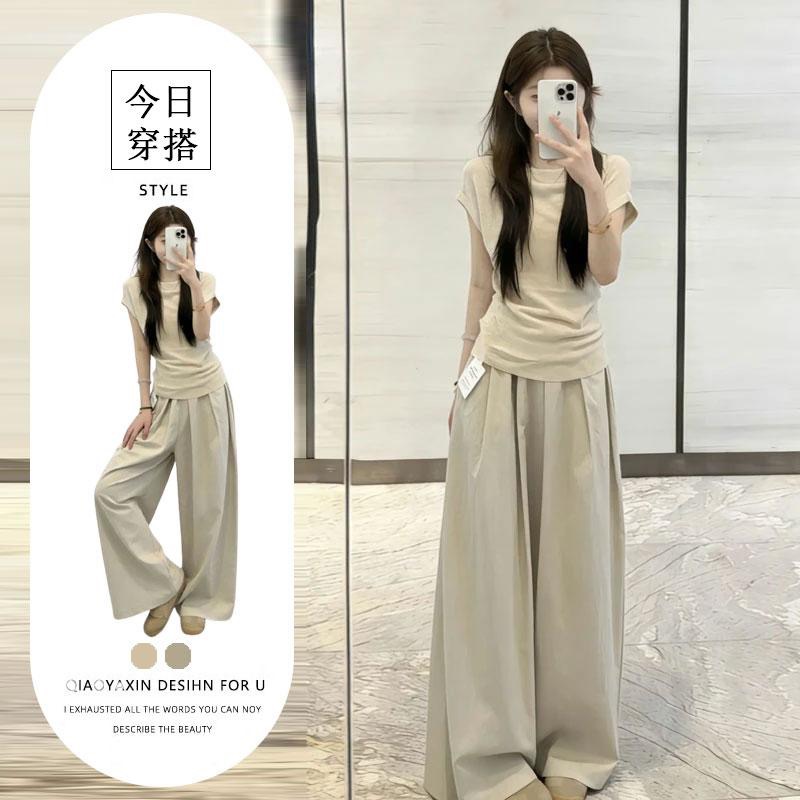 여름 드레스 코디 전체 집합 한 부서 우유 乖離 품격 디자인 센스 반팔 티셔츠 맨위 루즈핏 캐주얼 바지 투피스 세트